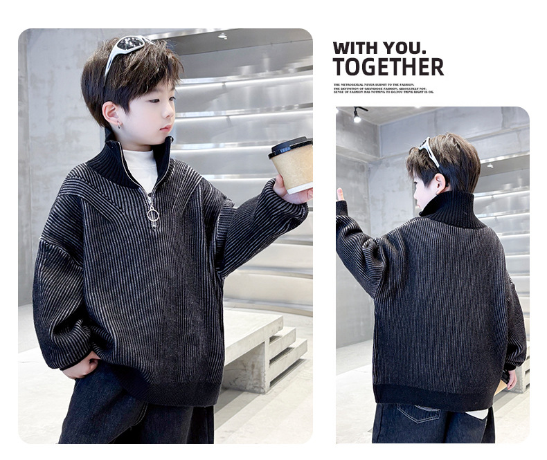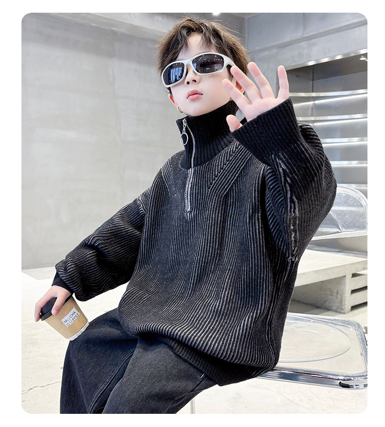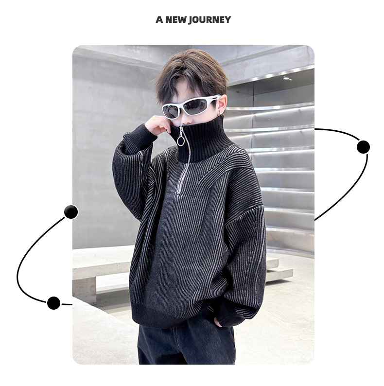 남아용 스웨터 가을 겨울 2025 신상 아동 겨울옷 하이넥 니트웨어 큰 남자아이 겨울 이너웨어 스타일리시스토어 가기