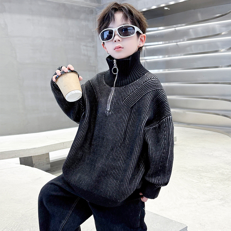 남아용 스웨터 가을 겨울 2025 신상 아동 겨울옷 하이넥 니트웨어 큰 남자아이 겨울 이너웨어 스타일리시