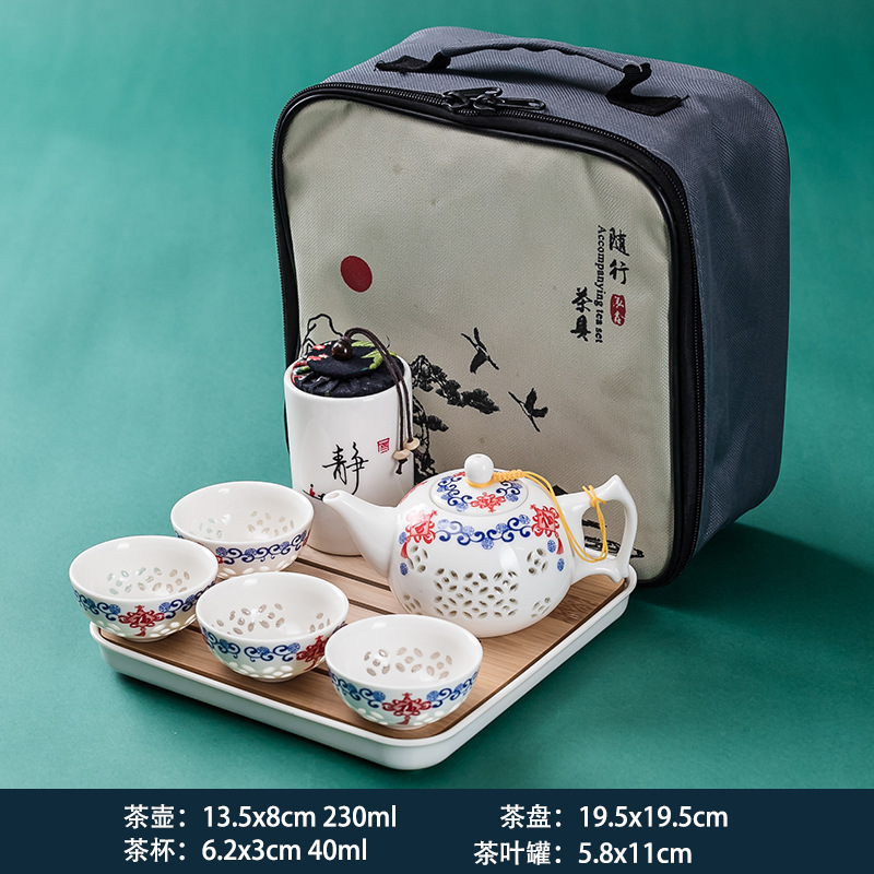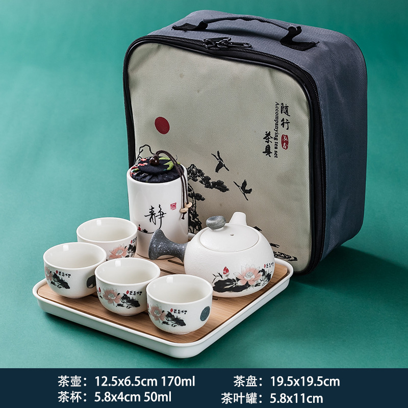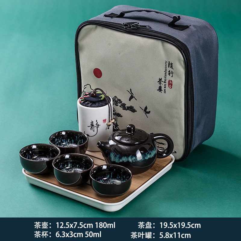 쿵푸 차 세트 여행 팩 휴대용 차 컵 풀 세트 캠핑 테이블과 의자 차 쟁반 차스토어 가기