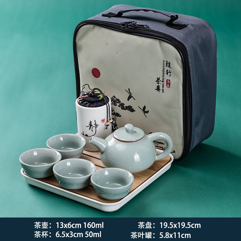 • 5 머리 Ge Kiln 고대 냄비 하늘색 + 접시 + 항아리 + 가방