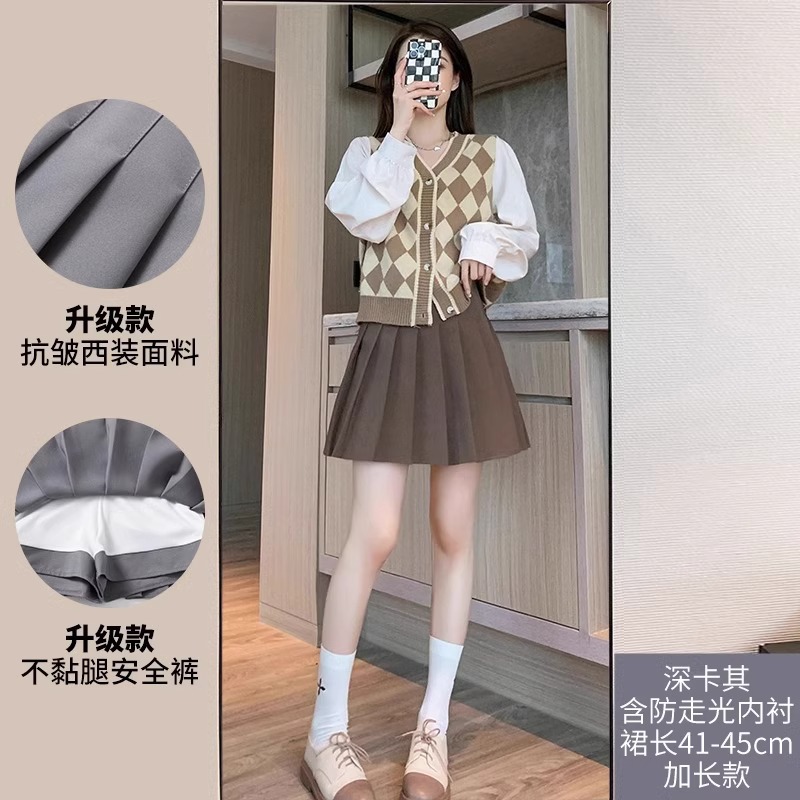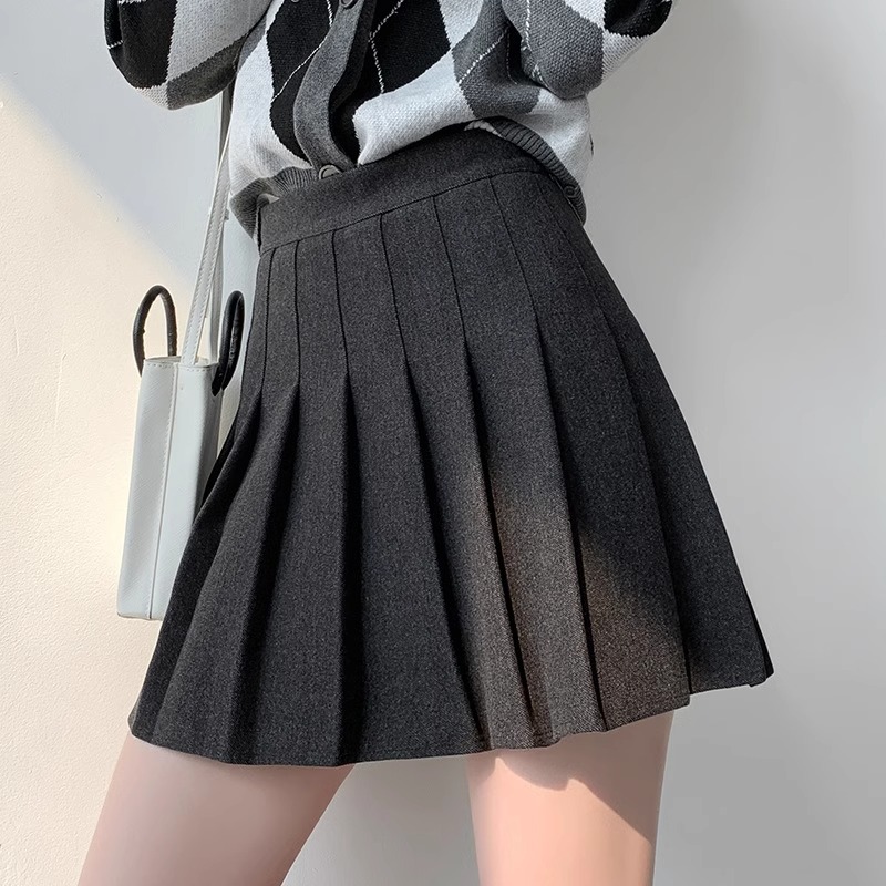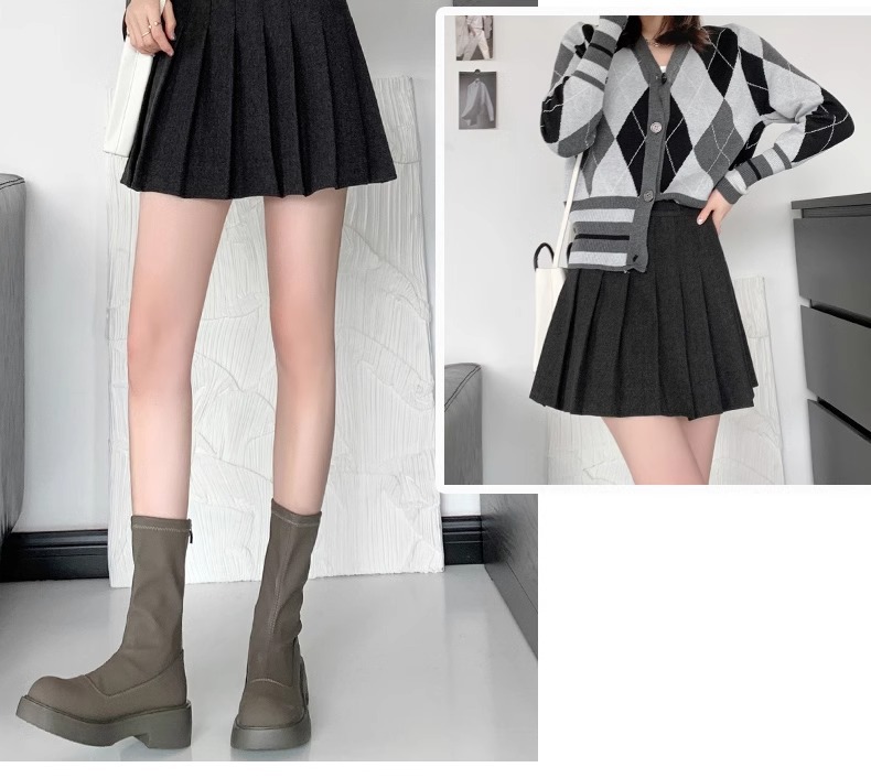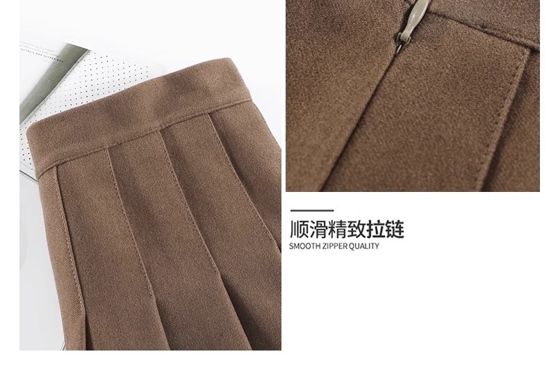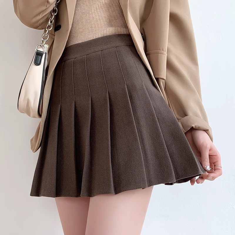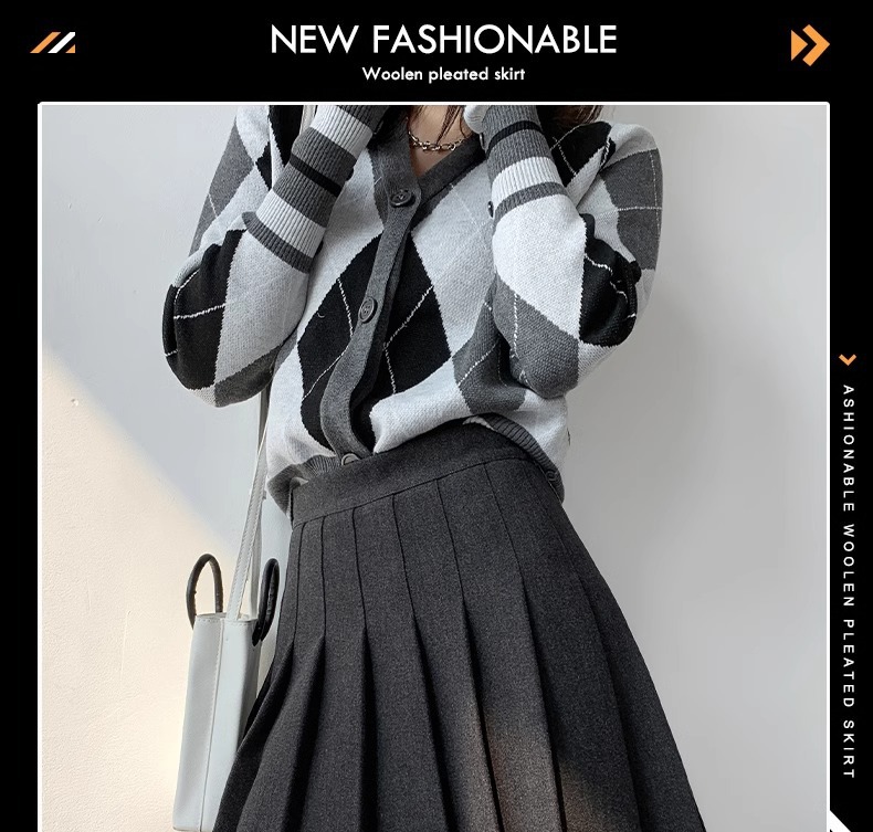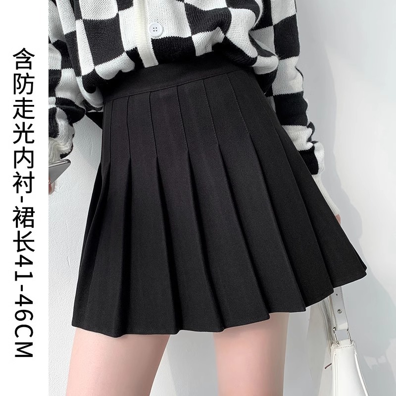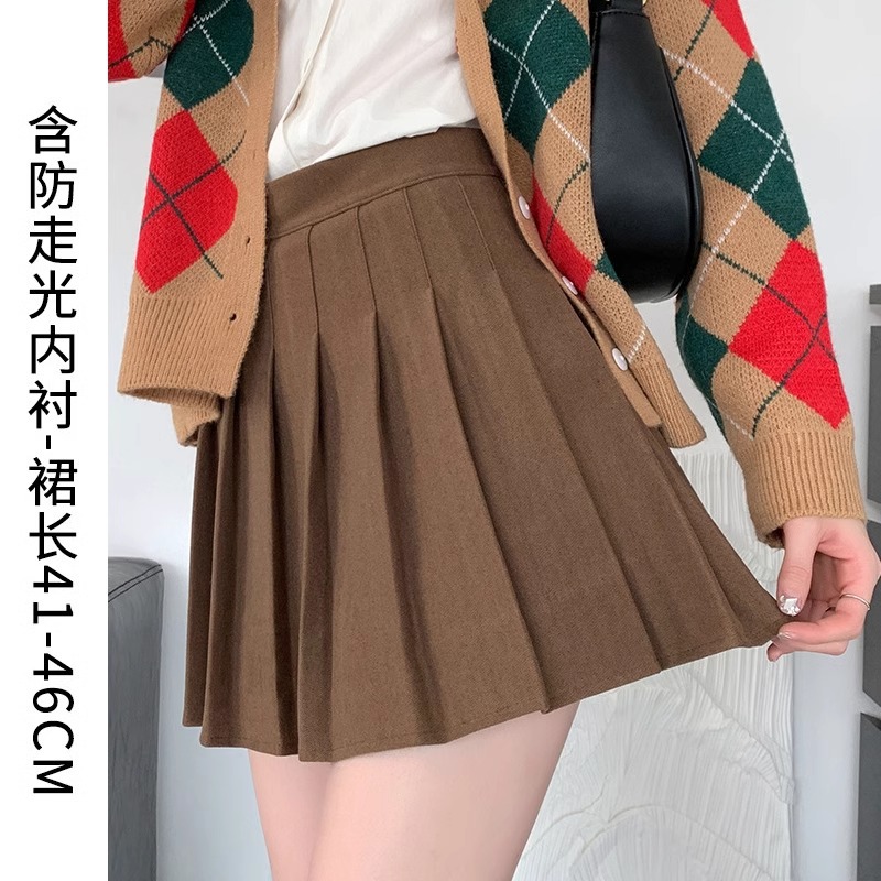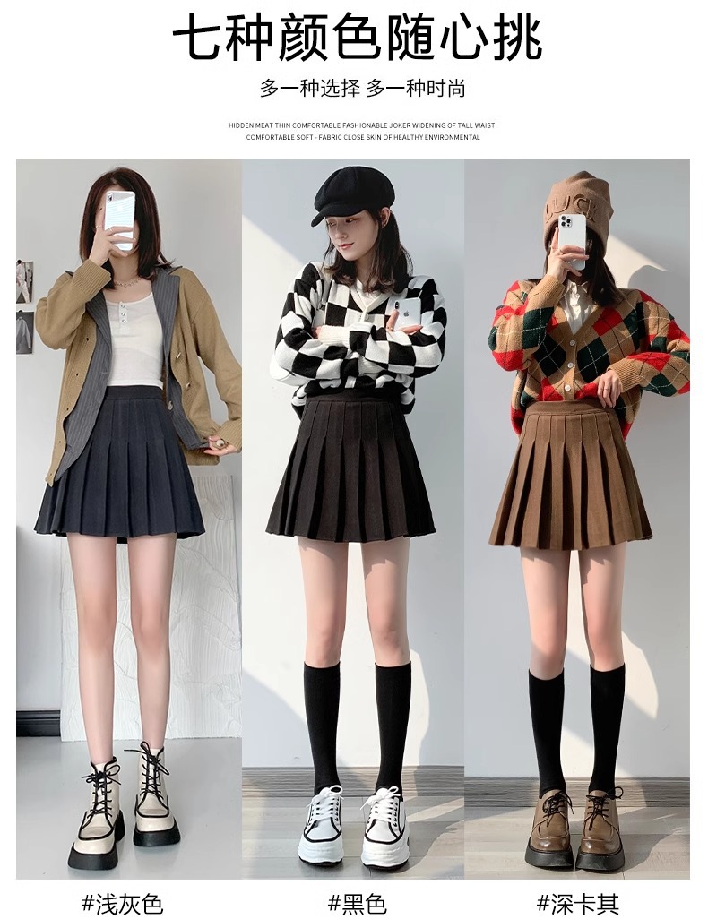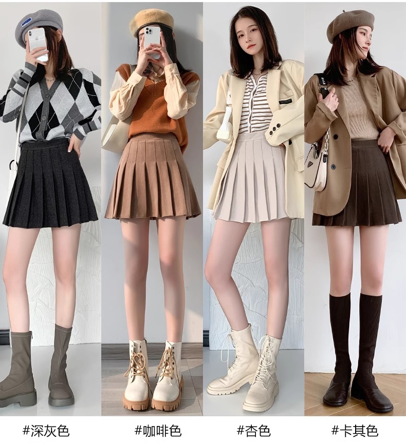 여성용 블랙 모직 플리츠 스커트 2025 가을, 겨울 하이 웨이스트 슬리밍 노출 방지 jk 스커트 두꺼운 a 라인 스커트스토어 가기