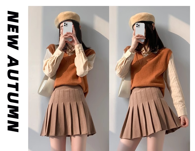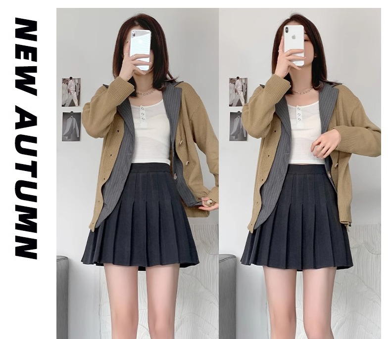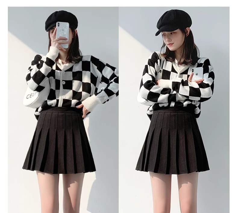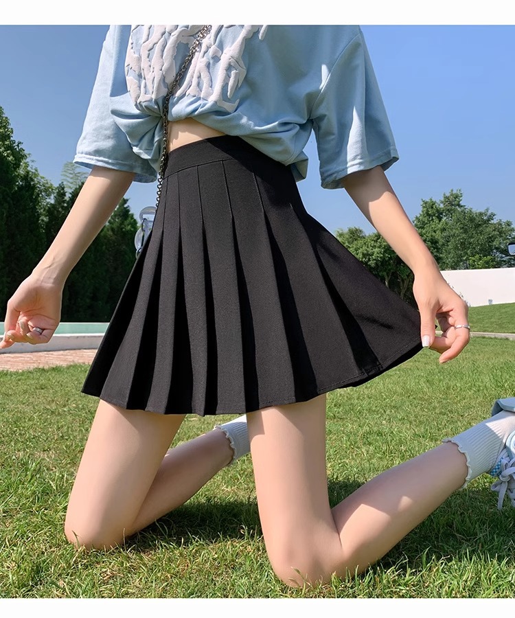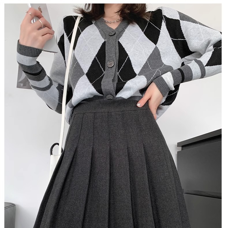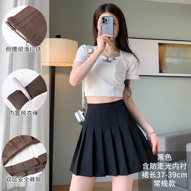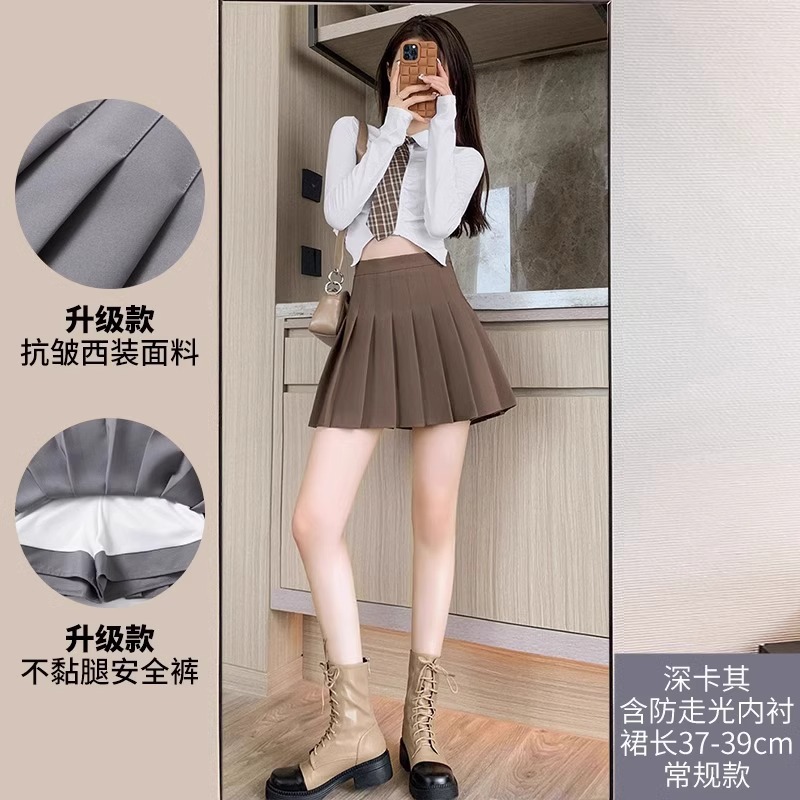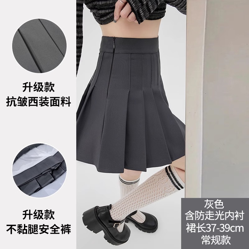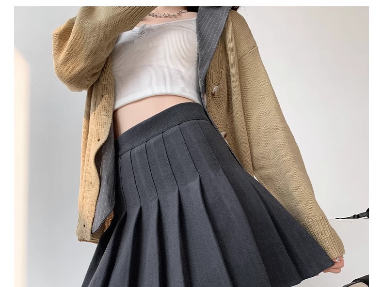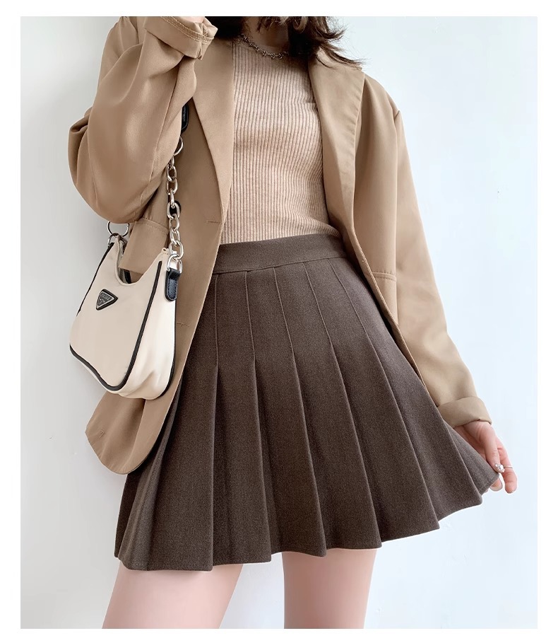 여성용 블랙 모직 플리츠 스커트 2025 가을, 겨울 하이 웨이스트 슬리밍 노출 방지 jk 스커트 두꺼운 a 라인 스커트스토어 가기