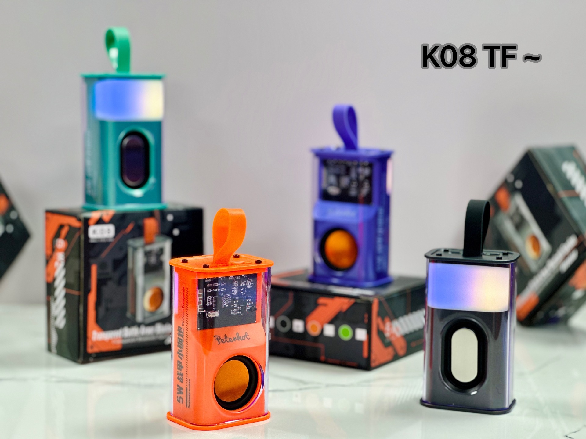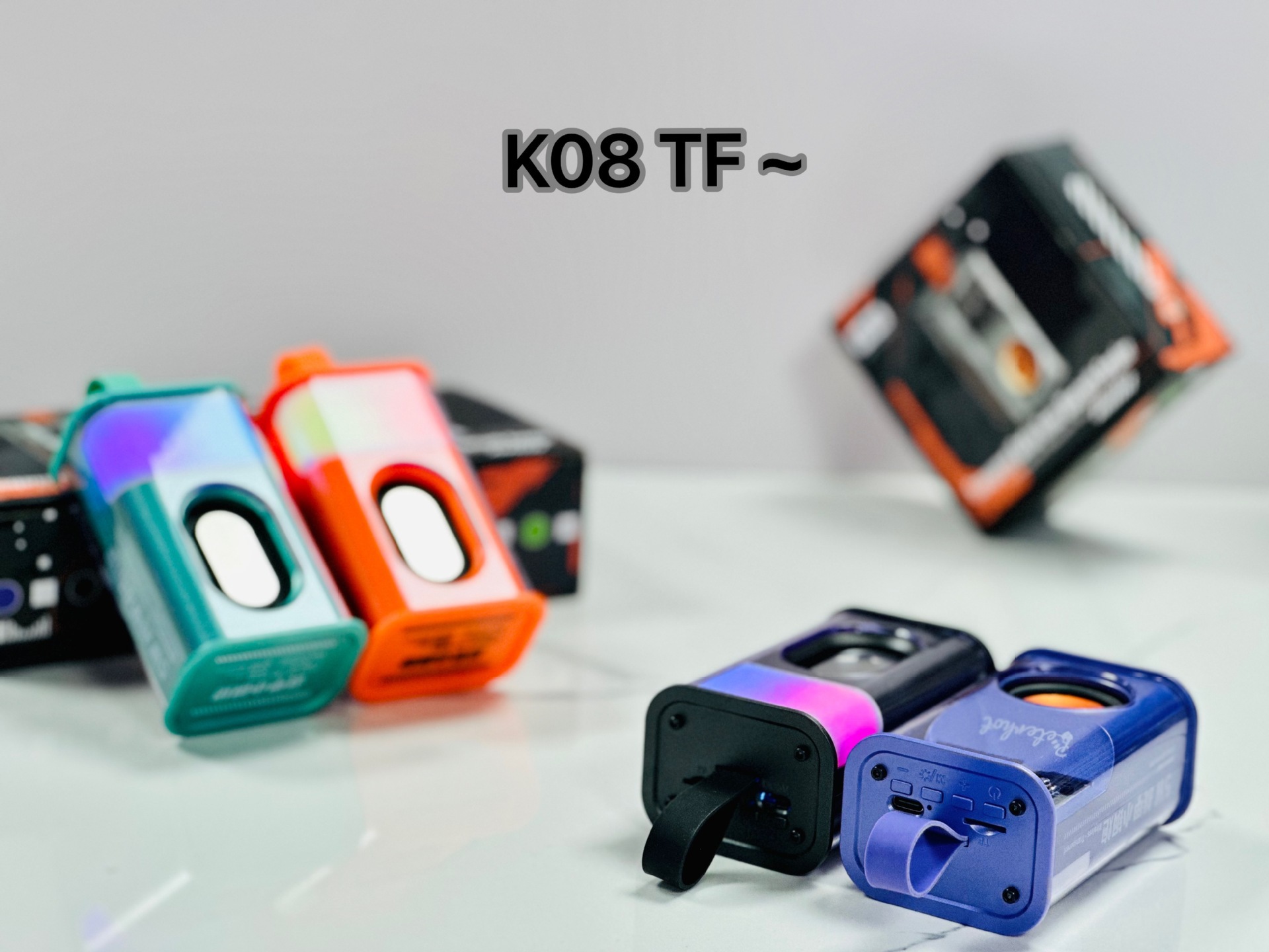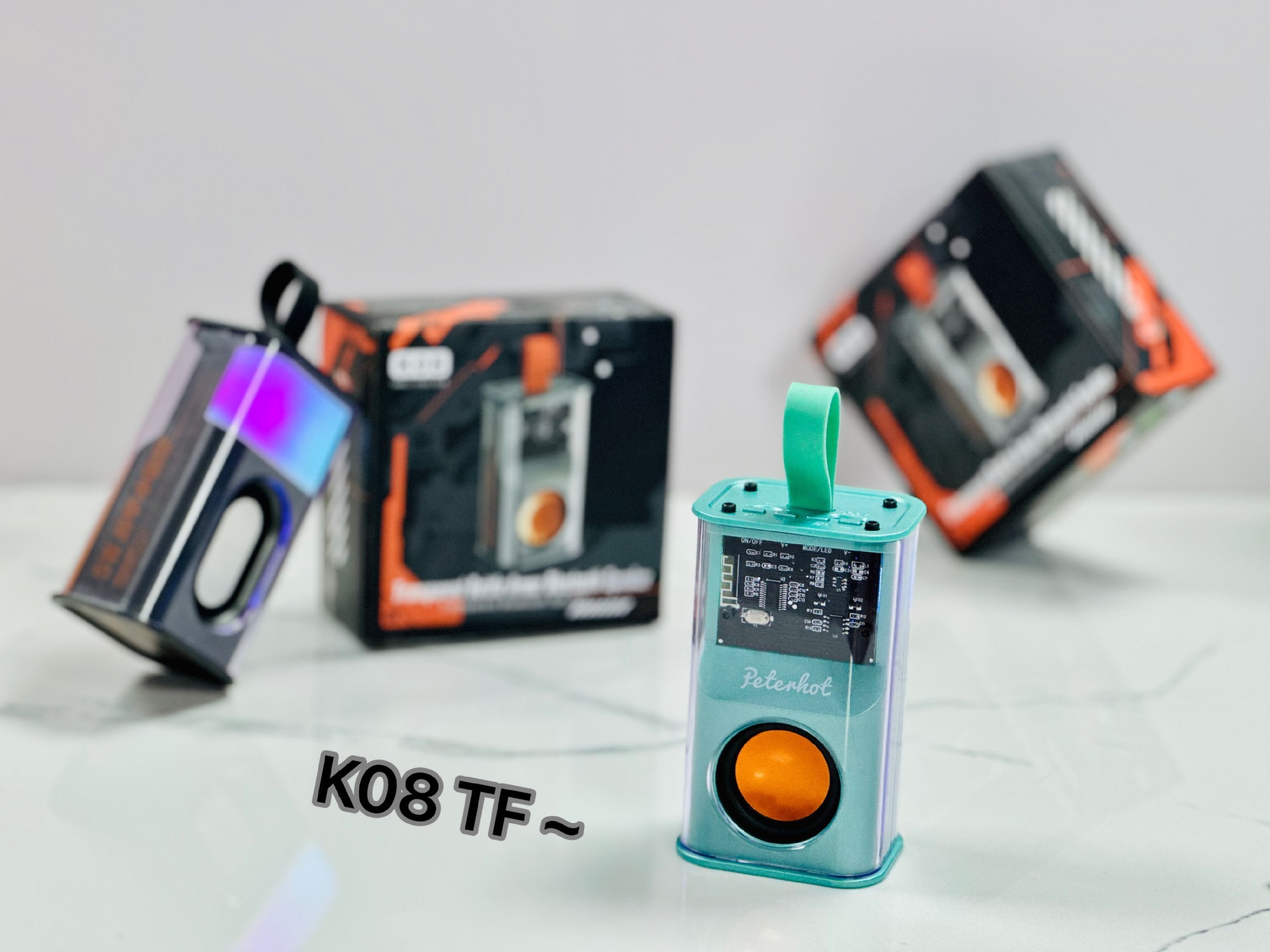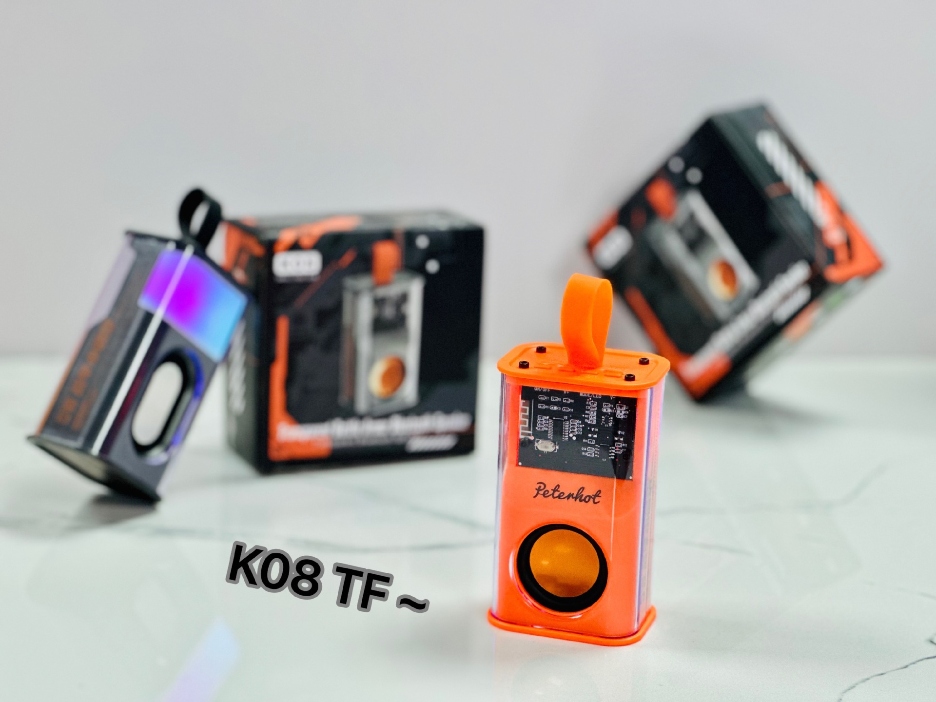 K08TF 插卡,杰理5.3主控,2018功放3w输出功率,4054充电过充保护,40圆外磁唡叭8个高磁铁,隋圆5030跑道振膜反贴不锈钢面,14500圆柱500毫安电池带普通精工板保护。配50cm长TPC充电线,黑色的小合子没有吸塑内托100个每件。