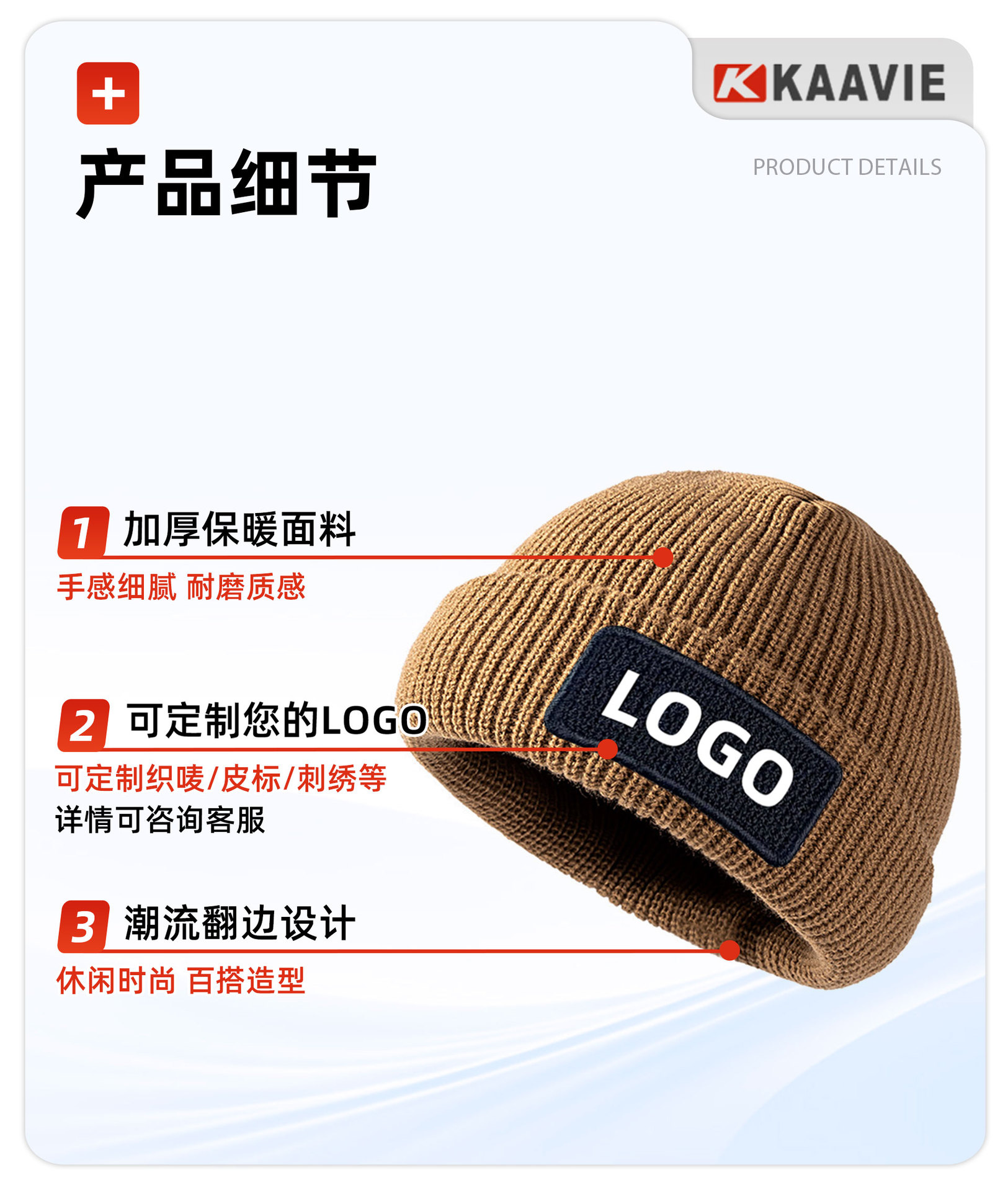 秋冬LOGO刺绣护耳加厚实定制针织帽 防寒保暖防风保温毛线冷帽
