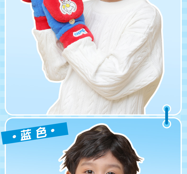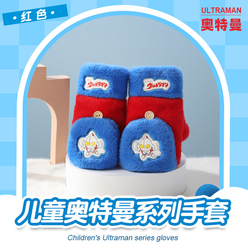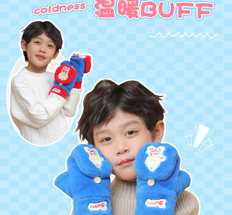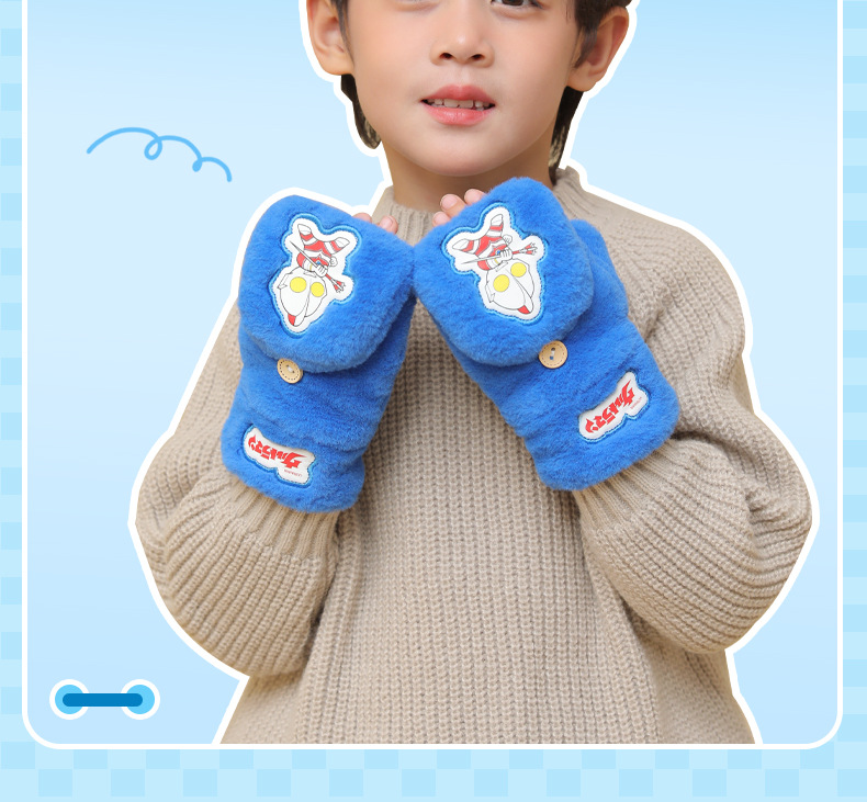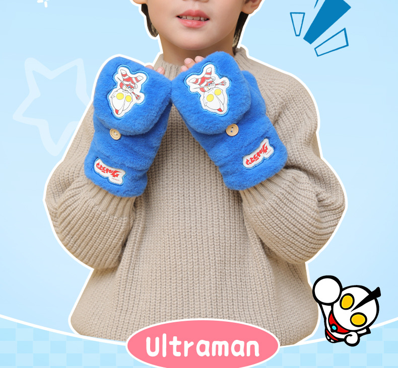 남학생과 여학생을위한 울트라 맨 어린이 장갑 겨울 따뜻한 플립 핑거 커버 기모 귀여운 방풍 사이클링 장갑스토어 가기