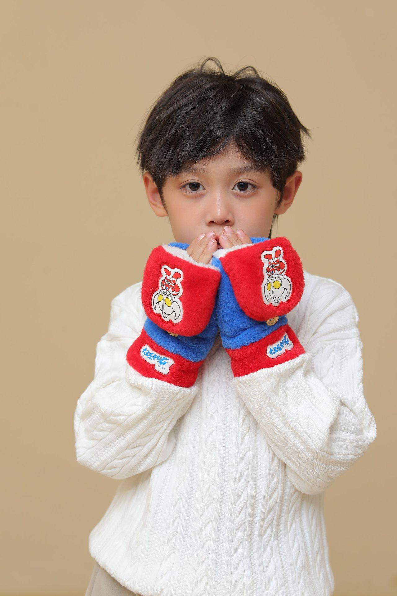 남학생과 여학생을위한 울트라 맨 어린이 장갑 겨울 따뜻한 플립 핑거 커버 기모 귀여운 방풍 사이클링 장갑