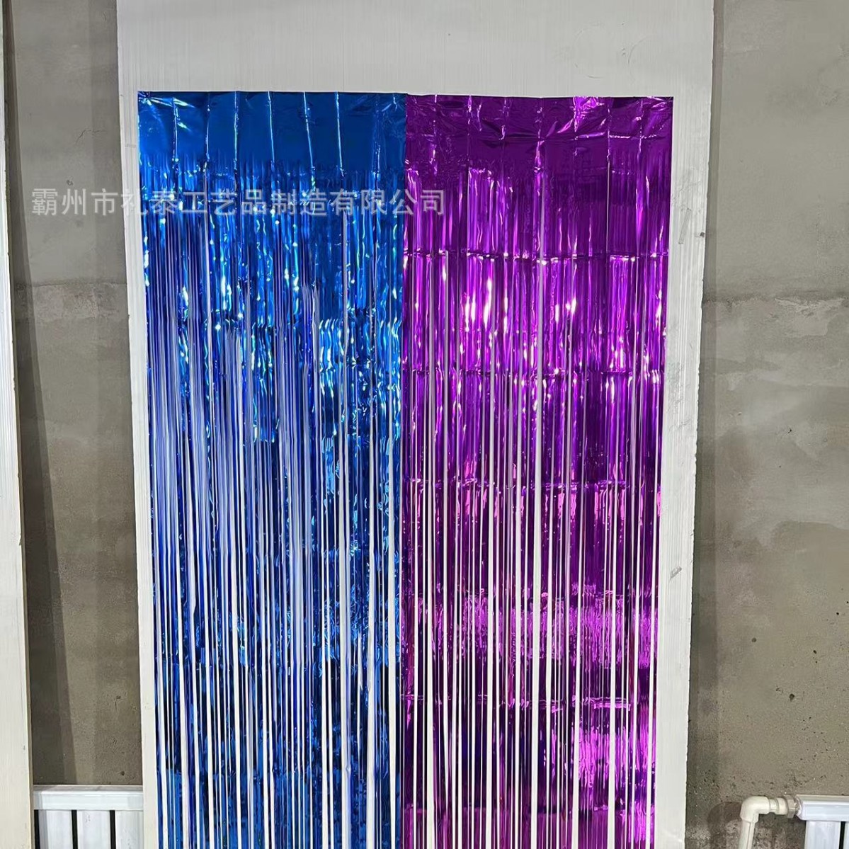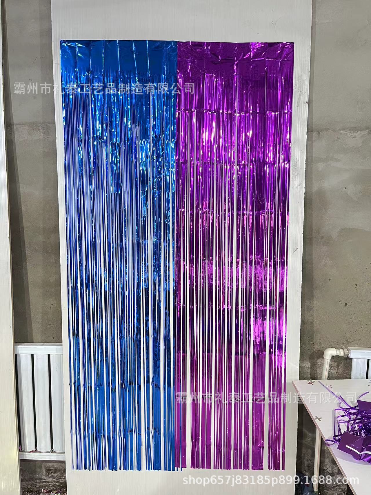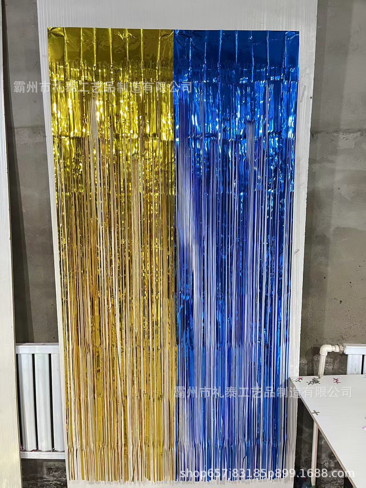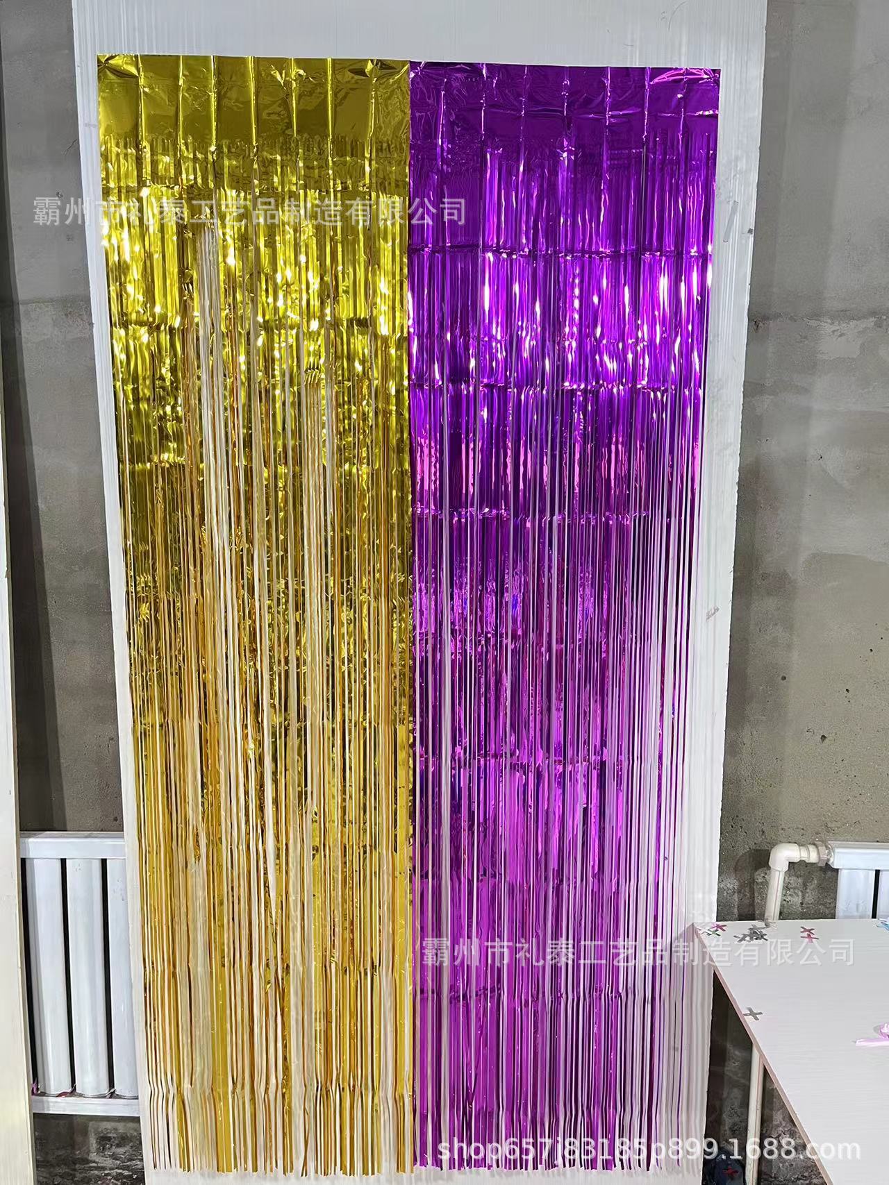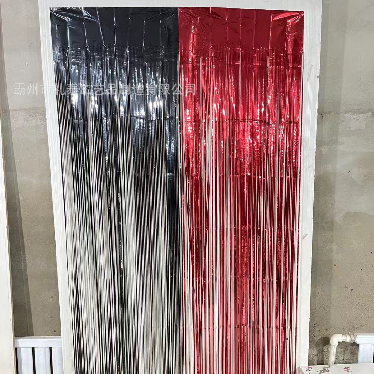 국경 2 색 스티칭 컬러 비 실크 커튼 도어 커튼 생일 파티 용품 2 색 스티칭 비 실크 커튼 장식 배경스토어 가기
