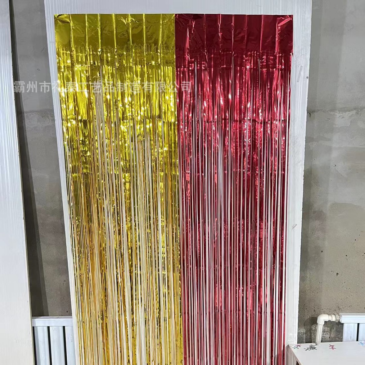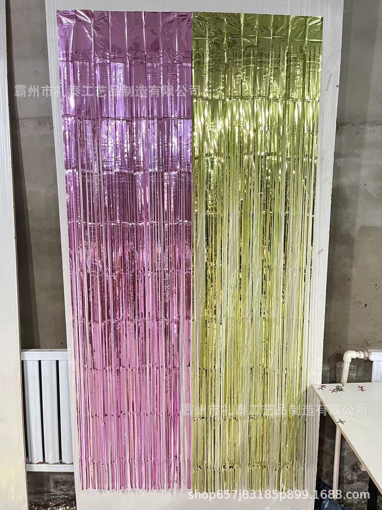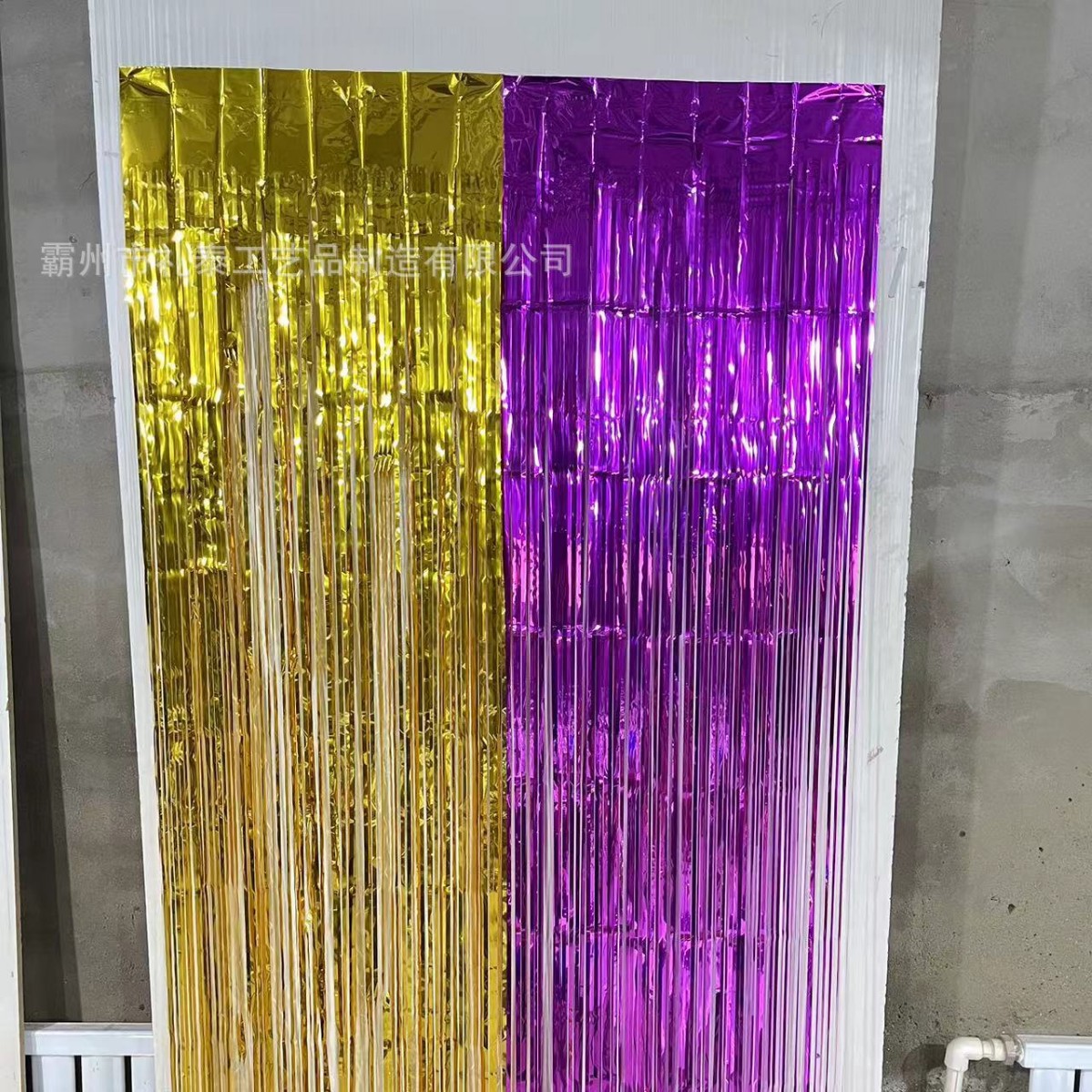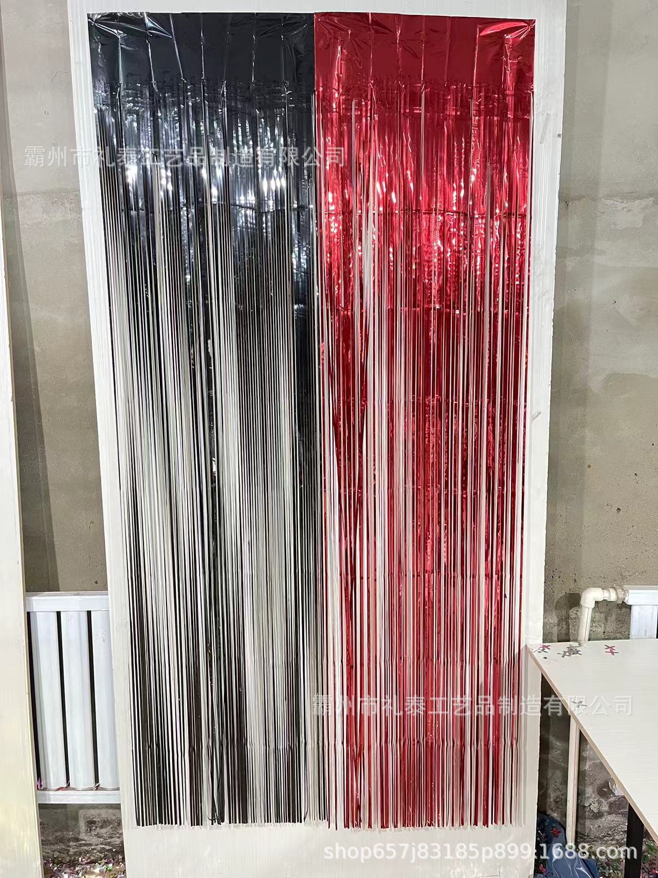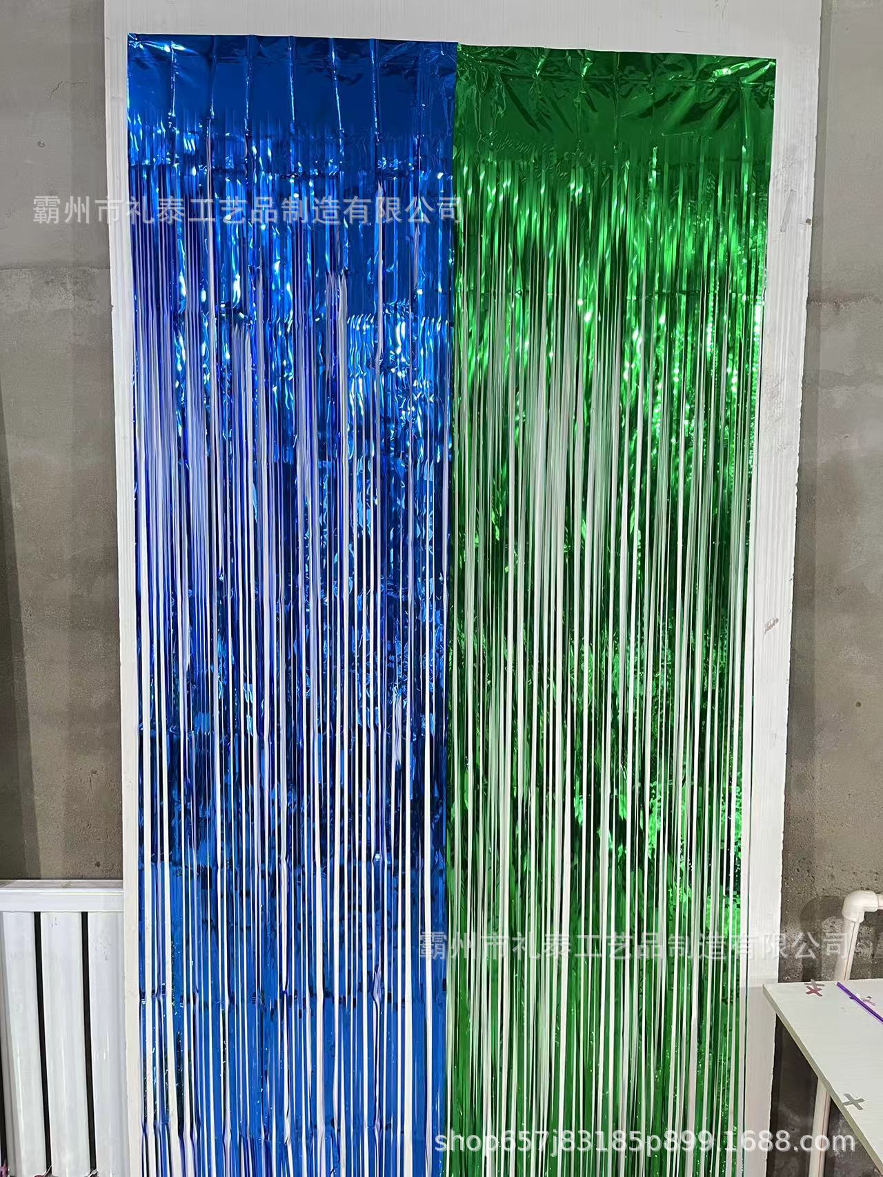 국경 2 색 스티칭 컬러 비 실크 커튼 도어 커튼 생일 파티 용품 2 색 스티칭 비 실크 커튼 장식 배경스토어 가기