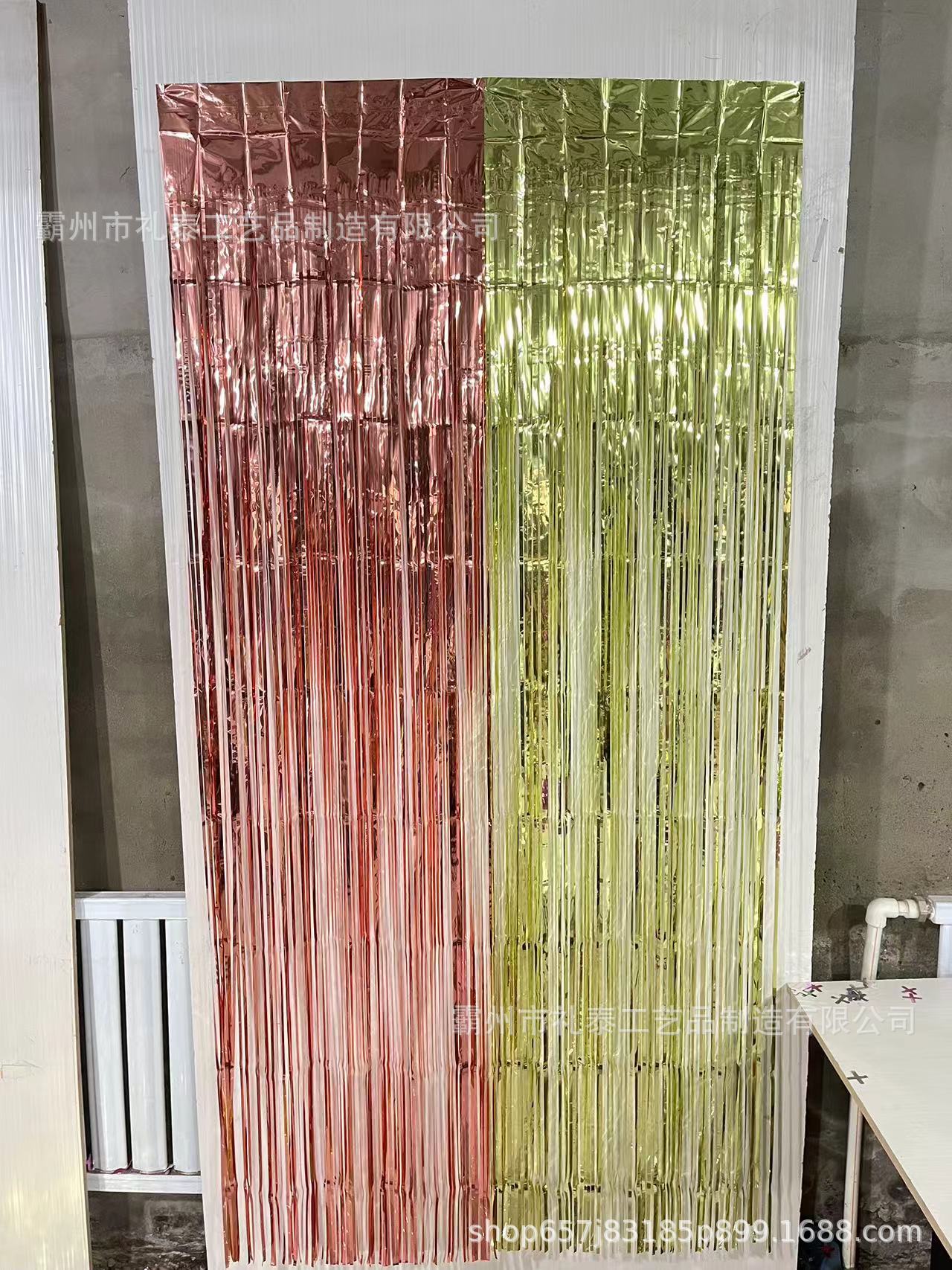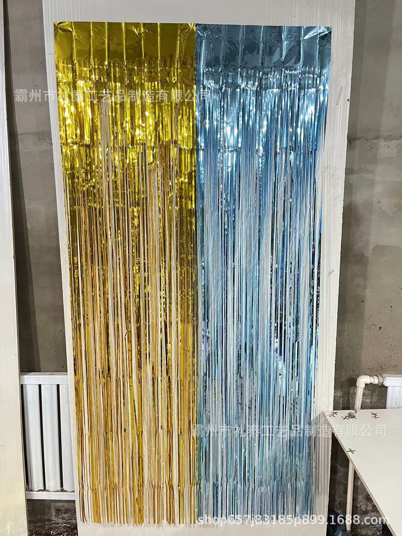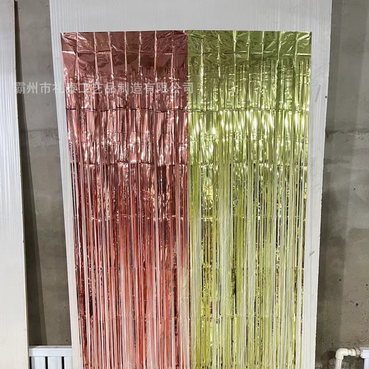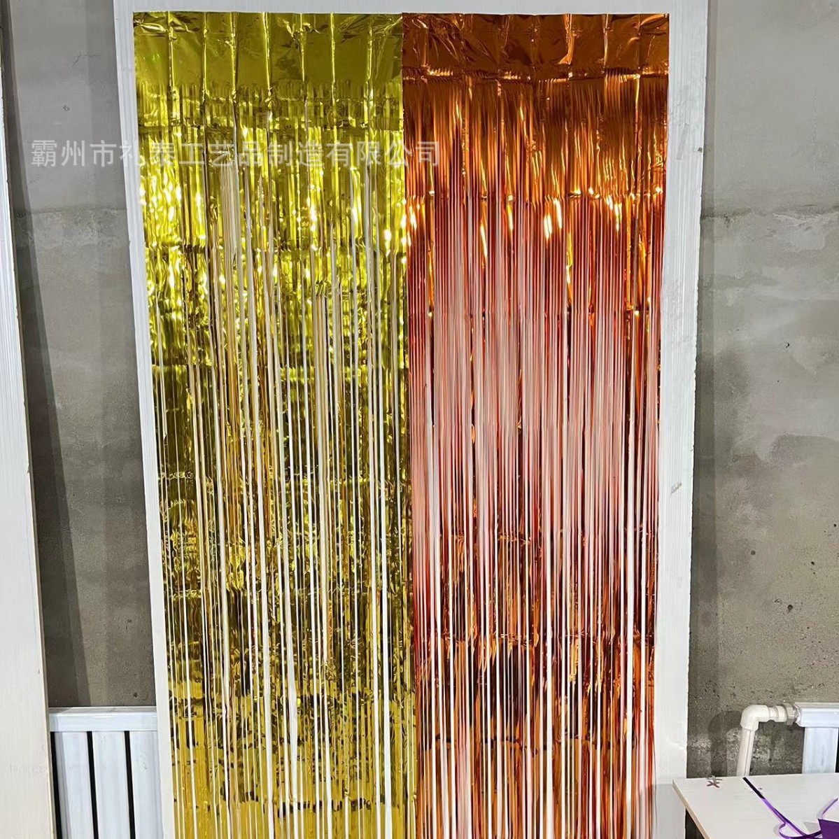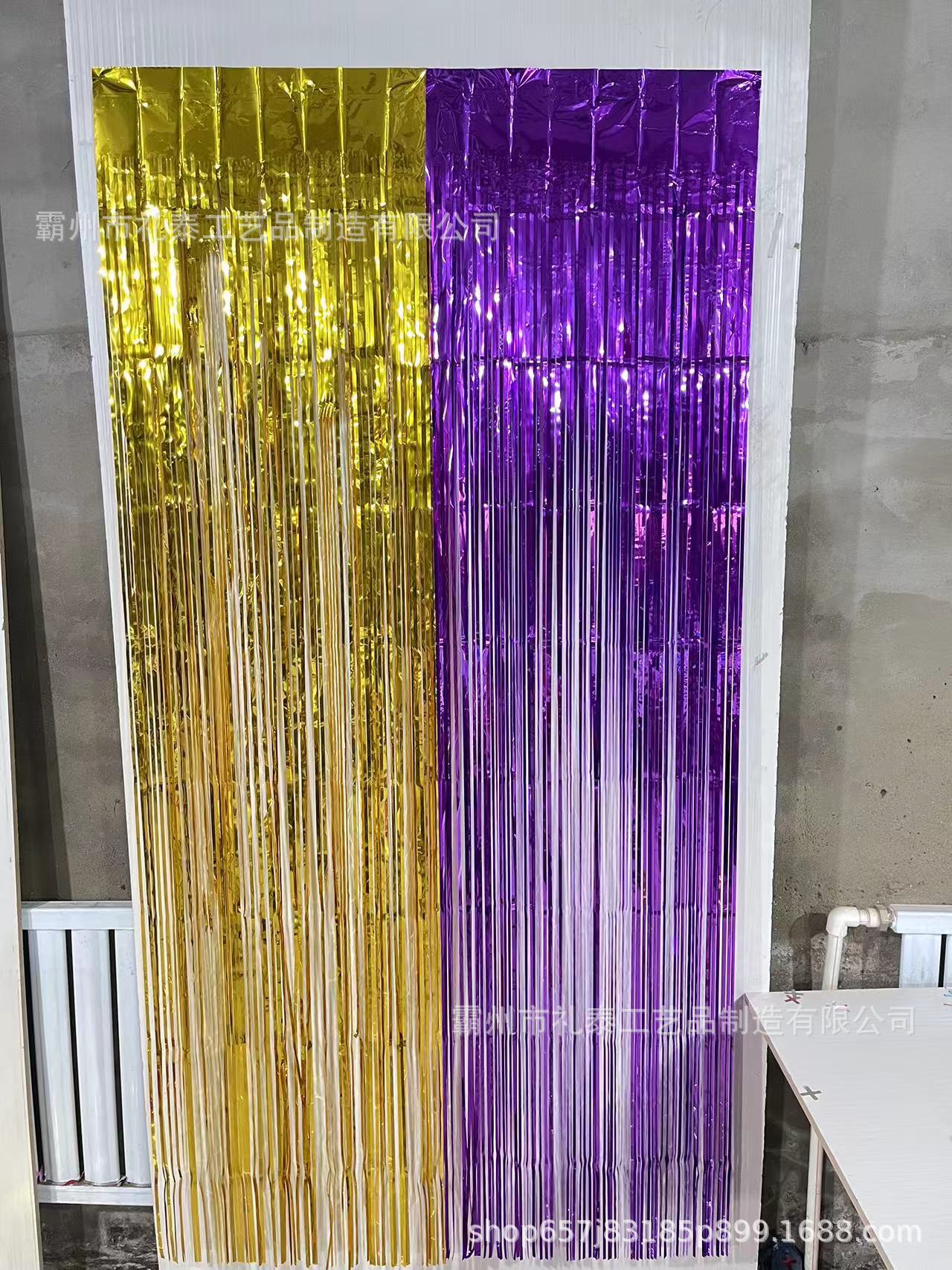 국경 2 색 스티칭 컬러 비 실크 커튼 도어 커튼 생일 파티 용품 2 색 스티칭 비 실크 커튼 장식 배경스토어 가기