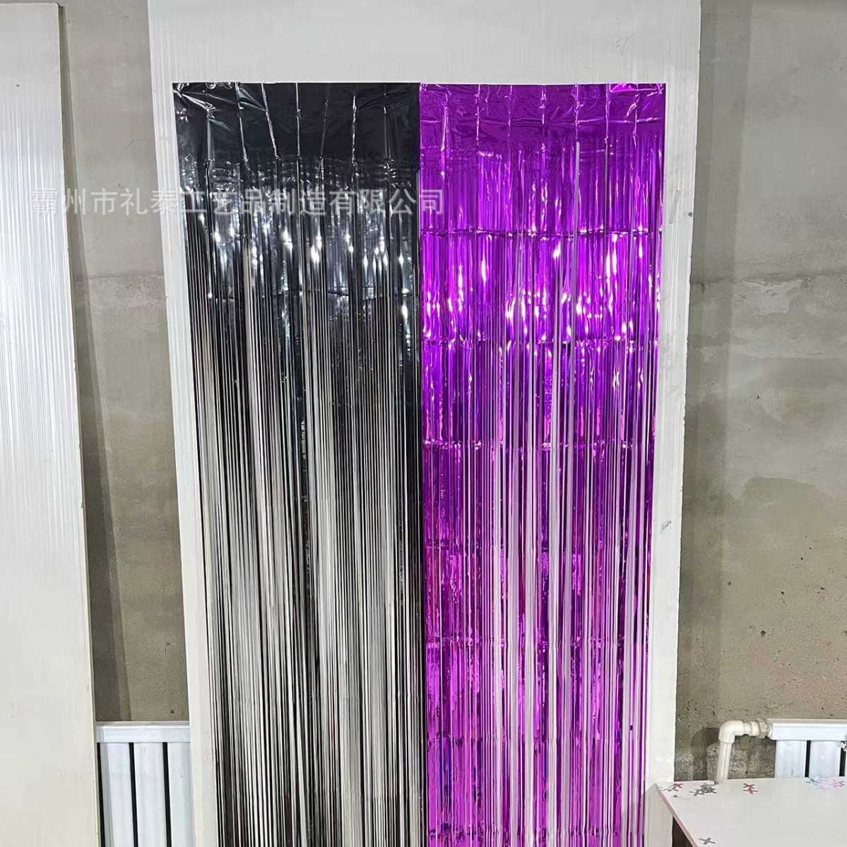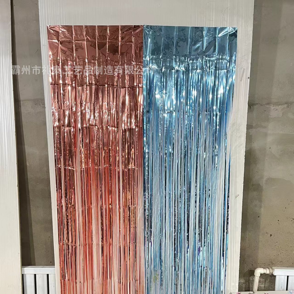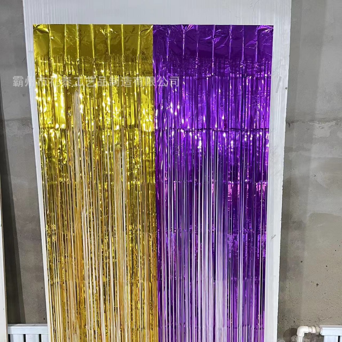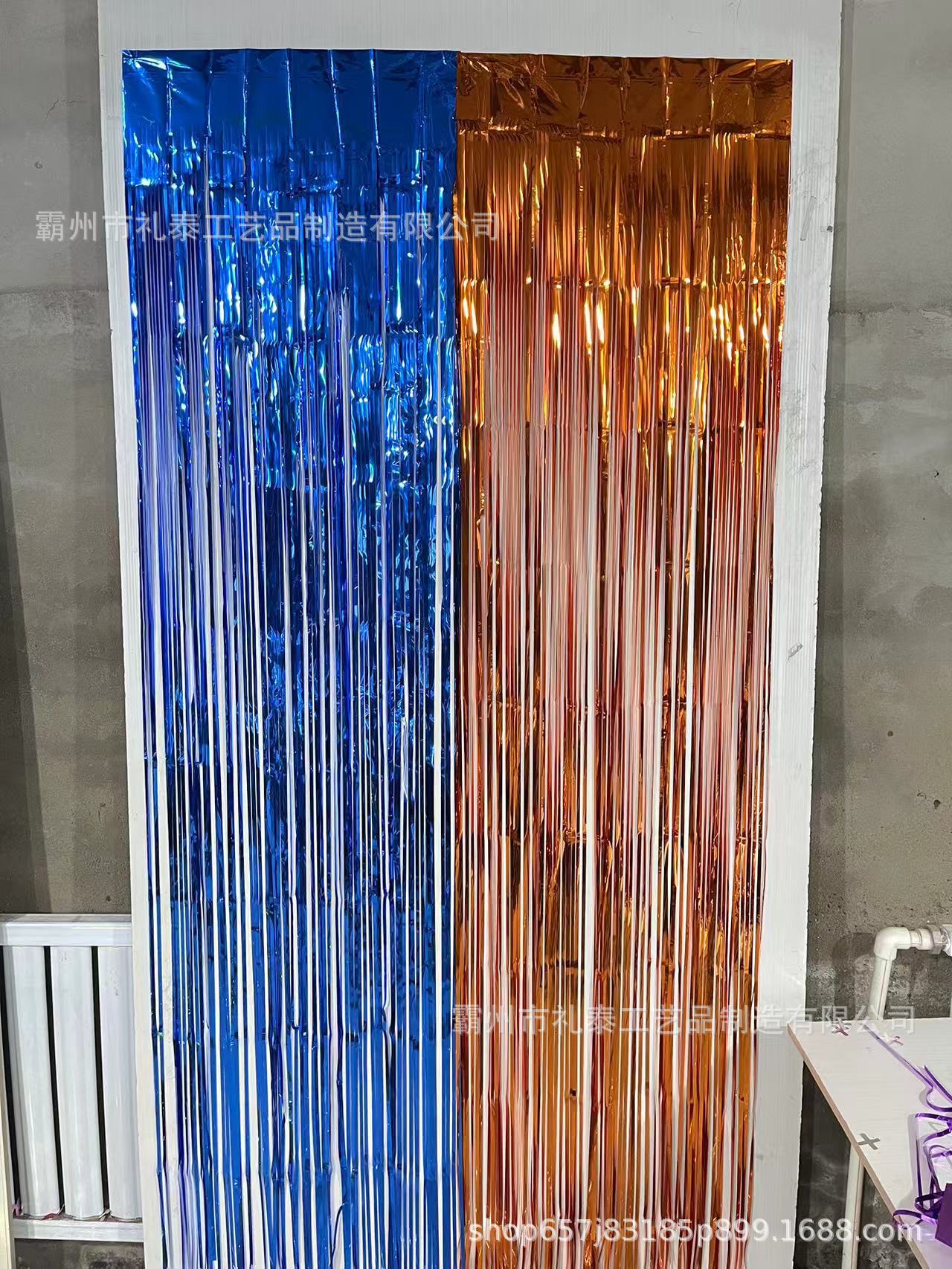 국경 2 색 스티칭 컬러 비 실크 커튼 도어 커튼 생일 파티 용품 2 색 스티칭 비 실크 커튼 장식 배경스토어 가기
