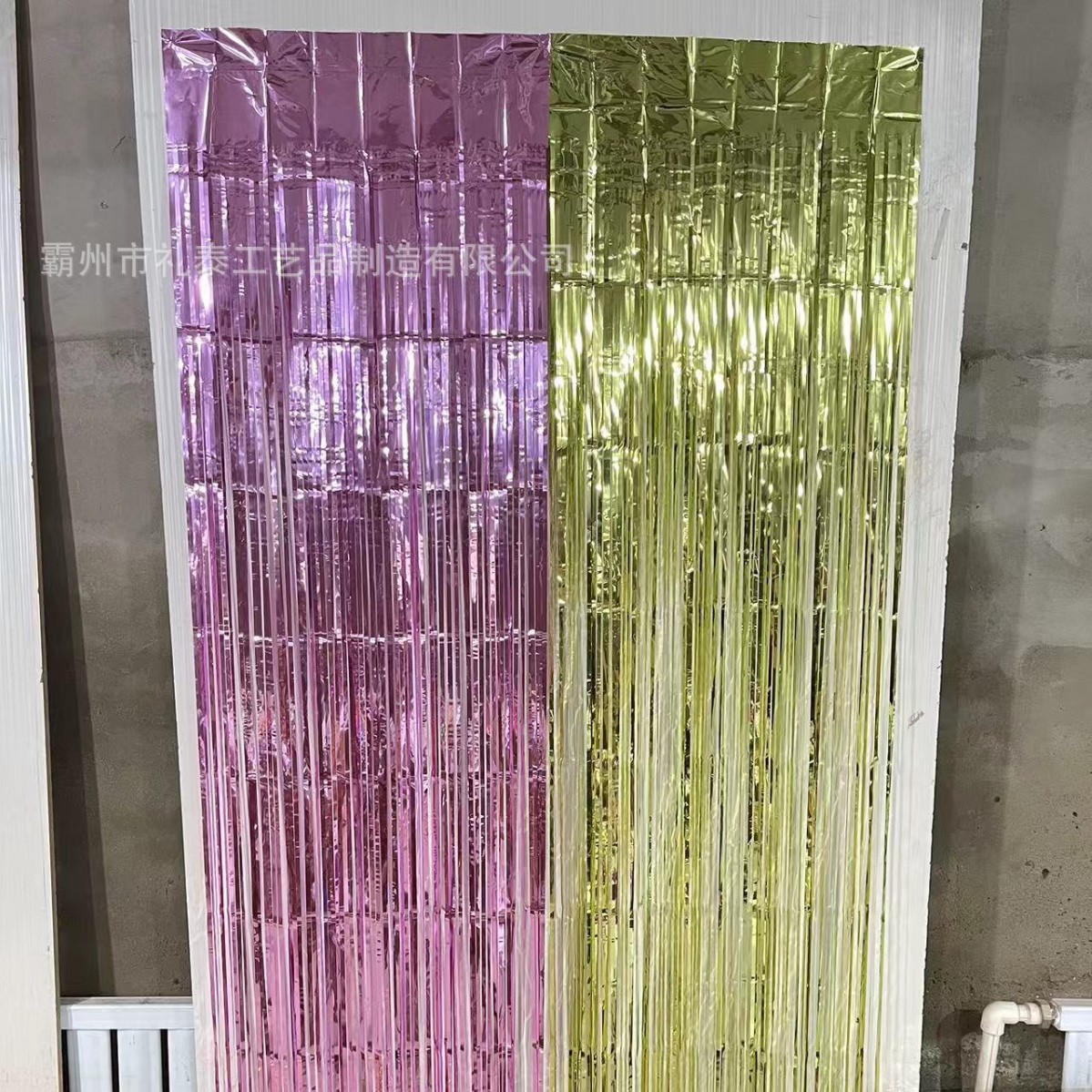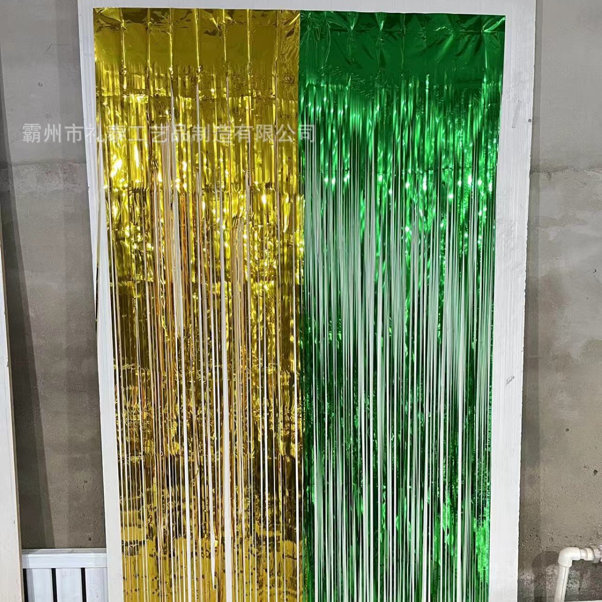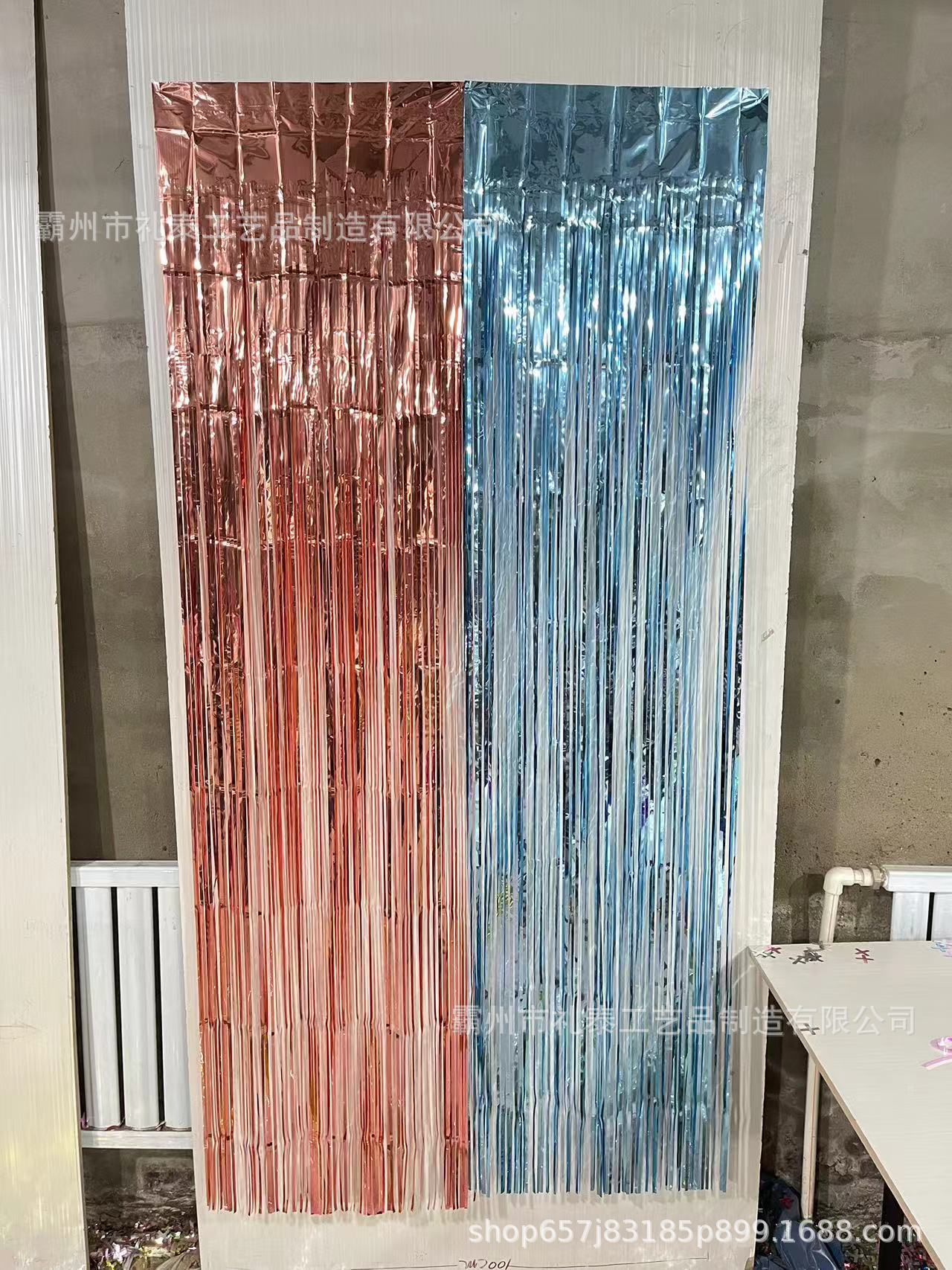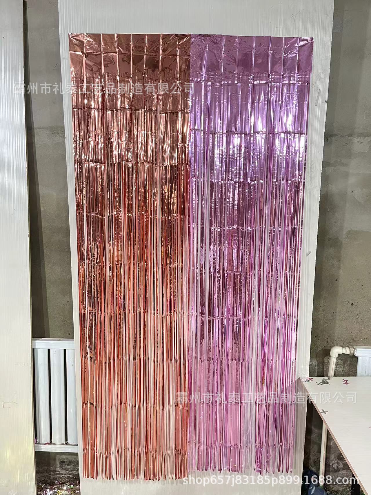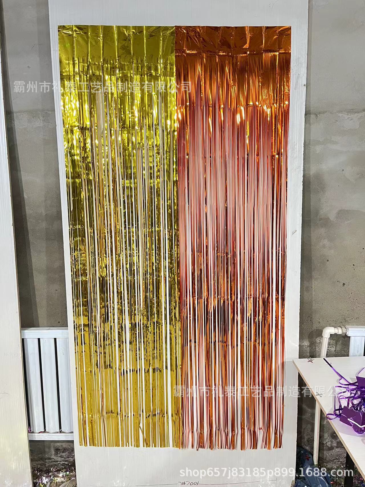 국경 2 색 스티칭 컬러 비 실크 커튼 도어 커튼 생일 파티 용품 2 색 스티칭 비 실크 커튼 장식 배경스토어 가기