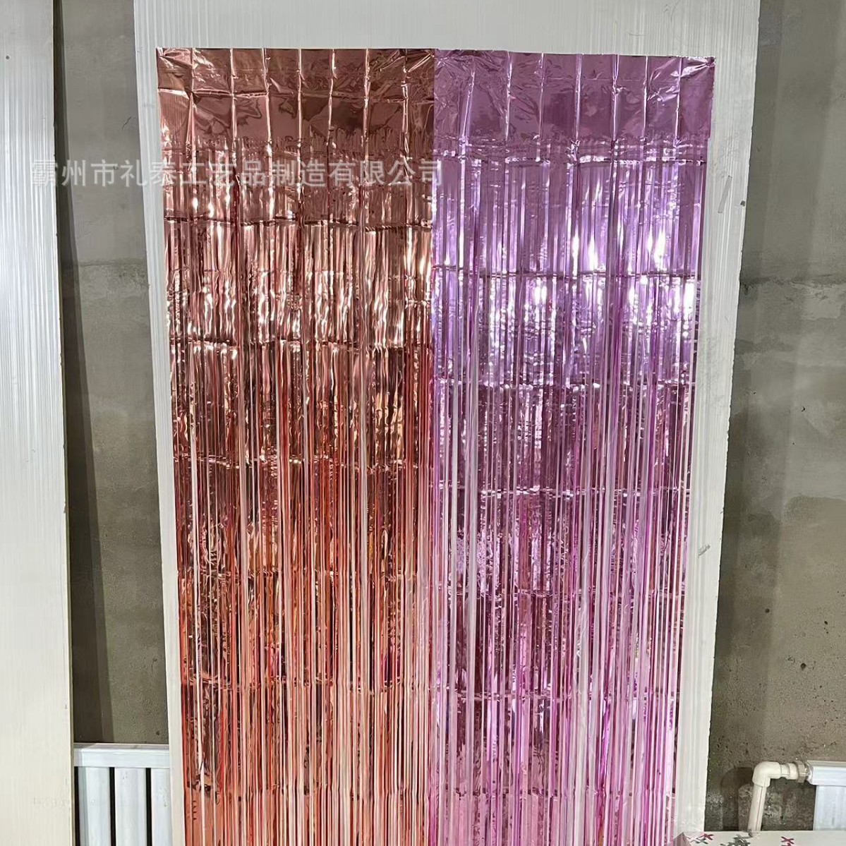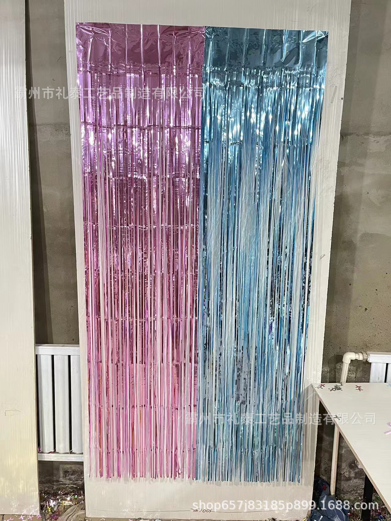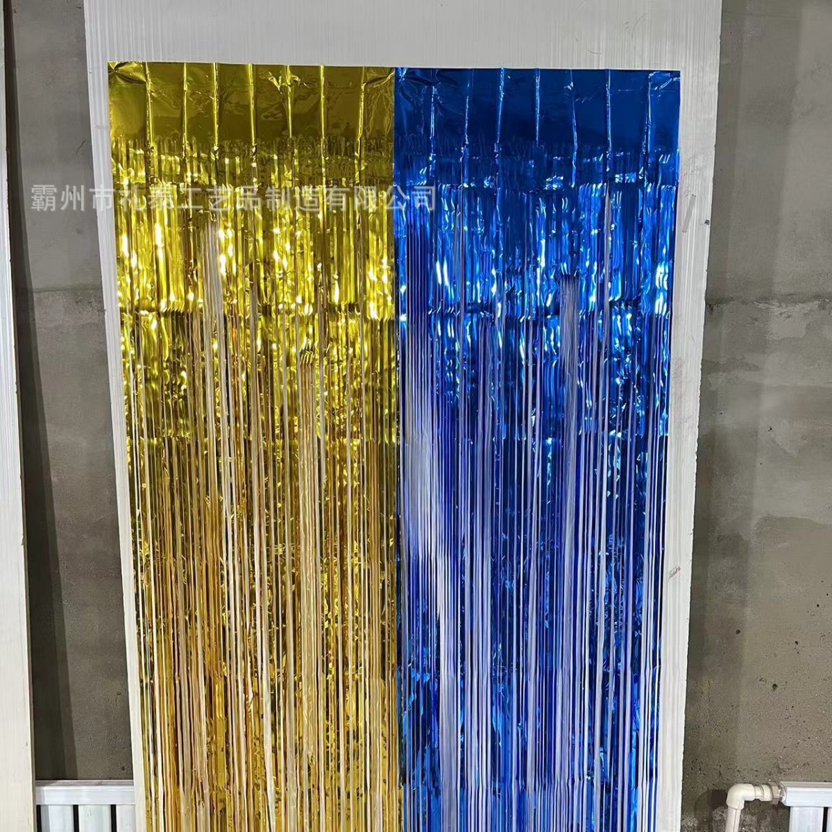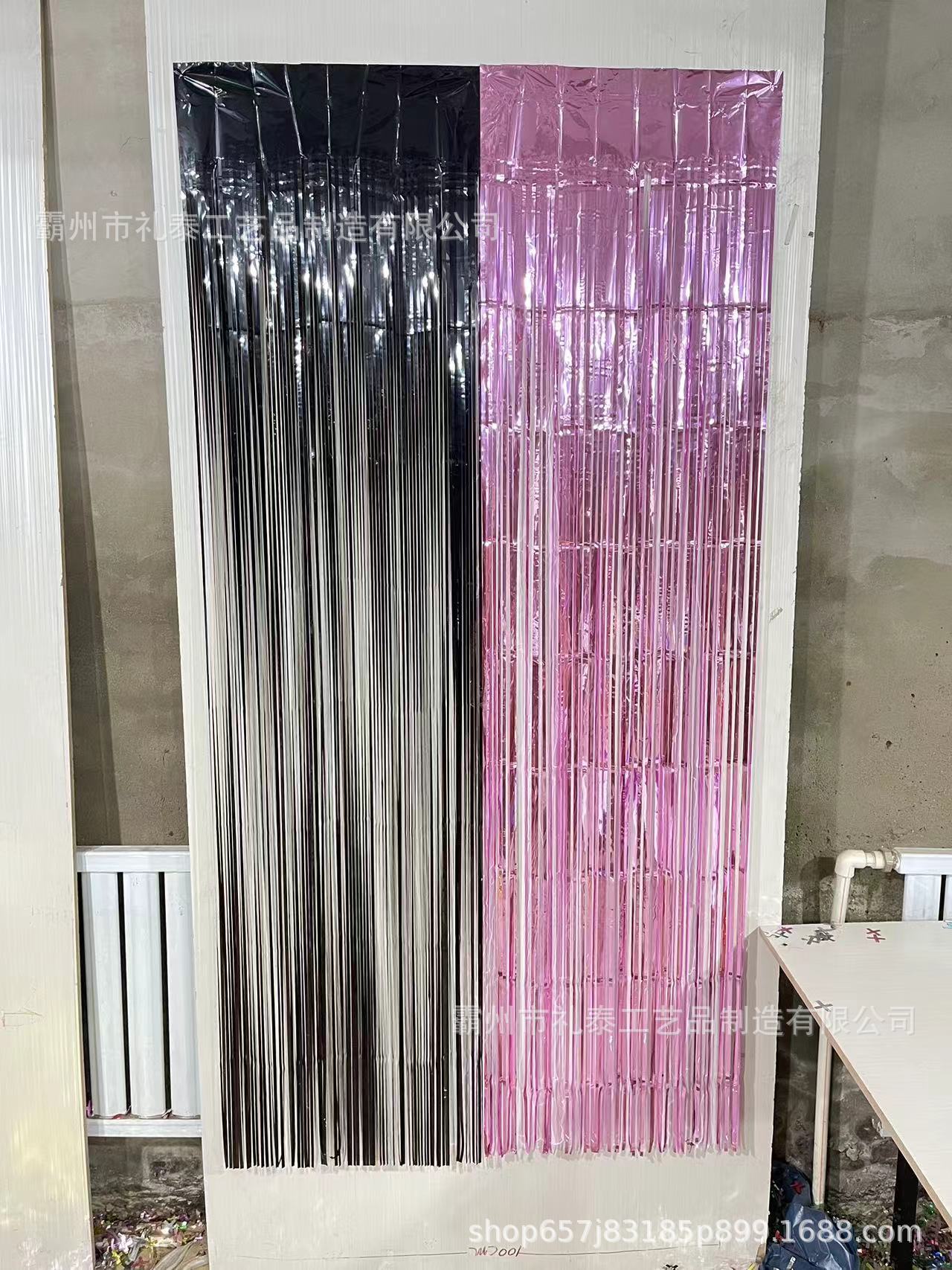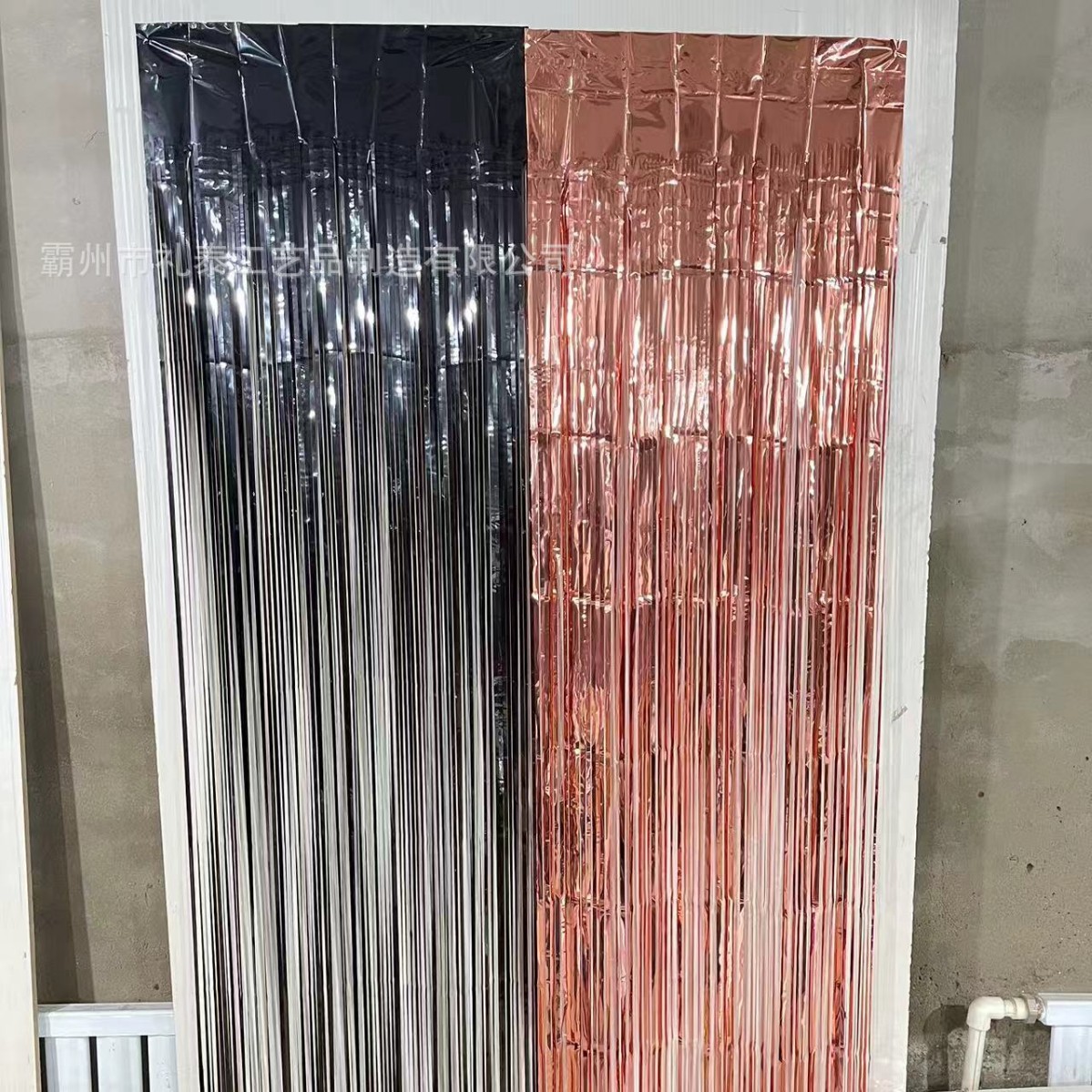 국경 2 색 스티칭 컬러 비 실크 커튼 도어 커튼 생일 파티 용품 2 색 스티칭 비 실크 커튼 장식 배경스토어 가기