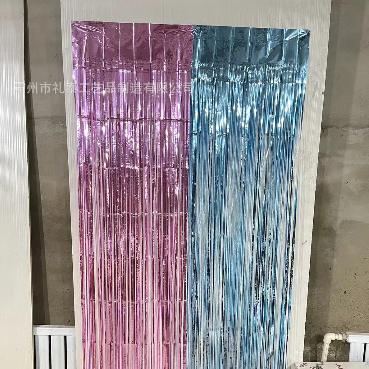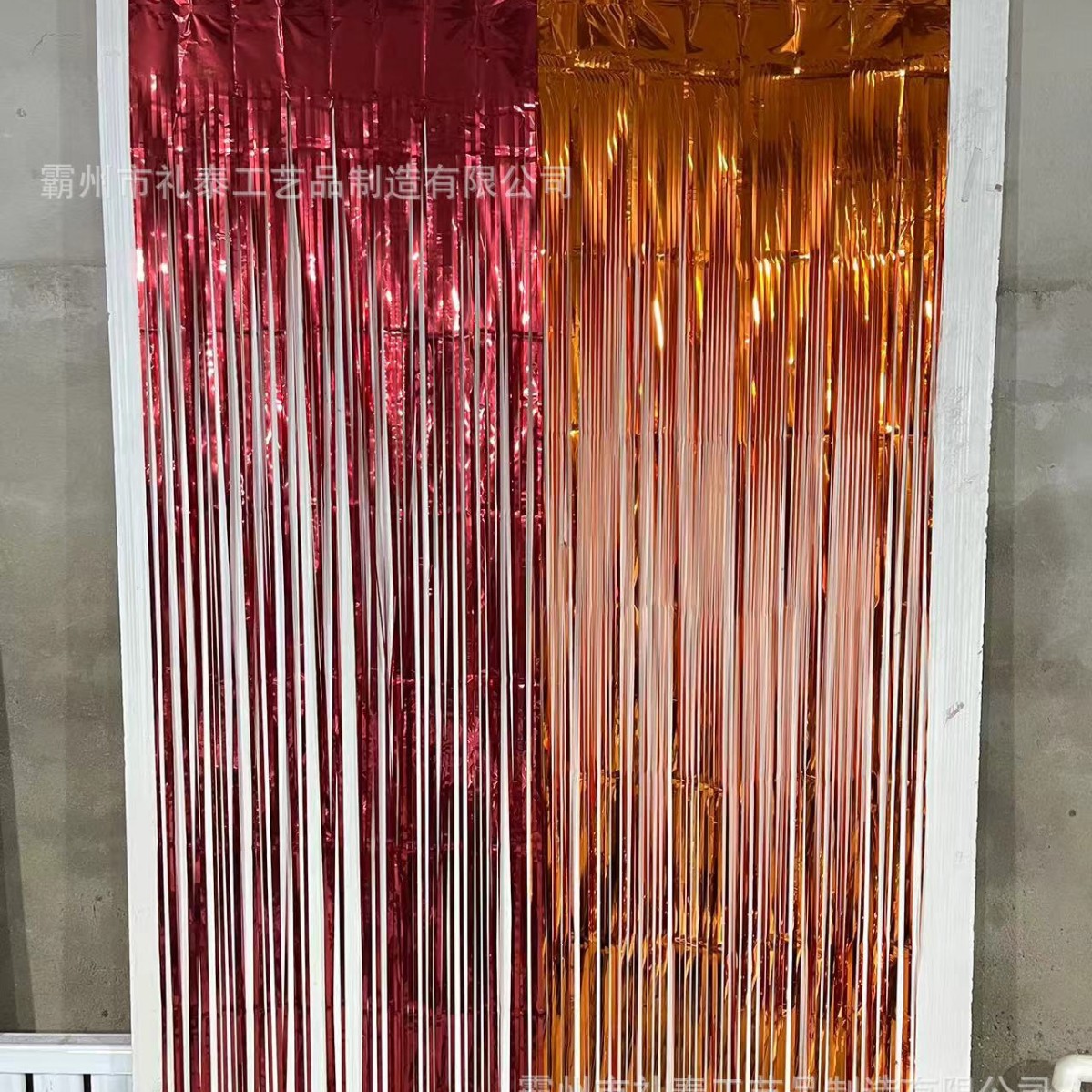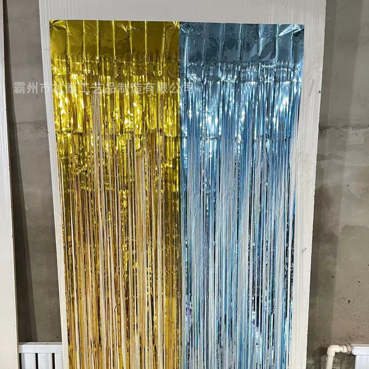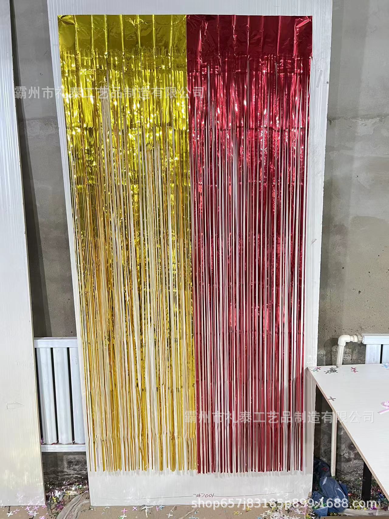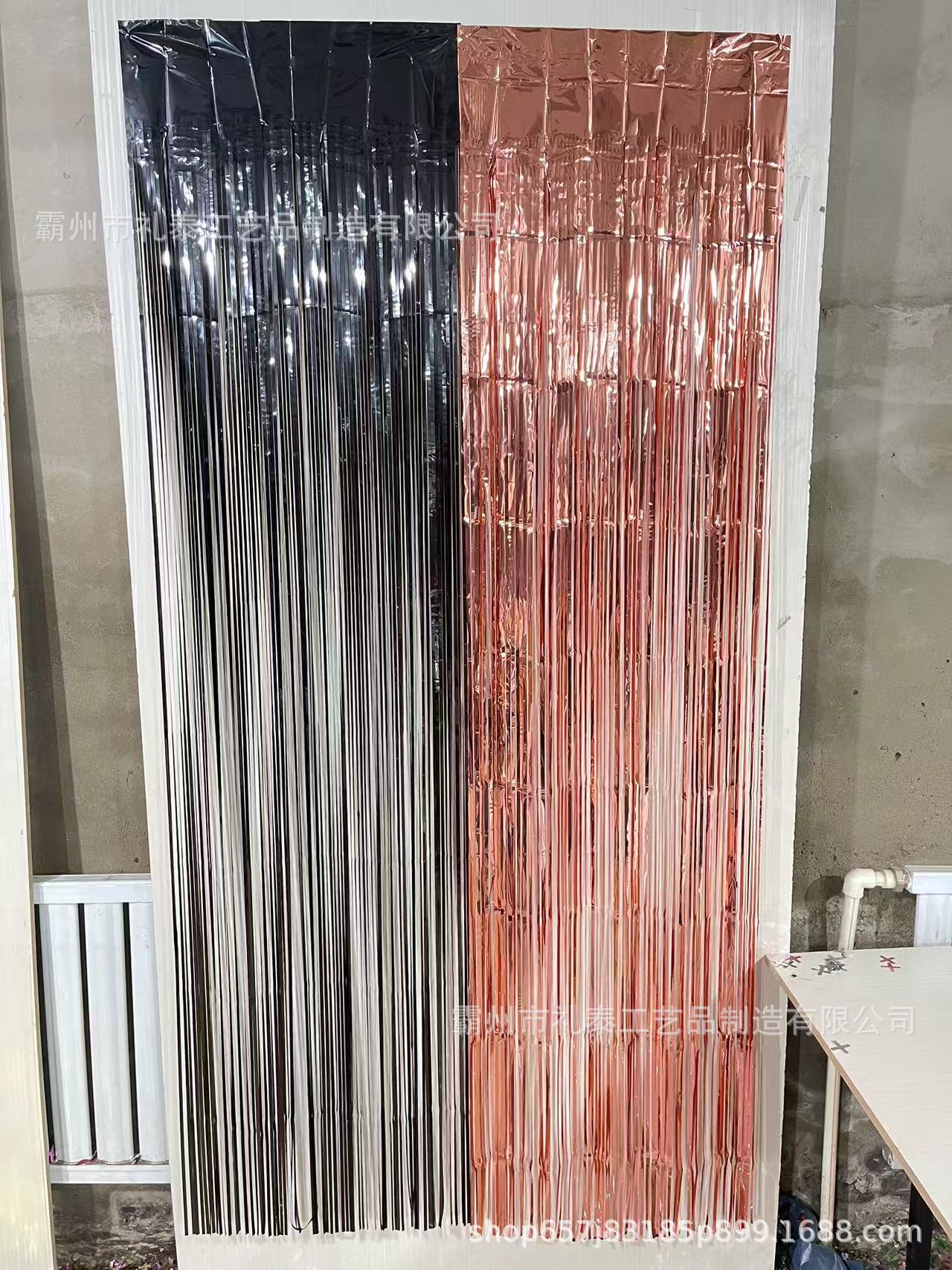 국경 2 색 스티칭 컬러 비 실크 커튼 도어 커튼 생일 파티 용품 2 색 스티칭 비 실크 커튼 장식 배경스토어 가기