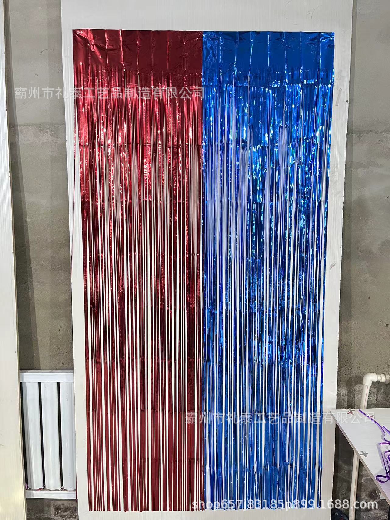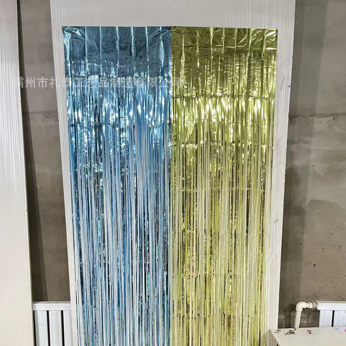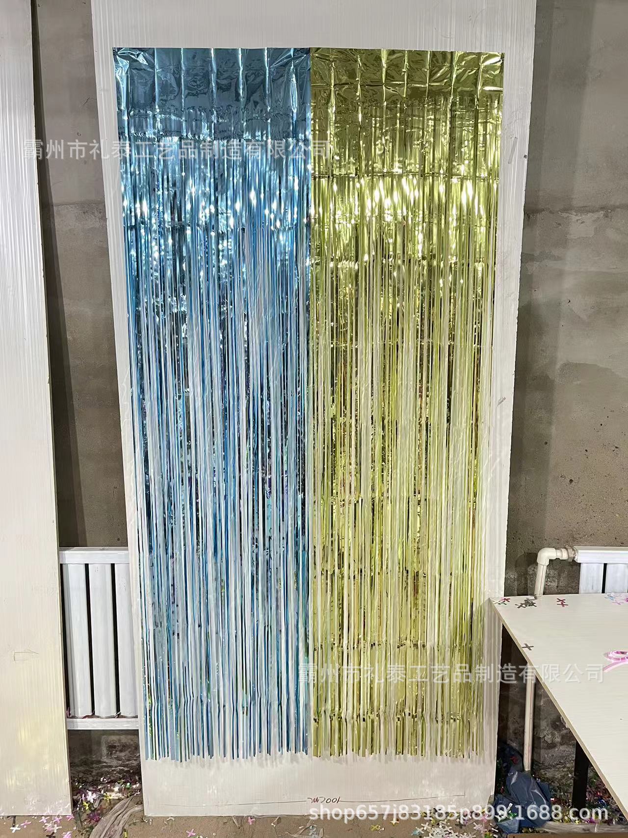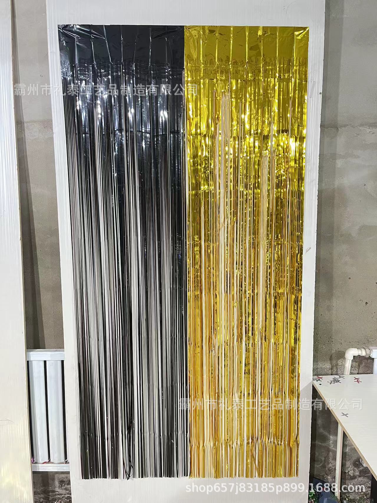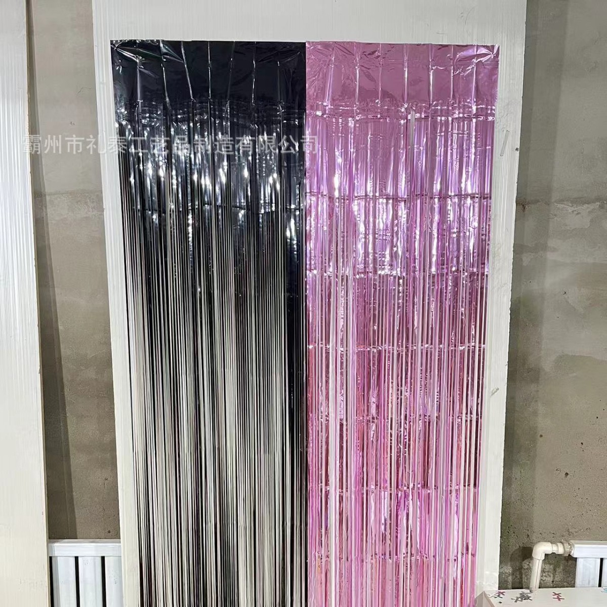 국경 2 색 스티칭 컬러 비 실크 커튼 도어 커튼 생일 파티 용품 2 색 스티칭 비 실크 커튼 장식 배경스토어 가기