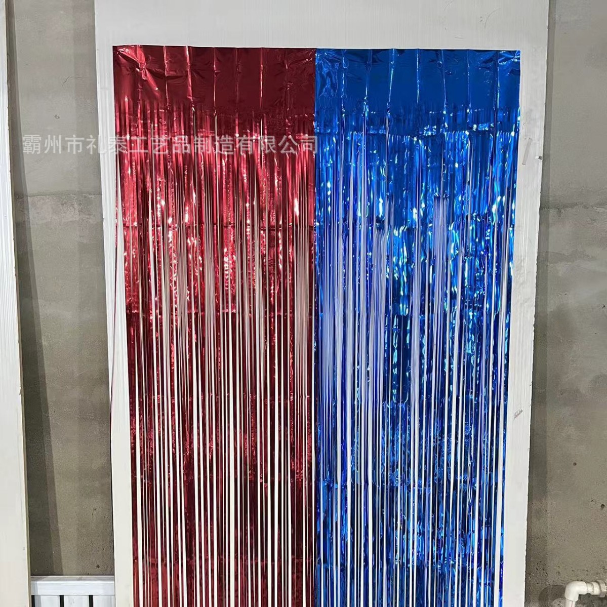 국경 2 색 스티칭 컬러 비 실크 커튼 도어 커튼 생일 파티 용품 2 색 스티칭 비 실크 커튼 장식 배경