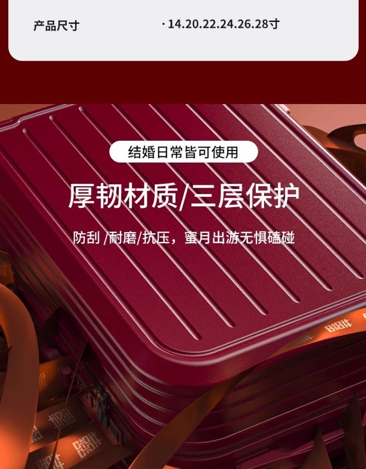 웨딩 수하물 Dowry 케이스 레드 가방 신부 트롤리 케이스 여성 웨딩 암호 Dowry 케이스 페어스토어 가기