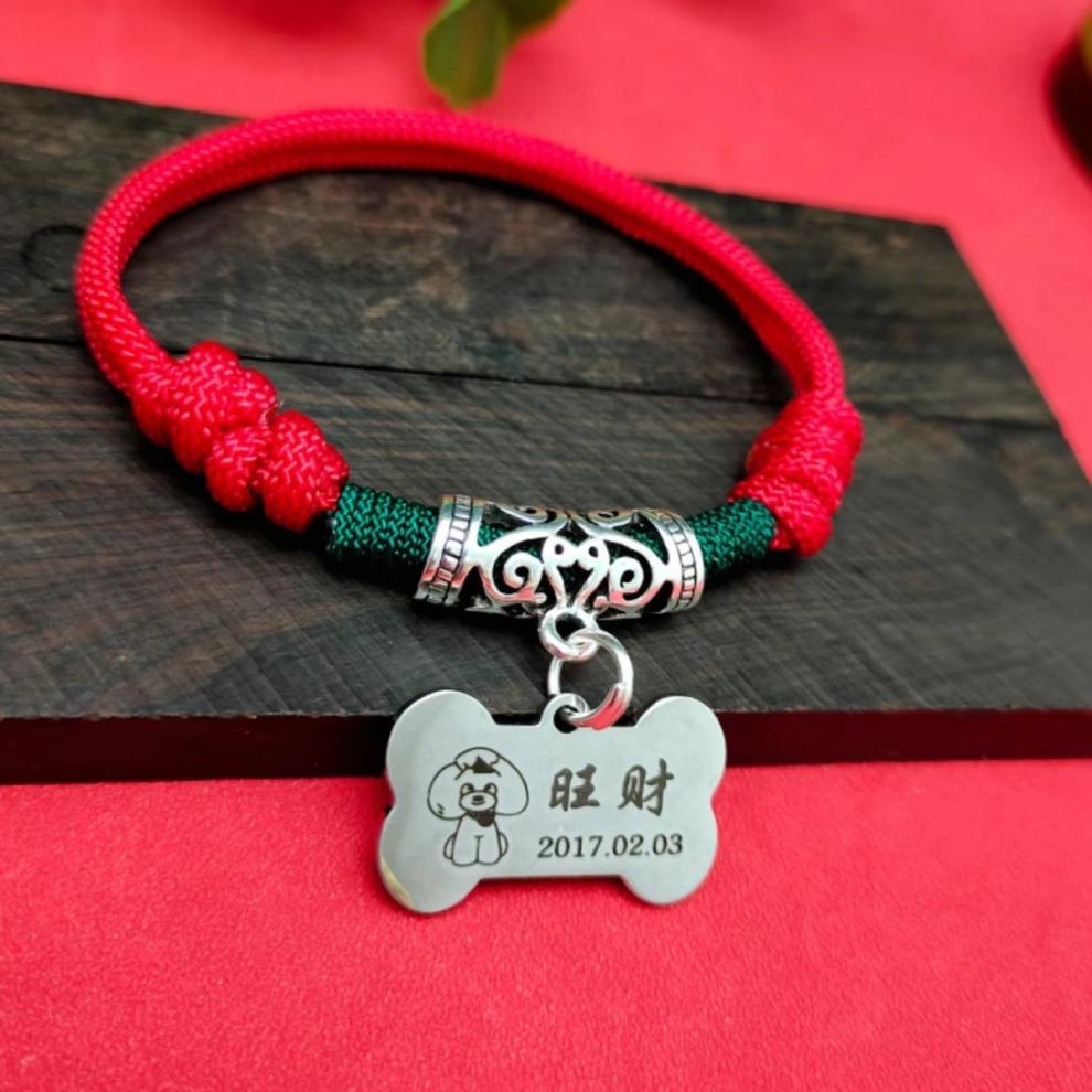• 고양이 1마리] 둥근 밧줄 티 빨간색과 녹색 유명 브랜드 새겨진 은색 고양이 머리