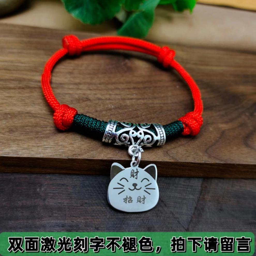 • 고양이 1마리】둥근 밧줄 티 빨간색과 녹색 유명 브랜드 새겨진 금 고양이 머리
