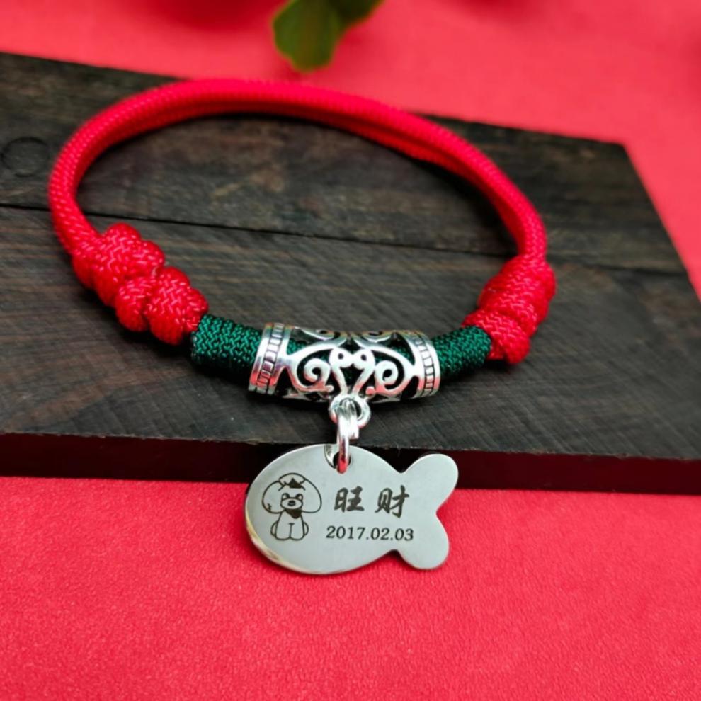 • 개] 둥근 밧줄 티 빨간색과 녹색 유명 브랜드 새겨진 은색 뼈 스타일