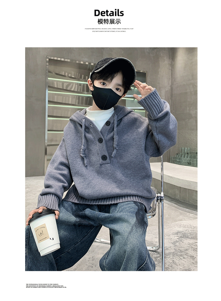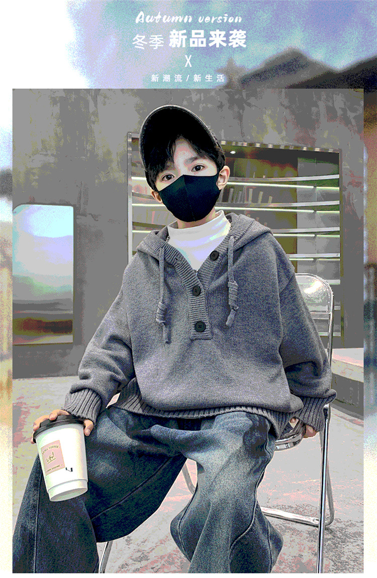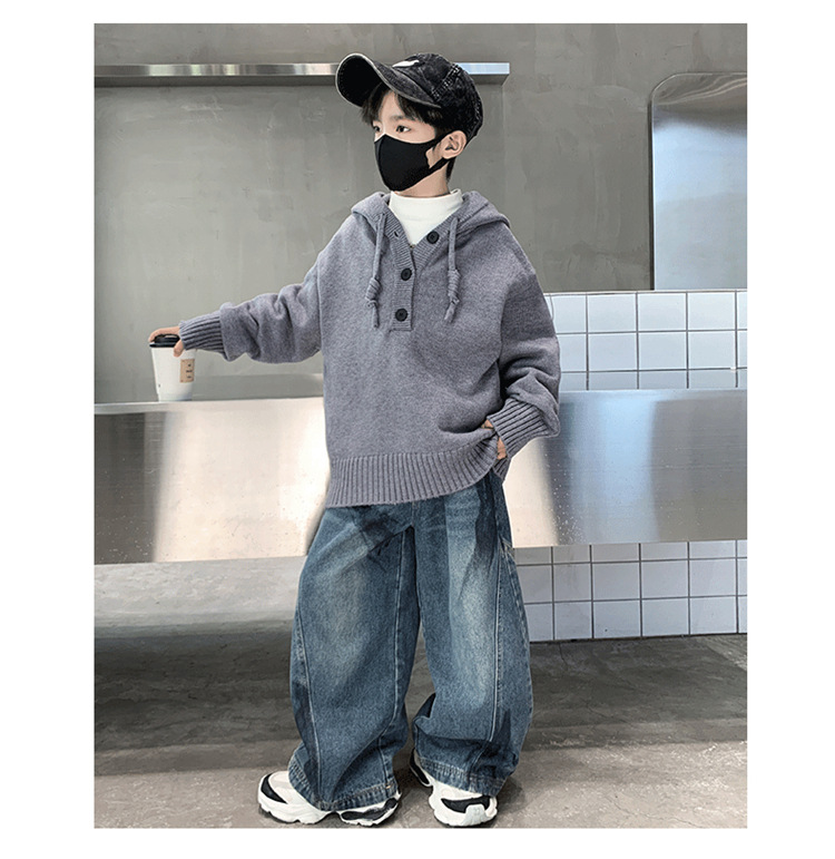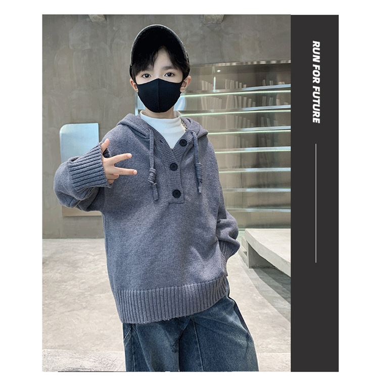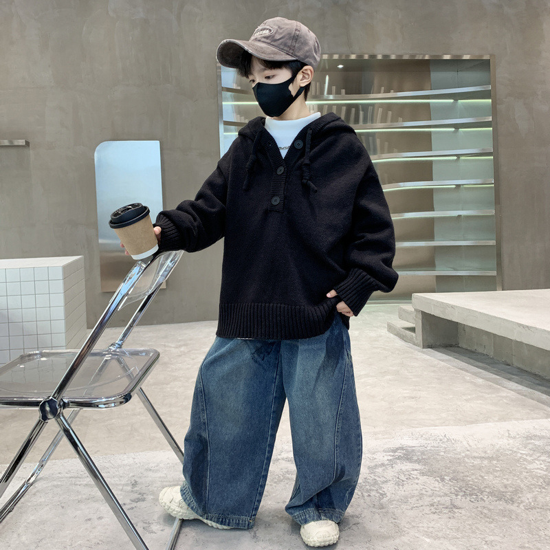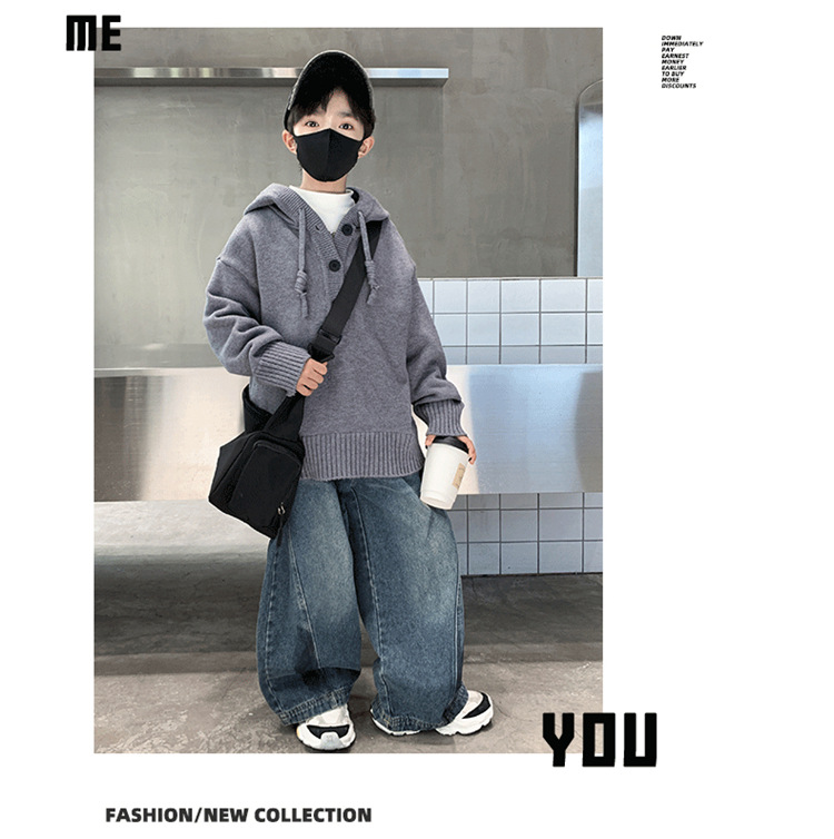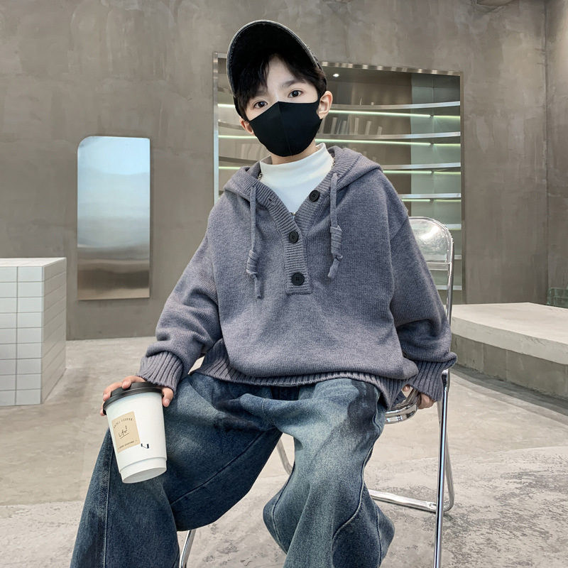 소년의 가을과 겨울 스웨터 카디건 2024 새로운 도착 Zhongda 소년 세련된 니트웨어 외부 착용 어린이 후드 탑 트렌디스토어 가기