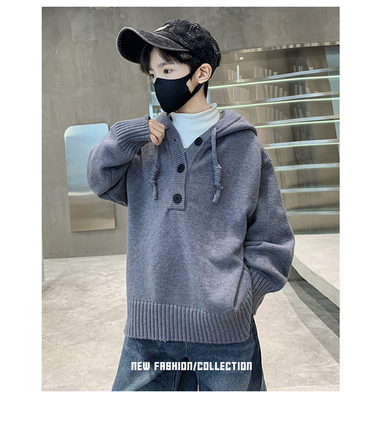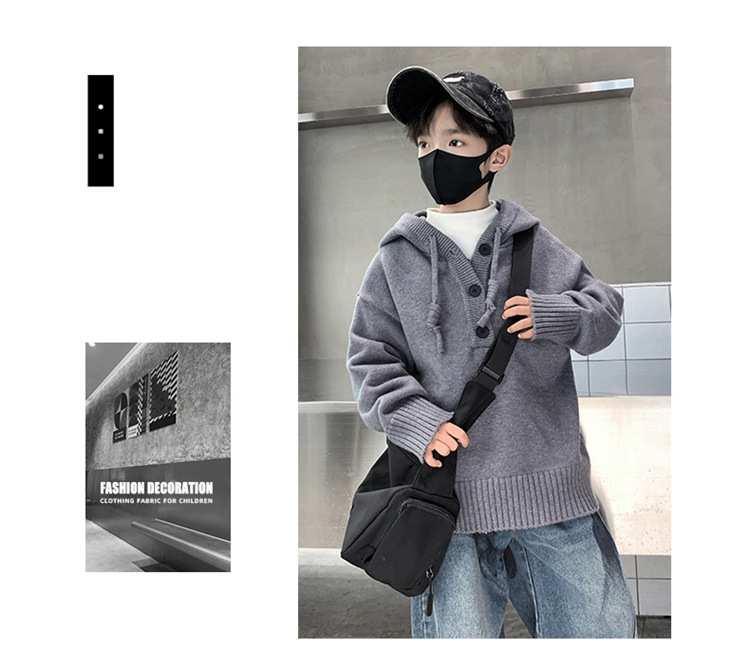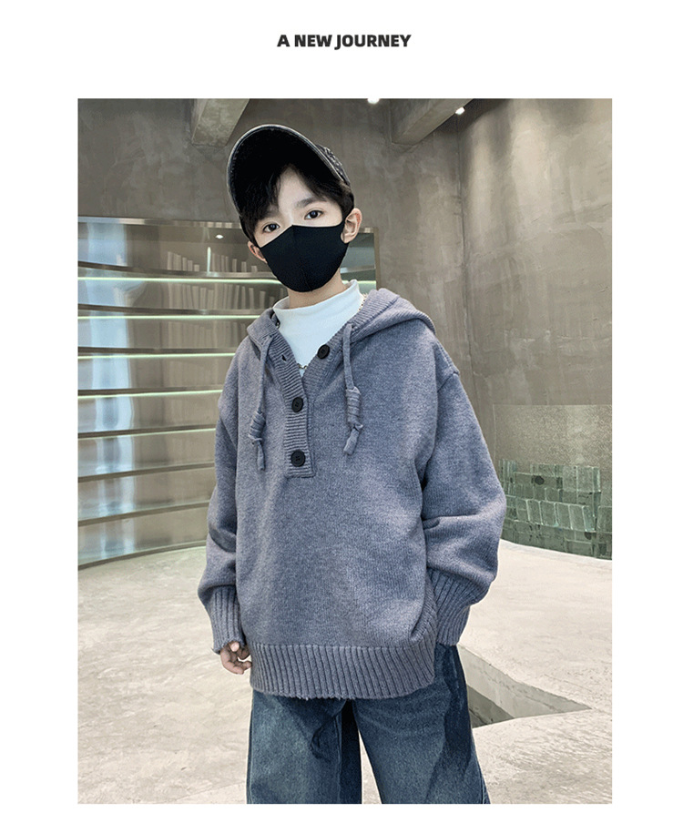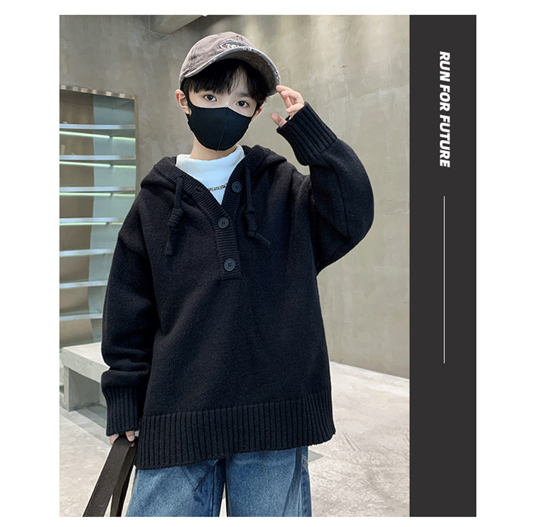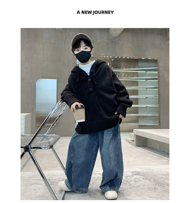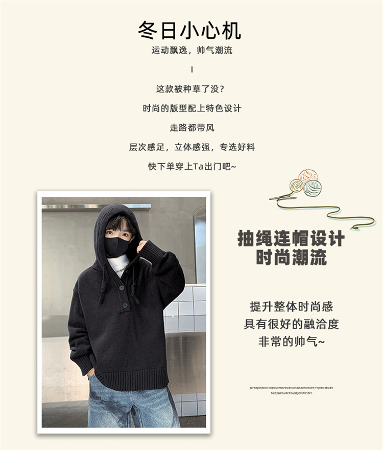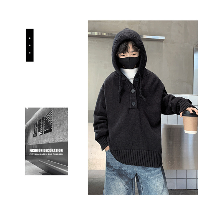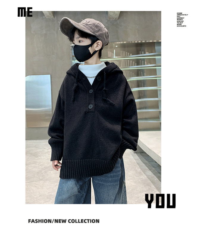 소년의 가을과 겨울 스웨터 카디건 2024 새로운 도착 Zhongda 소년 세련된 니트웨어 외부 착용 어린이 후드 탑 트렌디스토어 가기