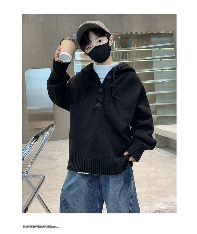 소년의 가을과 겨울 스웨터 카디건 2024 새로운 도착 Zhongda 소년 세련된 니트웨어 외부 착용 어린이 후드 탑 트렌디
