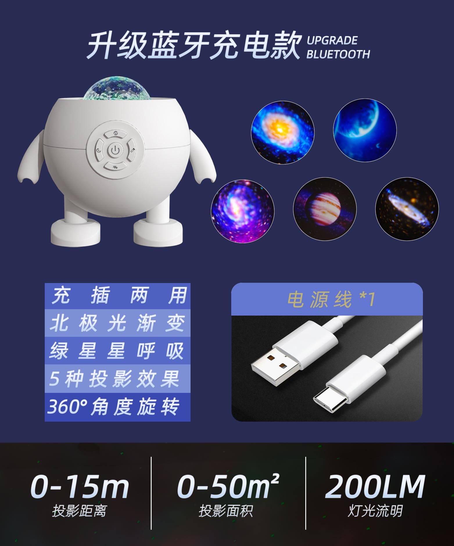 우주 비행사 야간 조명 북극광 별이 빛나는 하늘 프로젝션 램프 블루투스 오디오 분위기 램프 야간 조명 선물 물 패턴 북극광
