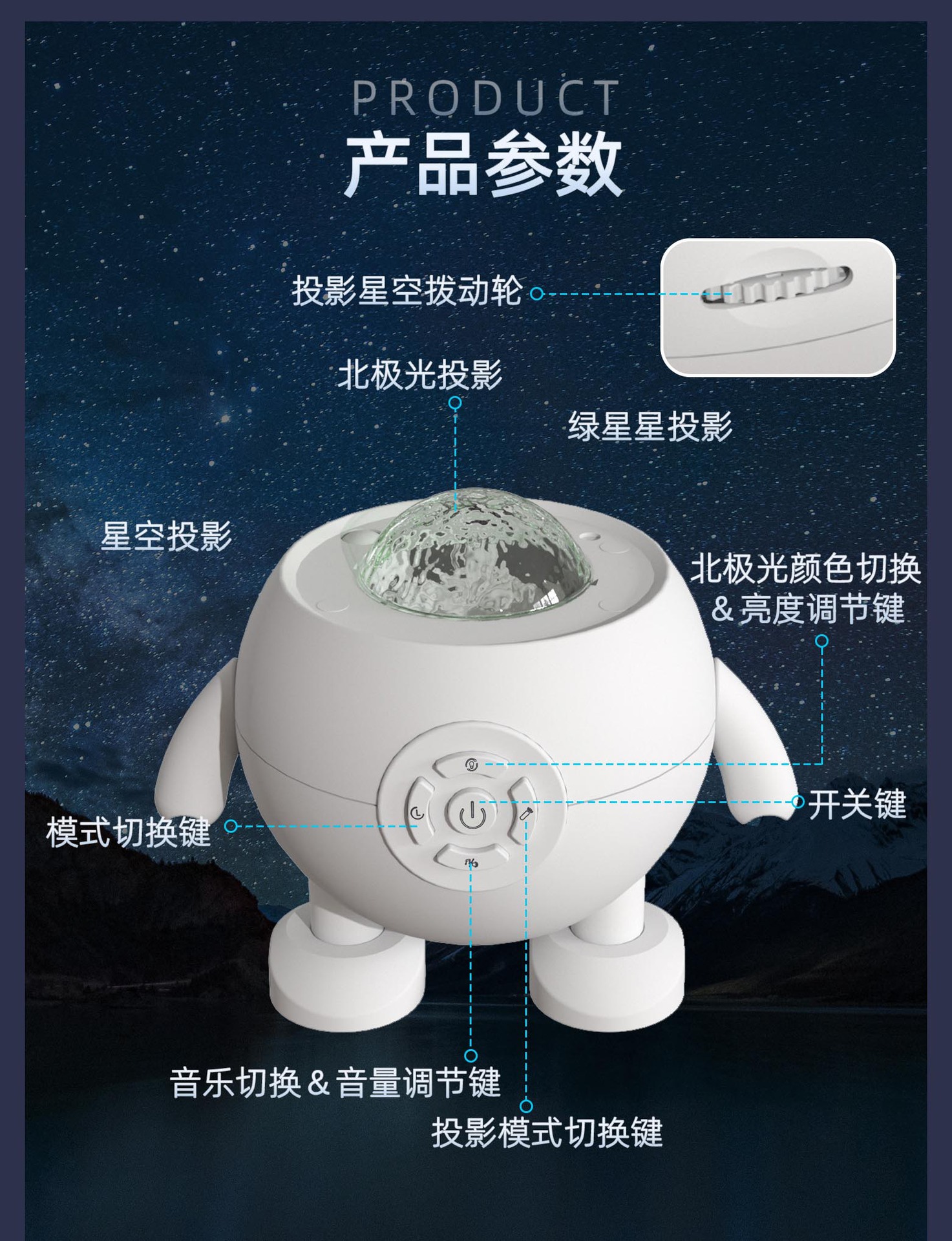 우주 비행사 야간 조명 북극광 별이 빛나는 하늘 프로젝션 램프 블루투스 오디오 분위기 램프 야간 조명 선물 물 패턴 북극광스토어 가기