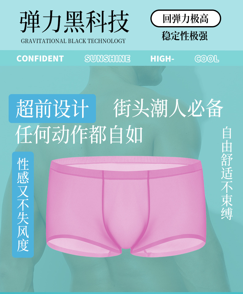 남성용 투명 속옷 초박형 초경량 저허리 섹시 복서 통기성 타이트 50g 나일론 아이스 실크 박스