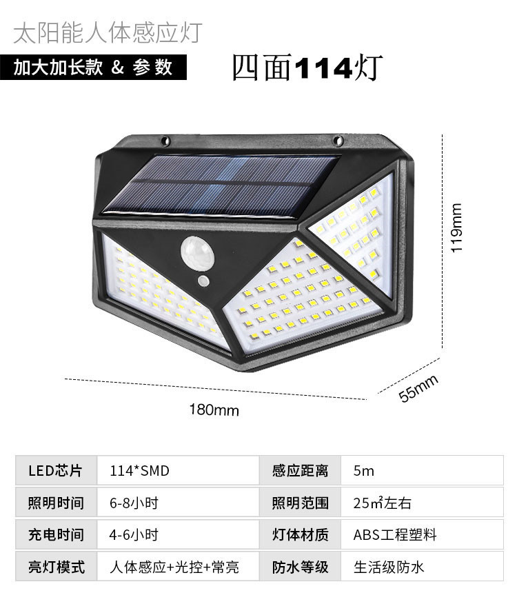 태양 빛 야외 안뜰 유도 거리 빛 LED 충전식 조명 홈 정원 방수 태양 벽 빛