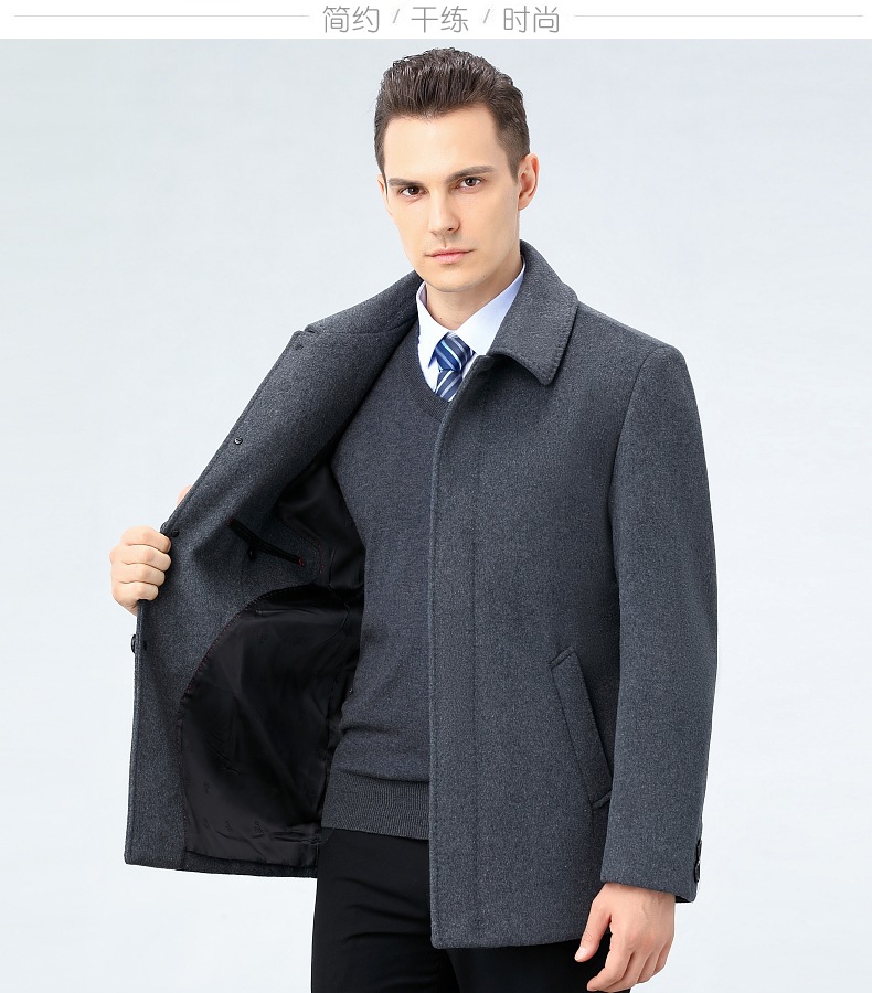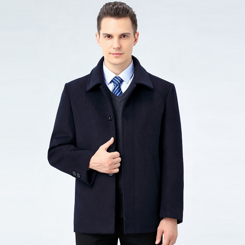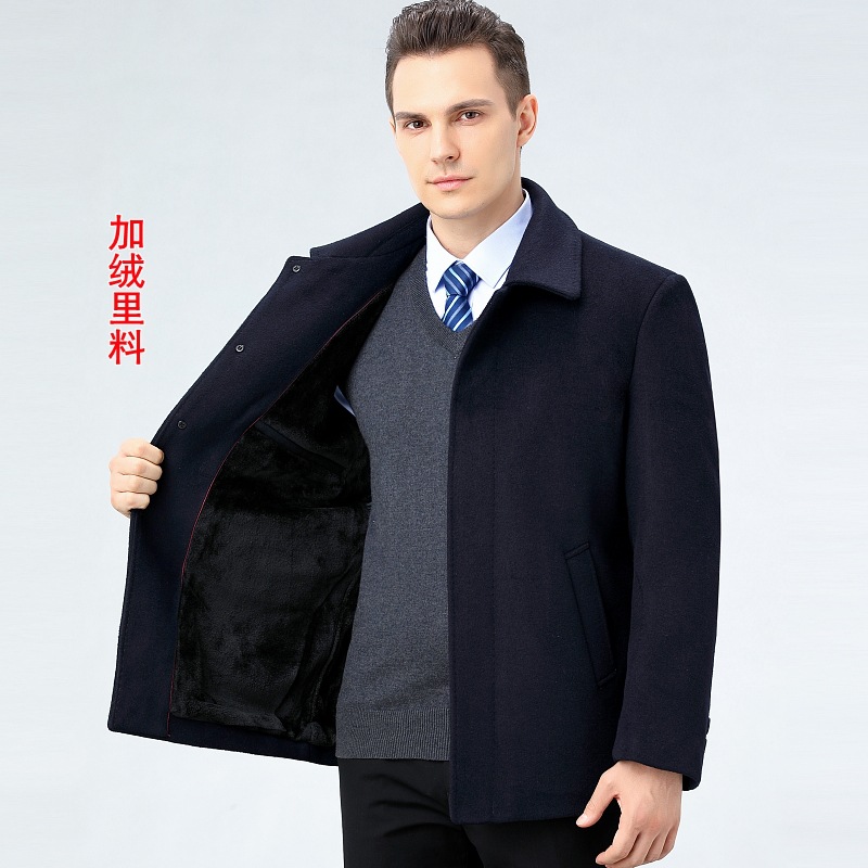 카운터 가을과 겨울 중년 기모 울 쇼트 코트 비즈니스 캐주얼 아빠 남자 따뜻한 플러스 사이즈 코트스토어 가기