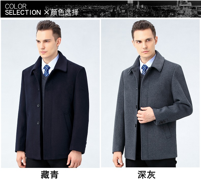 카운터 가을과 겨울 중년 기모 울 쇼트 코트 비즈니스 캐주얼 아빠 남자 따뜻한 플러스 사이즈 코트