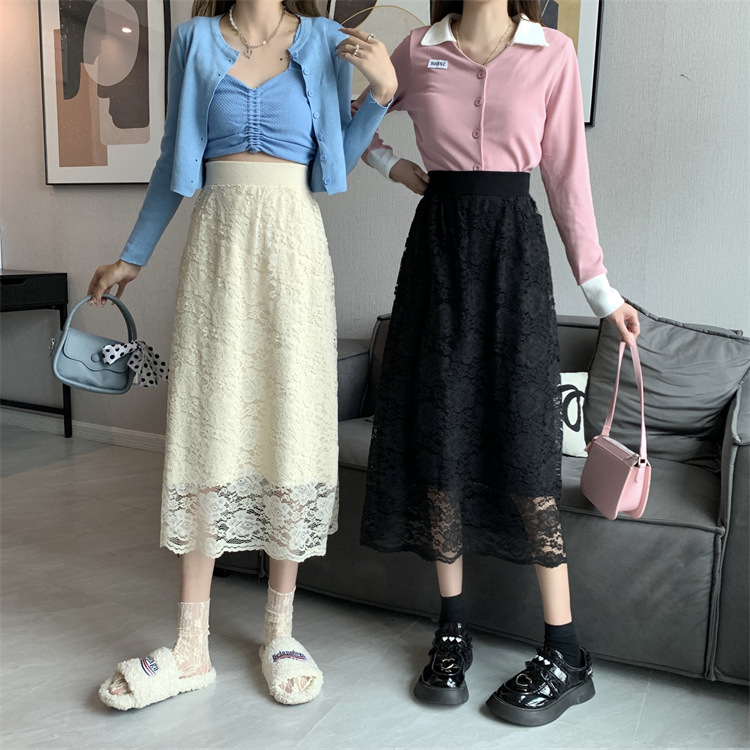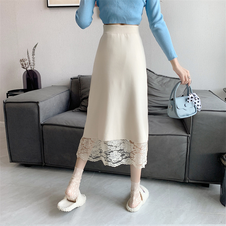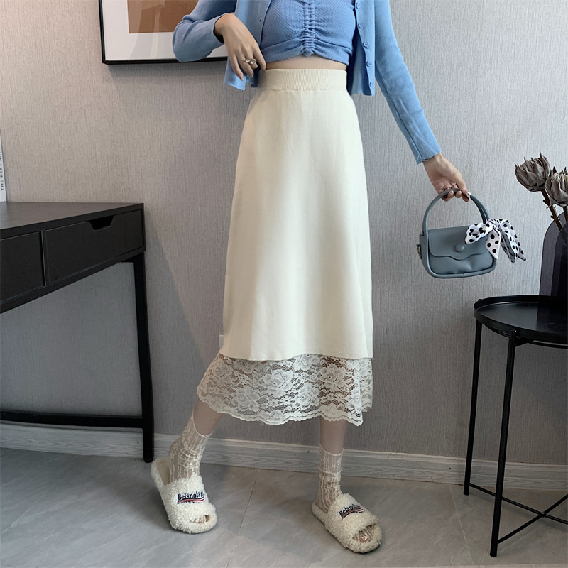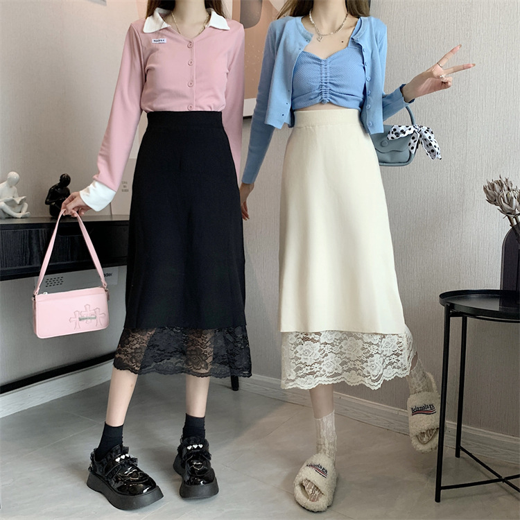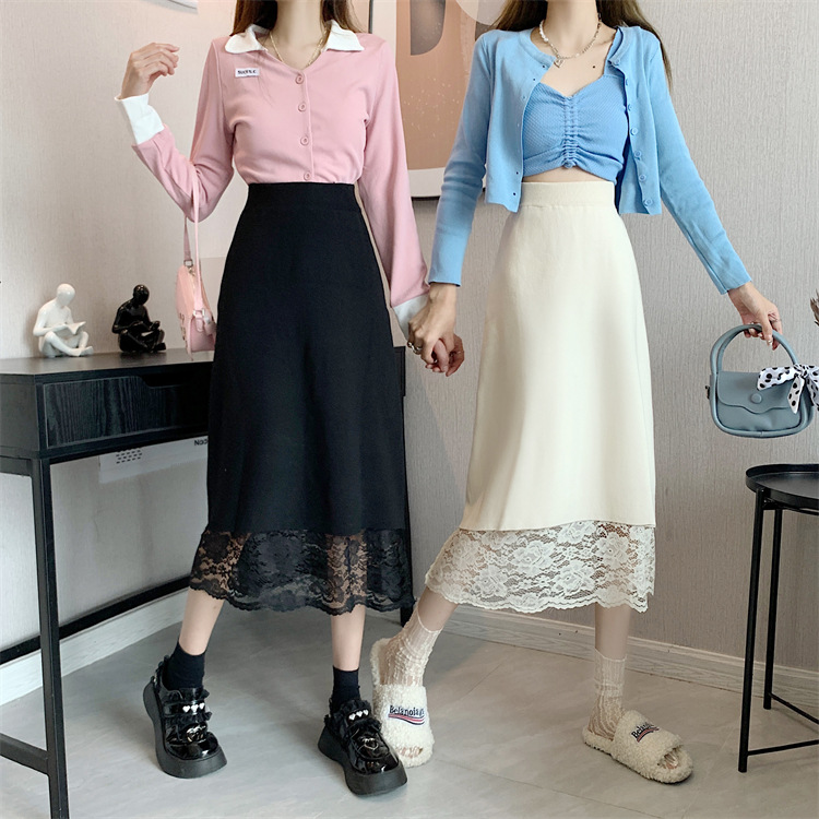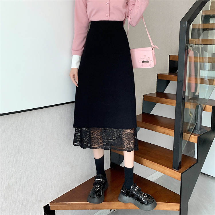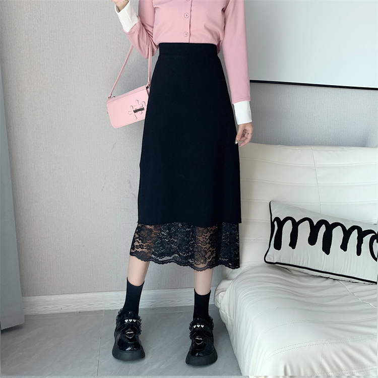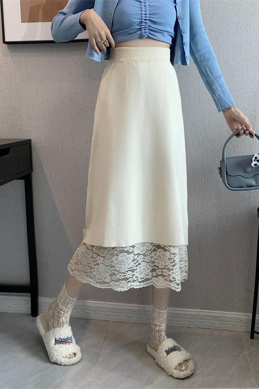 2024 가을과 겨울 니트 스커트 메시 A 라인 스커트 9384 원피스 리얼 샷 양면 웨어러블 레이스 중간 길이스토어 가기
