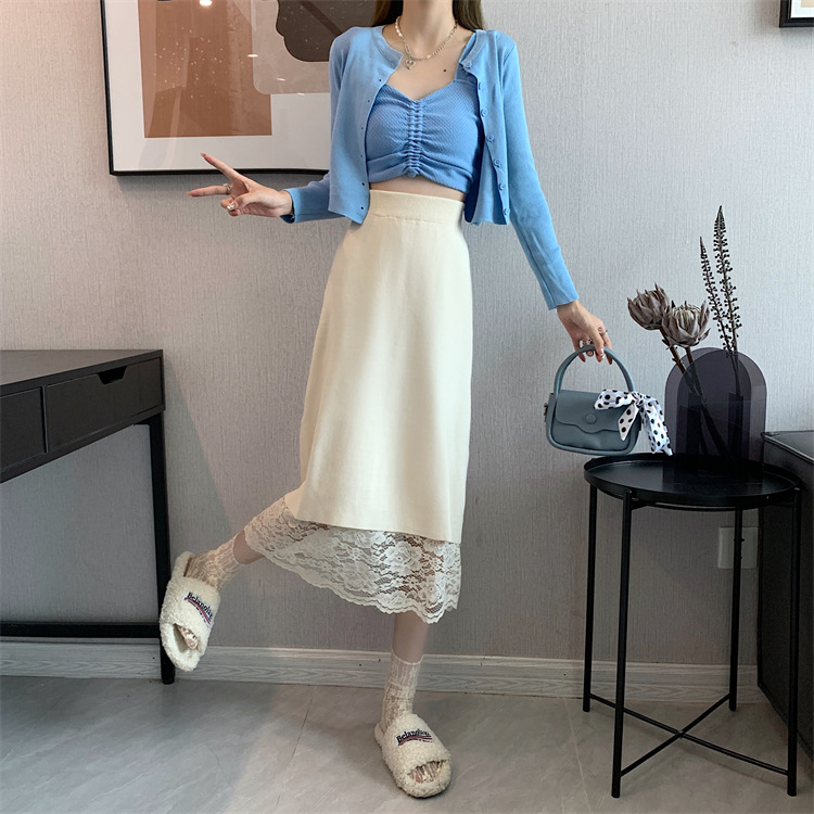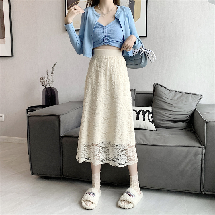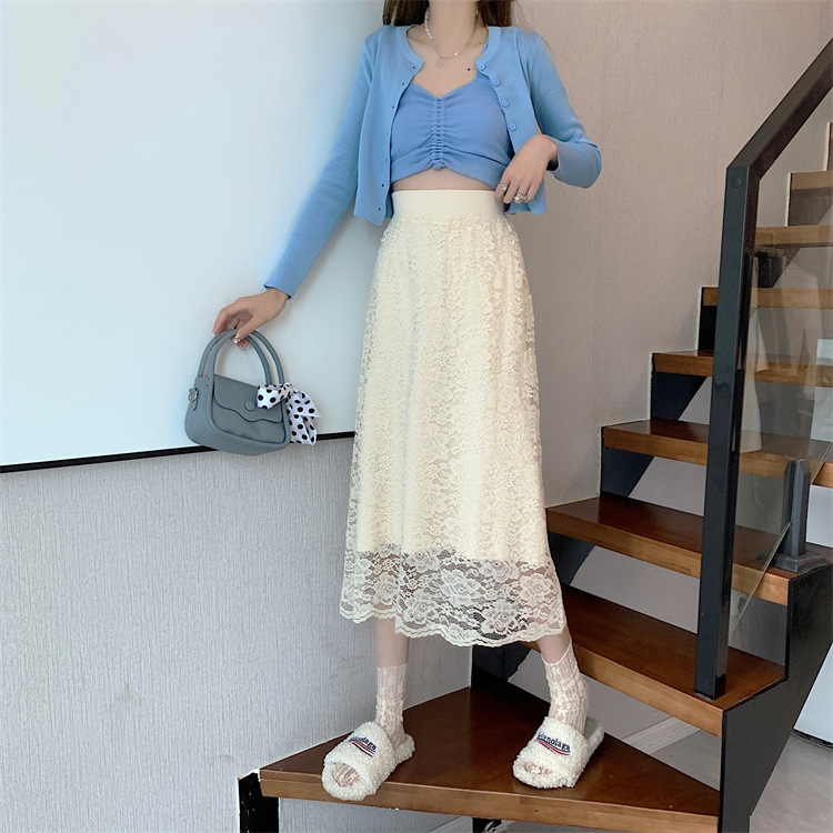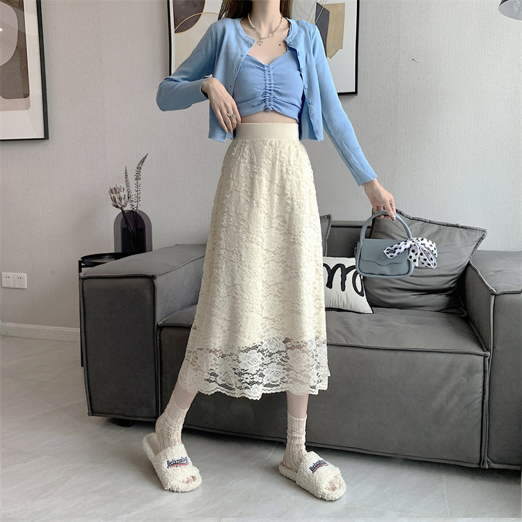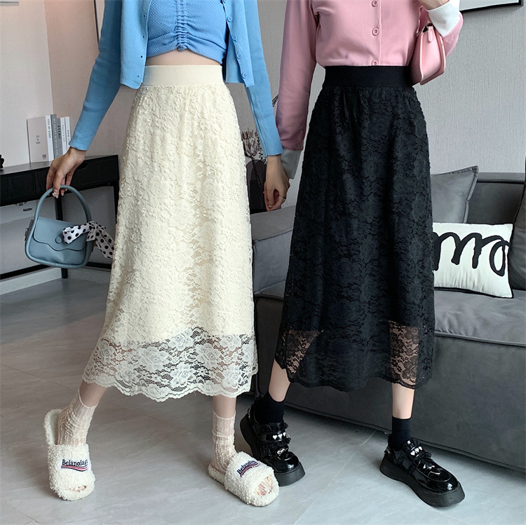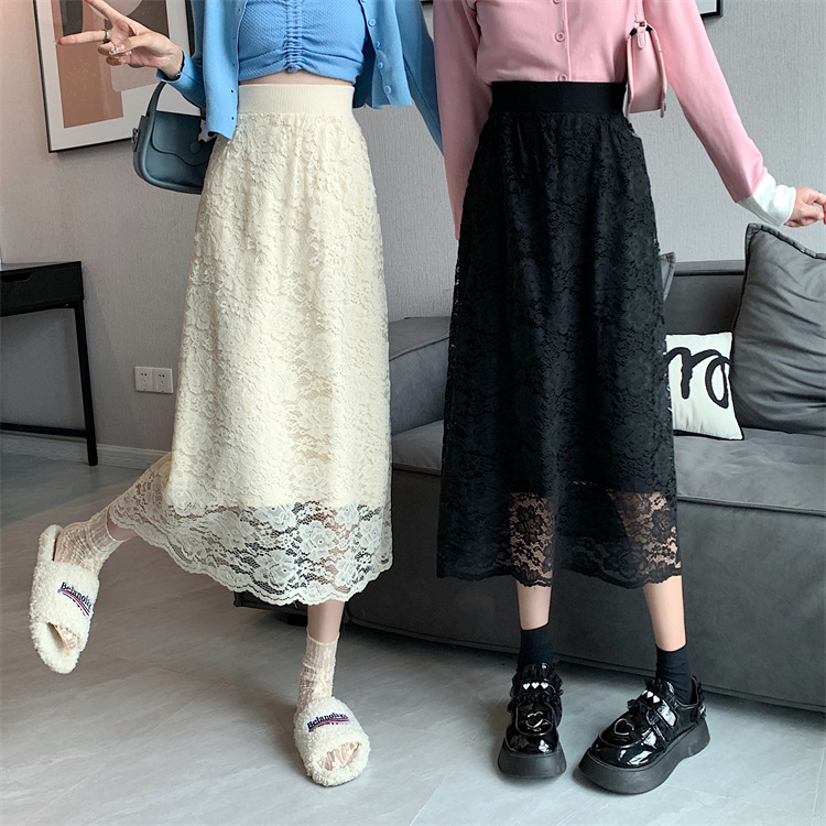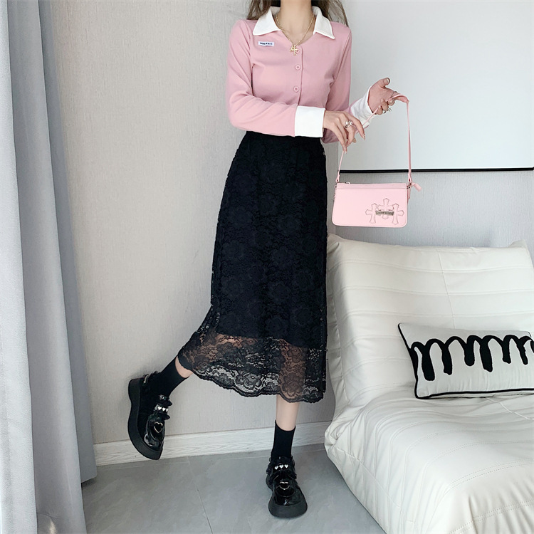 2024 가을과 겨울 니트 스커트 메시 A 라인 스커트 9384 원피스 리얼 샷 양면 웨어러블 레이스 중간 길이스토어 가기