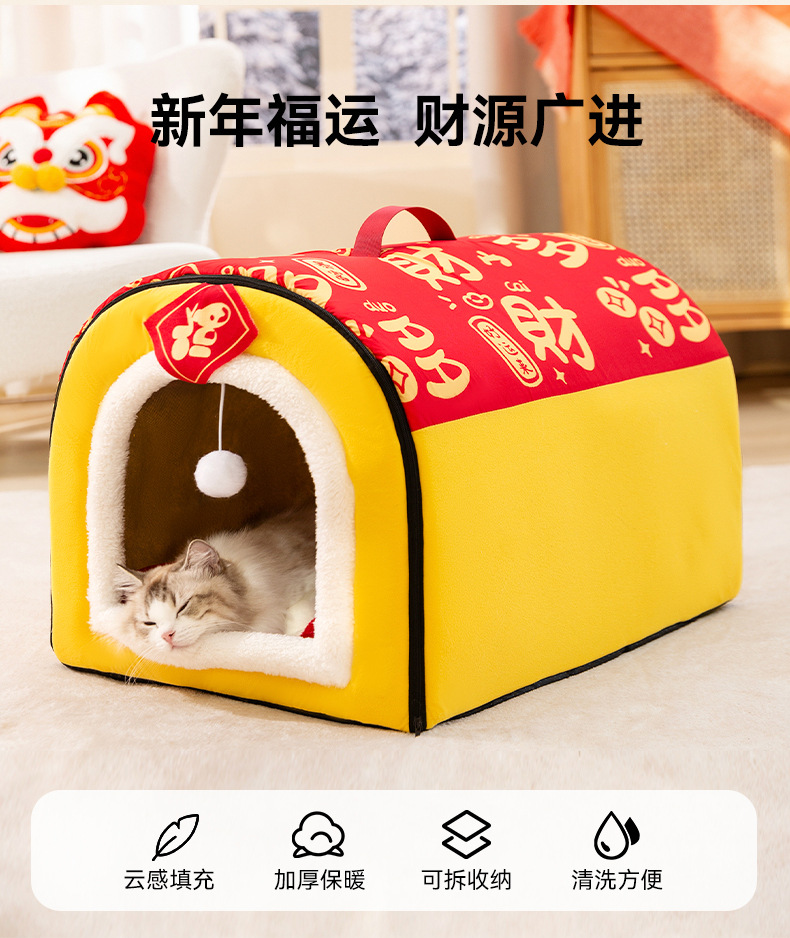 새해 첫날 고양이 둥지 조이 아크 하우스 둥지 폐쇄 된 따뜻한 사육장 가을과 겨울에 크고 작은 개 애완 동물 둥지 패드