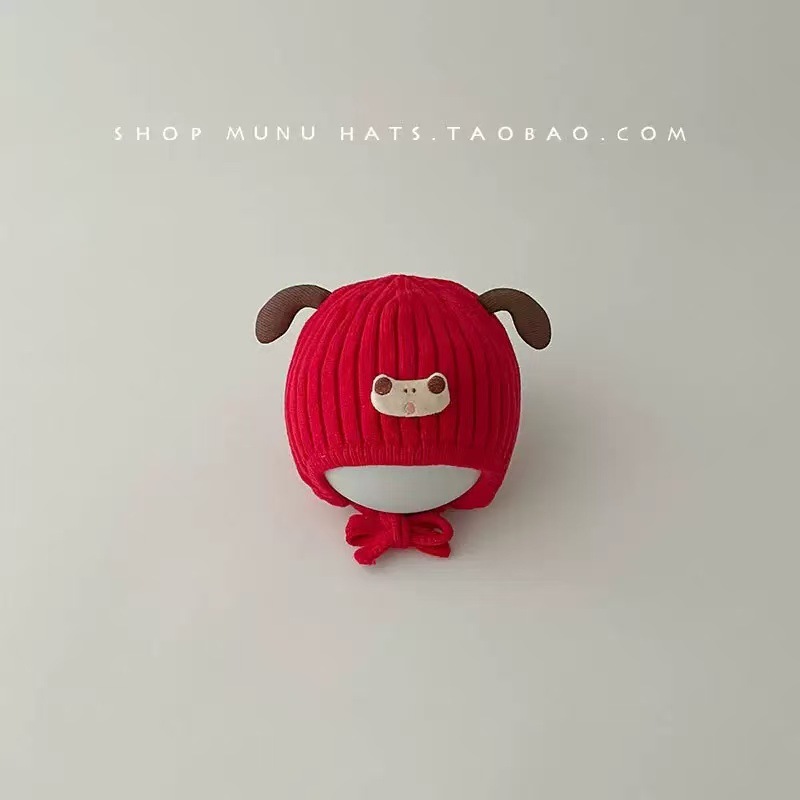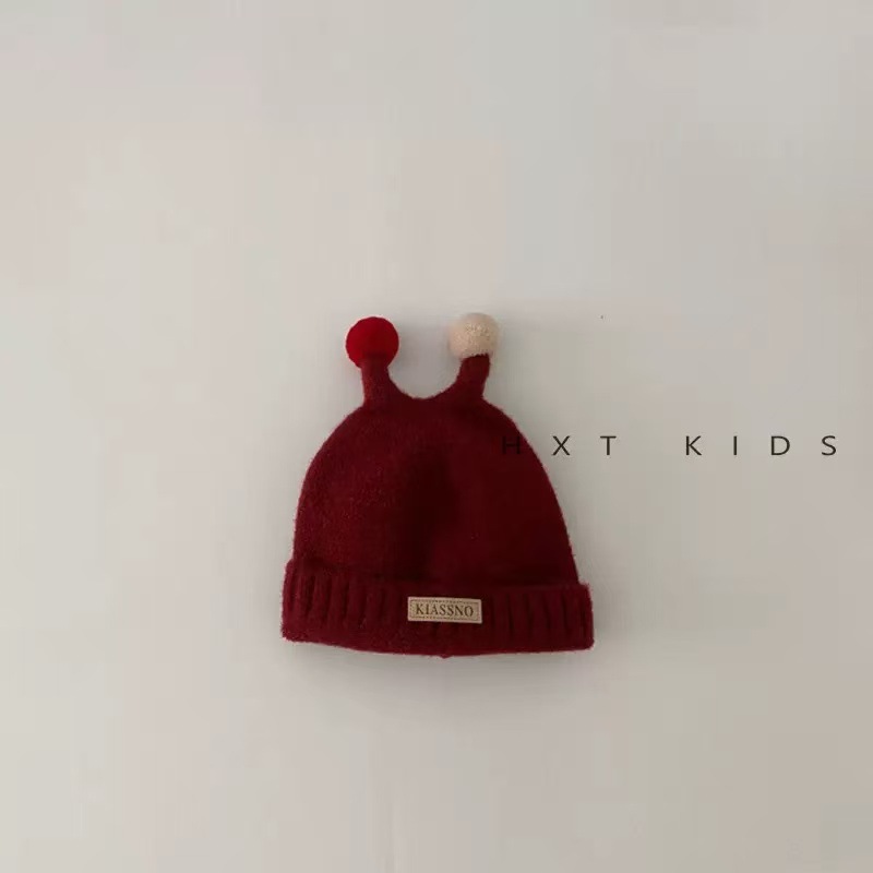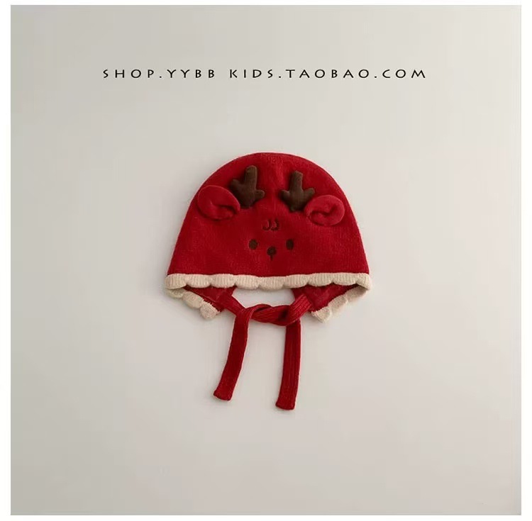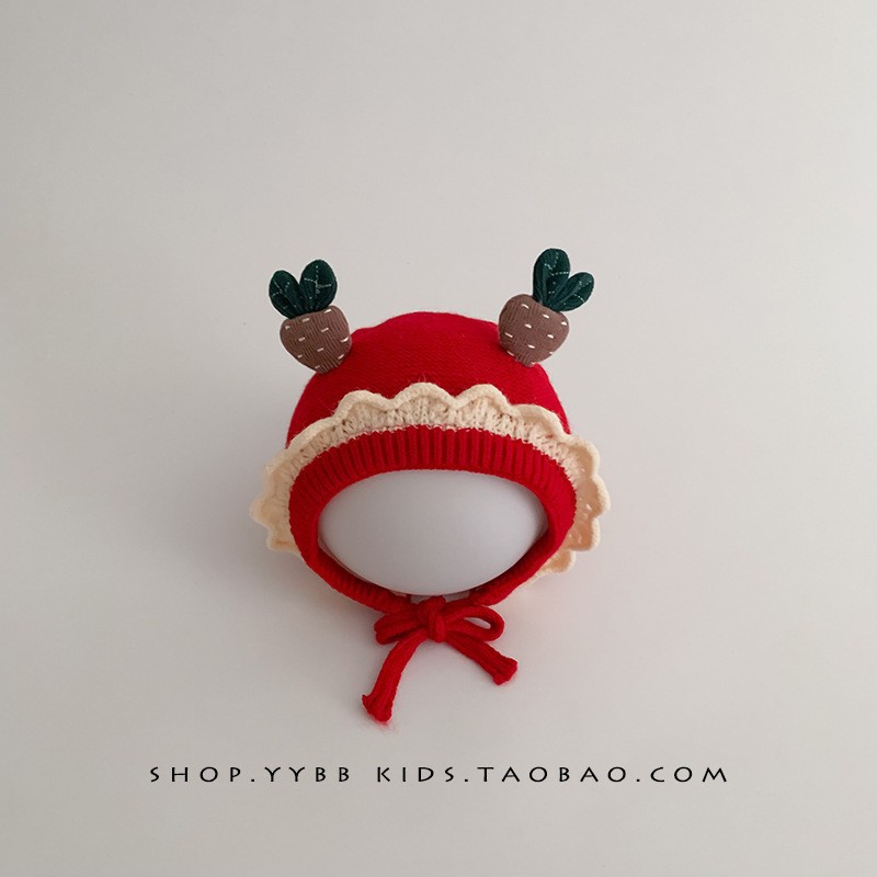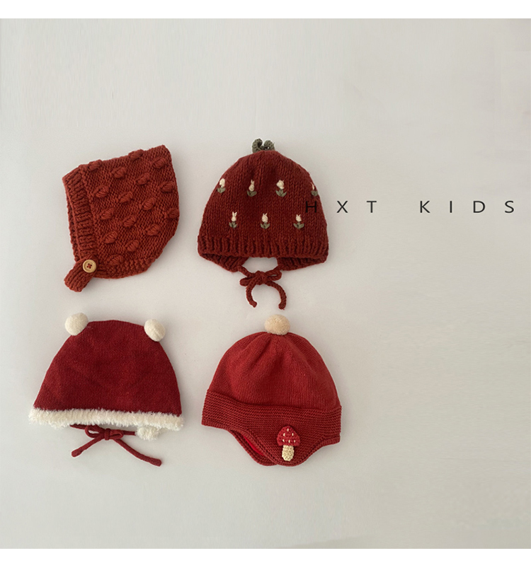 아기 양모 모자 가을과 겨울 서양 스타일 레트로 붉은 새해 축제 니트 모자 신생아 따뜻한 모자 겨울스토어 가기