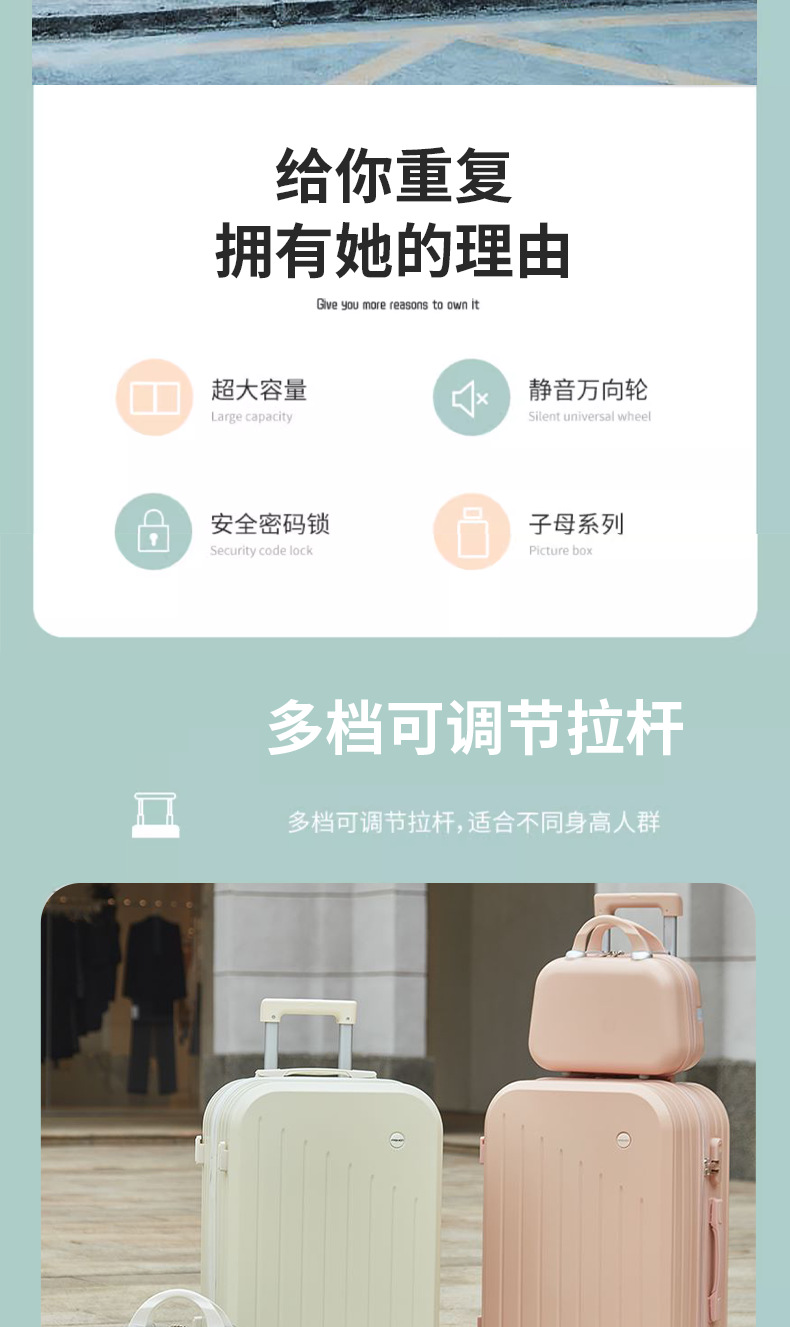 남성과 여성 학생을위한 멀티 기어 조정 가능한 풀로드 수하물 상자 작은 신선한 여행 상자 유니버설 휠 대용량 암호 상자