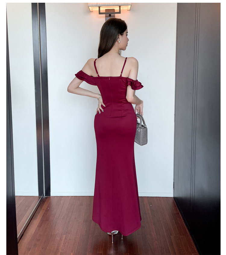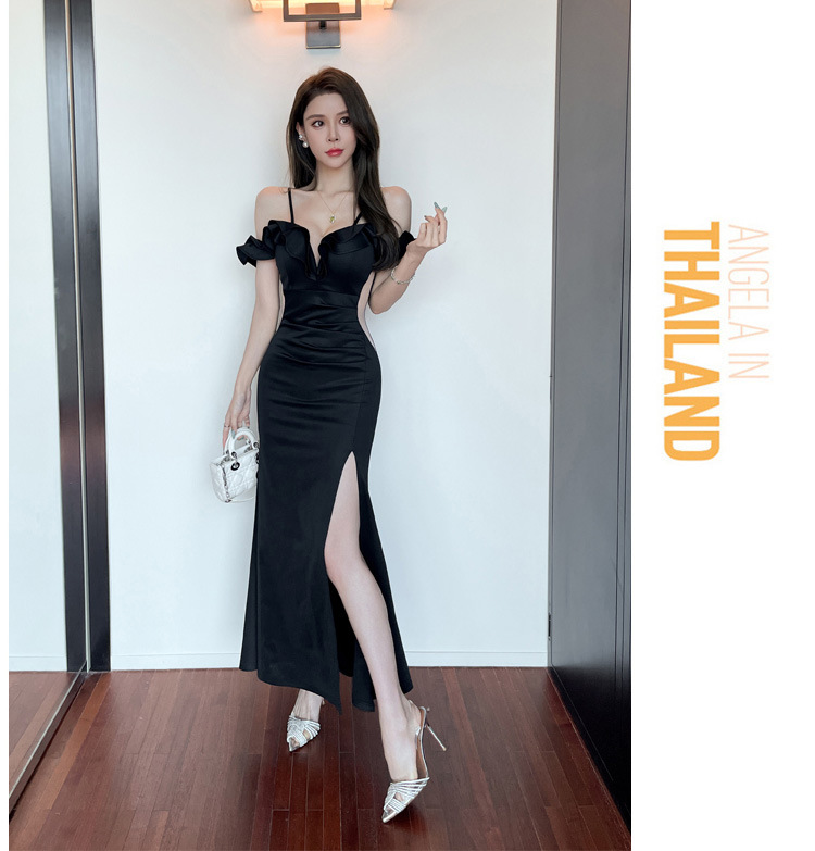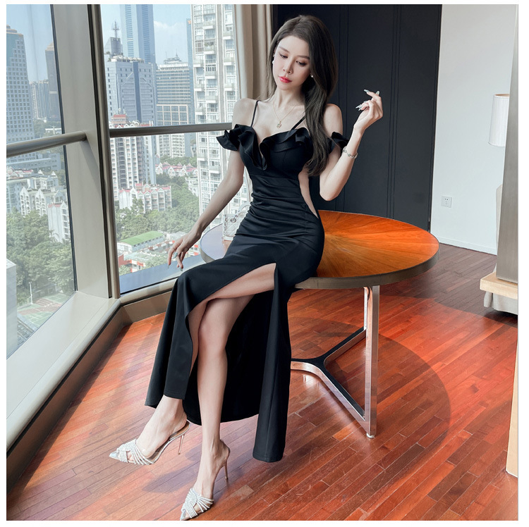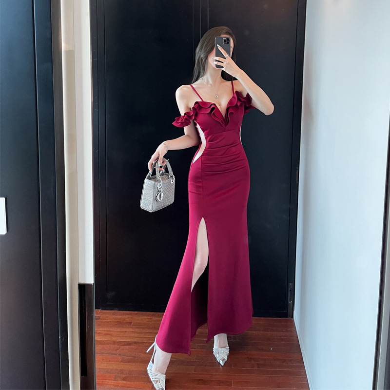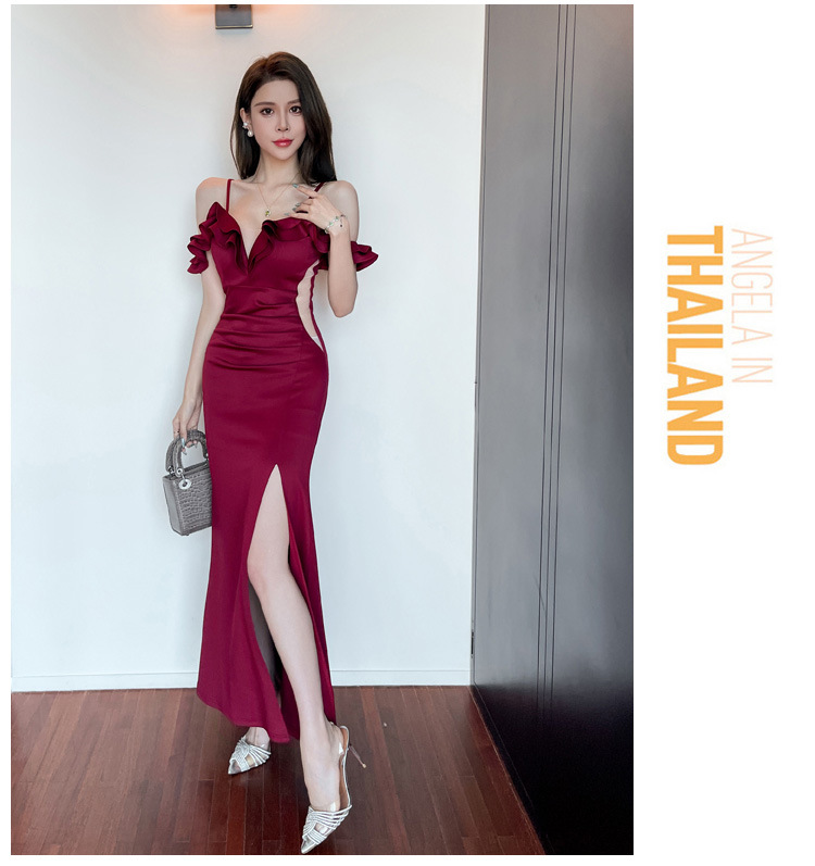 L096 국경 간 대외 무역 여성 의류 도매 동남아시아 섹시한 로우 컷 원 숄더 튜브 탑 힙 스플릿 원피스 여성스토어 가기