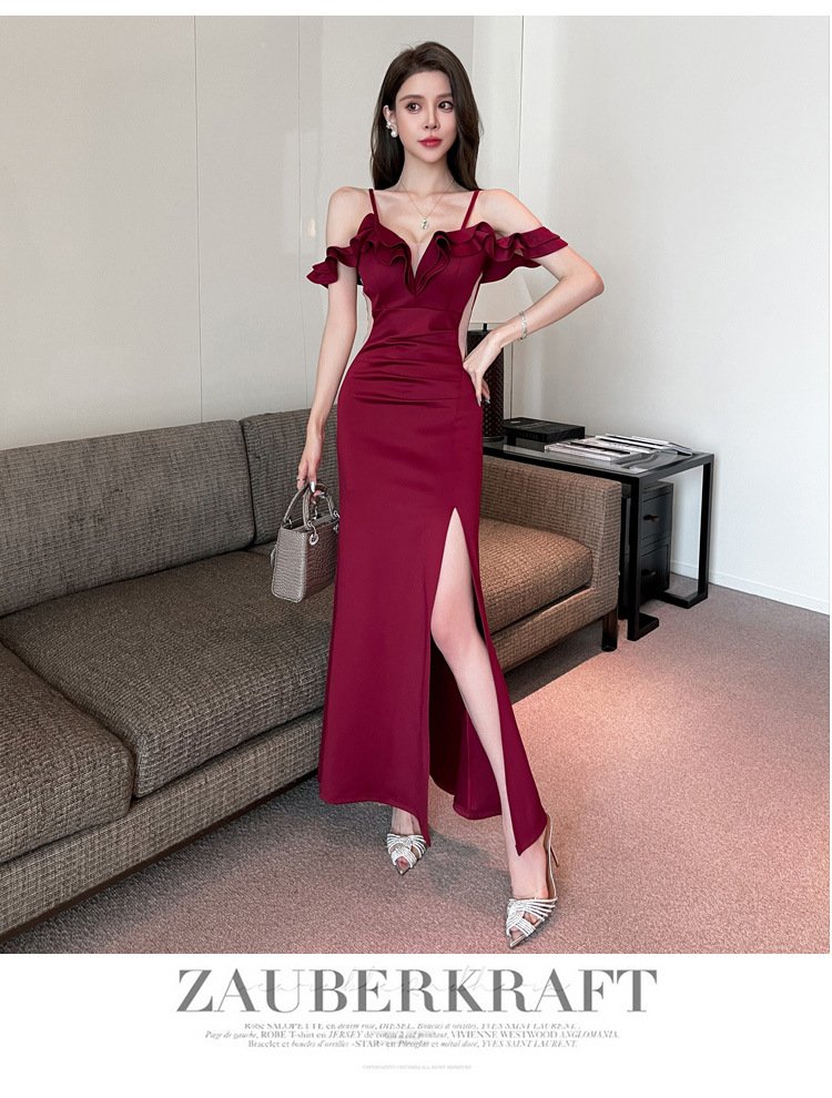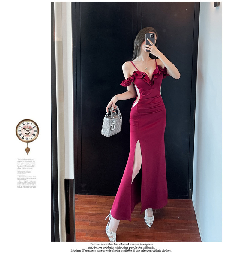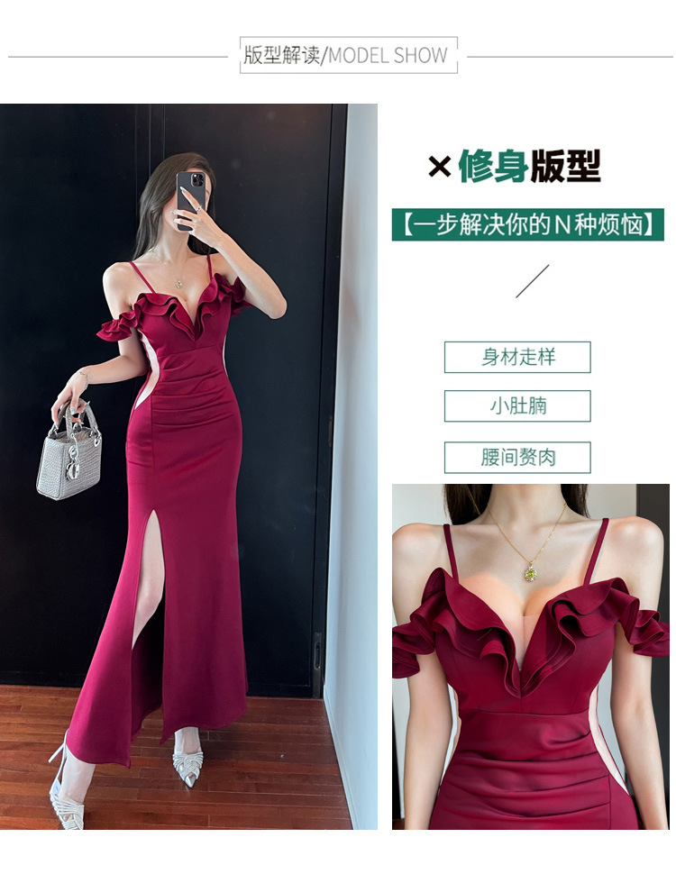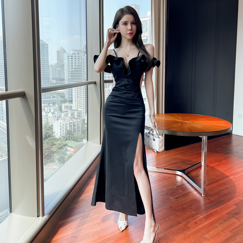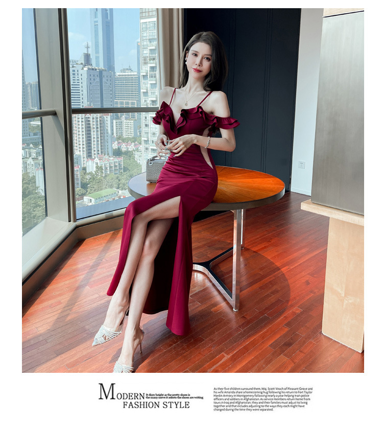 L096 국경 간 대외 무역 여성 의류 도매 동남아시아 섹시한 로우 컷 원 숄더 튜브 탑 힙 스플릿 원피스 여성스토어 가기