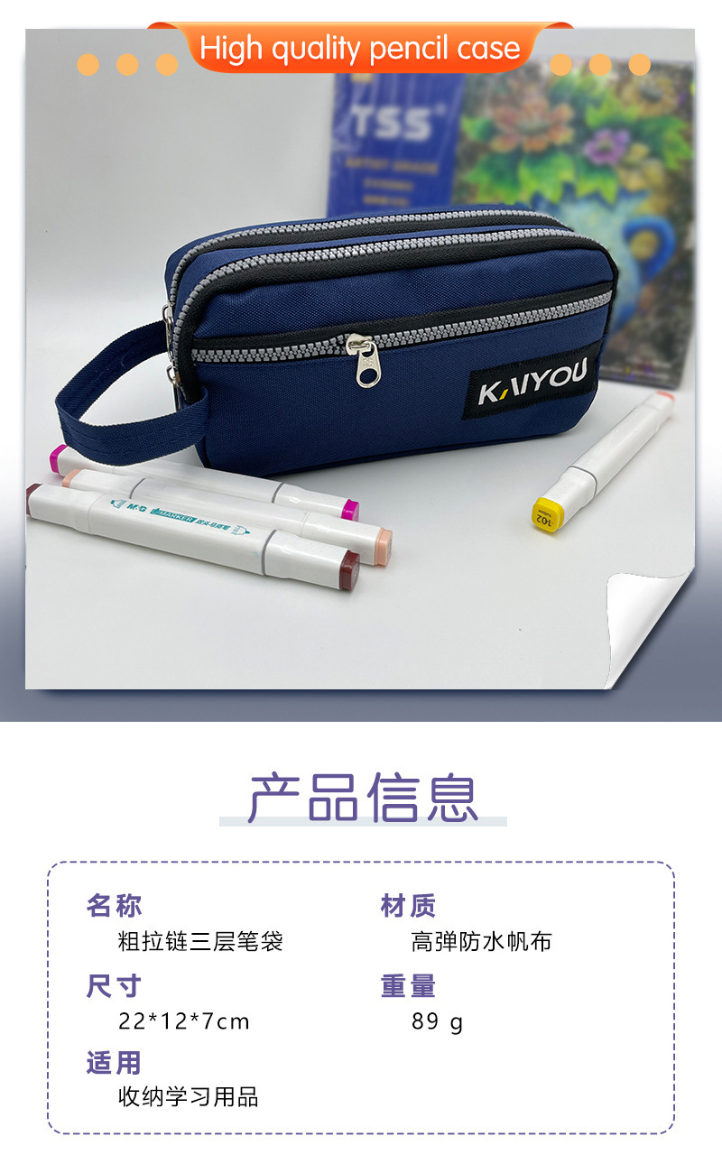 다층 대용량 연필 케이스 학생 연필 케이스 간단한 단색 연필 케이스 두꺼운 지퍼