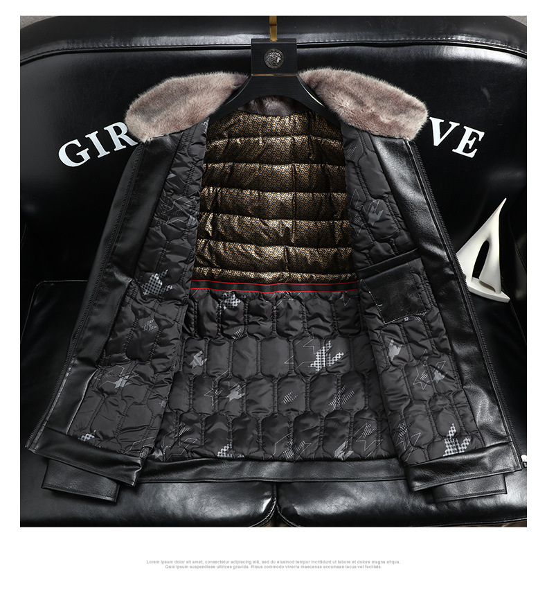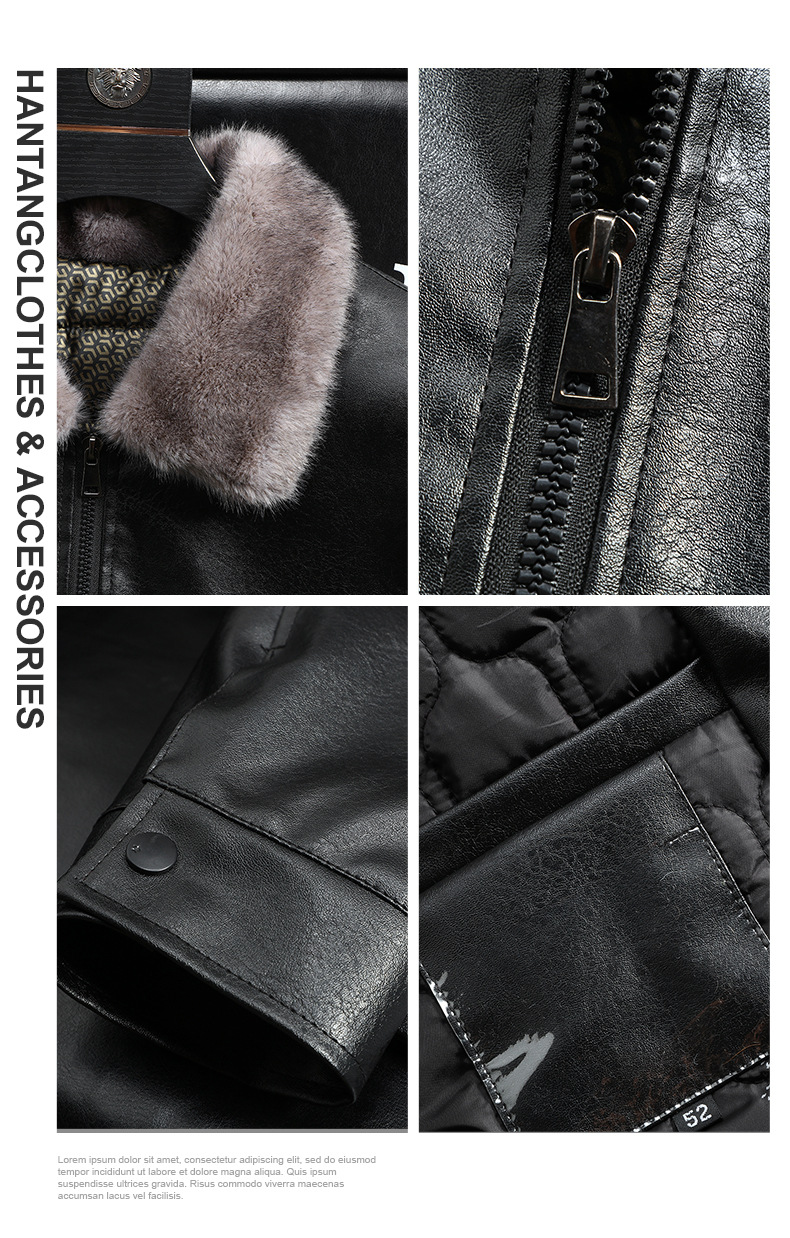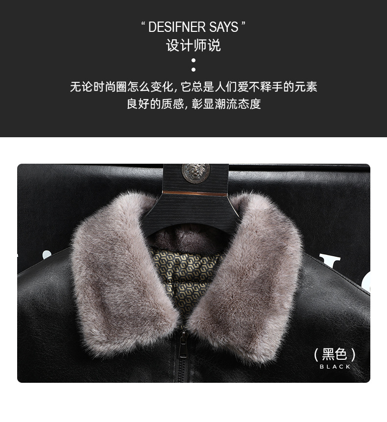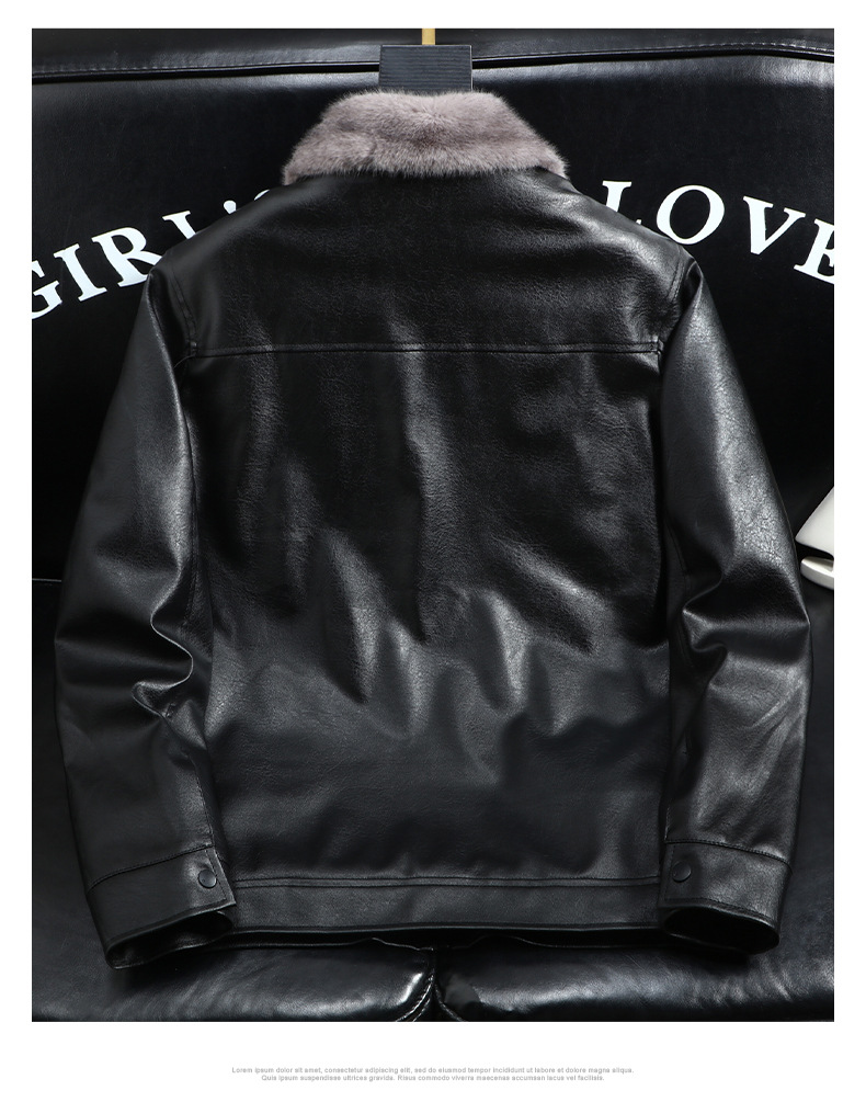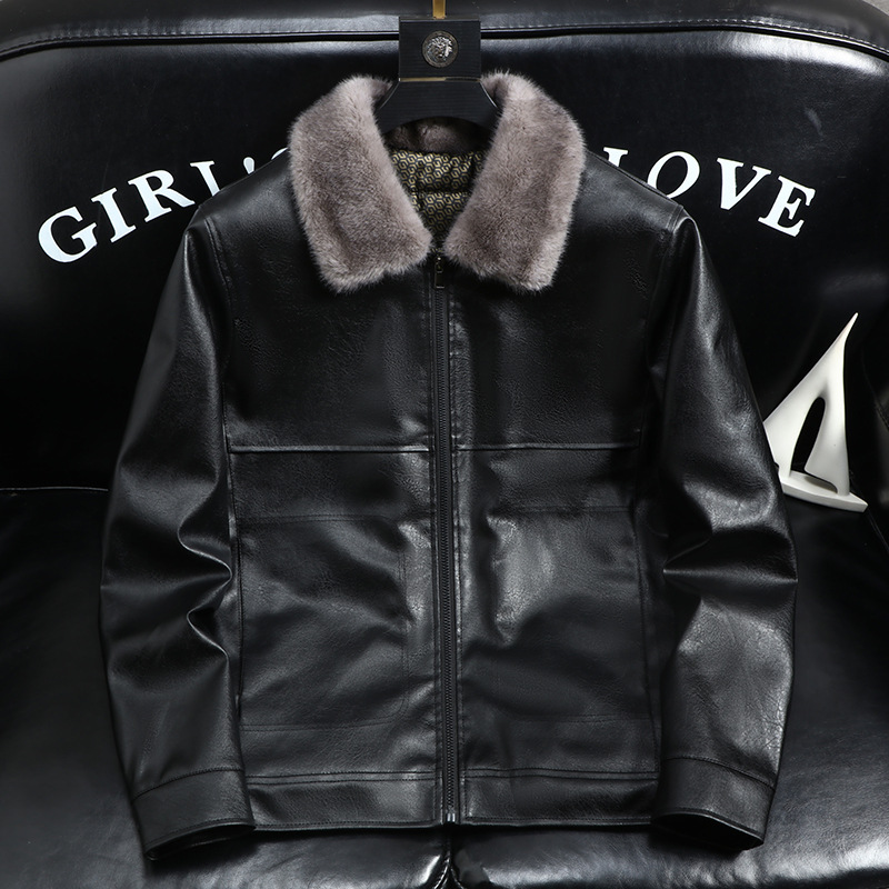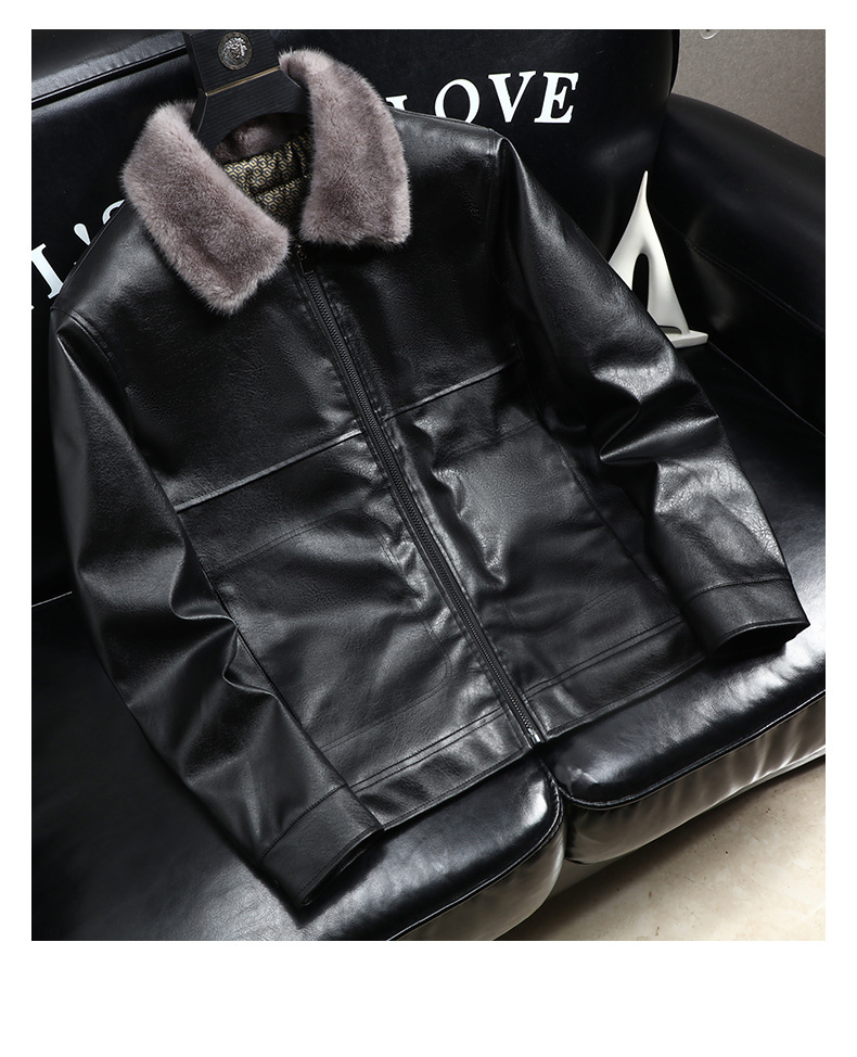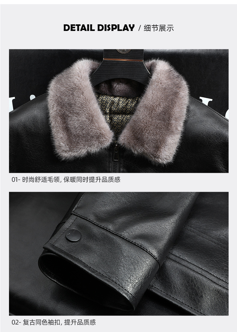 2025년 신형 모피 칼라 지퍼 남성 가죽 재킷 블랙 골드 그래핀 낙타털 안감 중년 및 노년층용 보온 코트스토어 가기