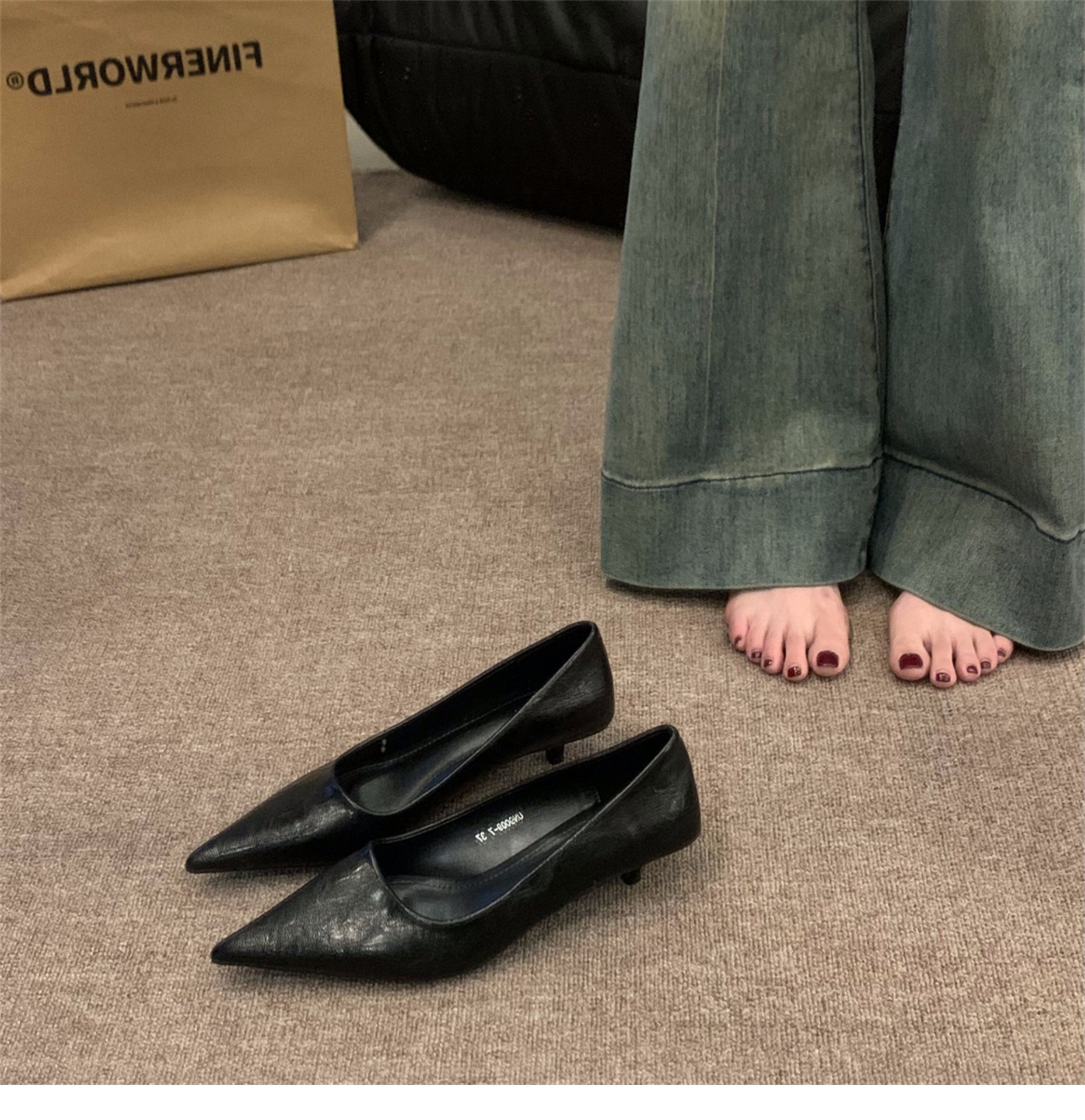 프랑스 스타일 우아한 숙녀 블랙 싱글 신발 여성 신발 2024 새로운 봄 가을과 겨울 뾰족한 스틸레토 힐 레드 하이힐스토어 가기