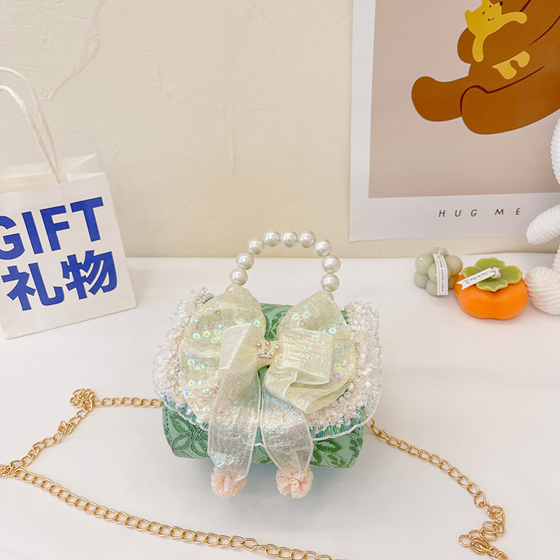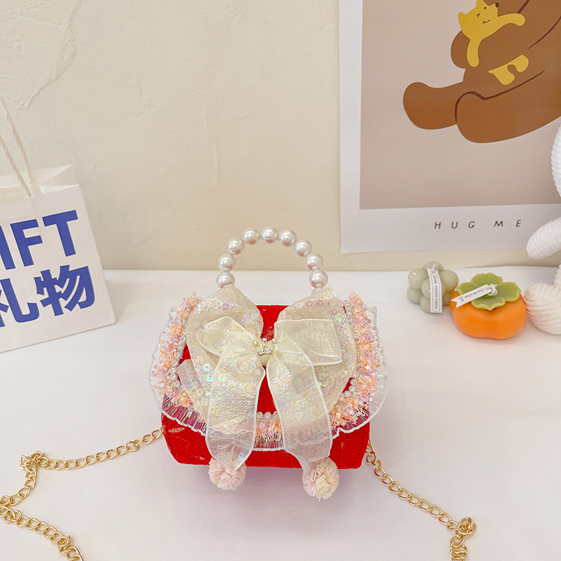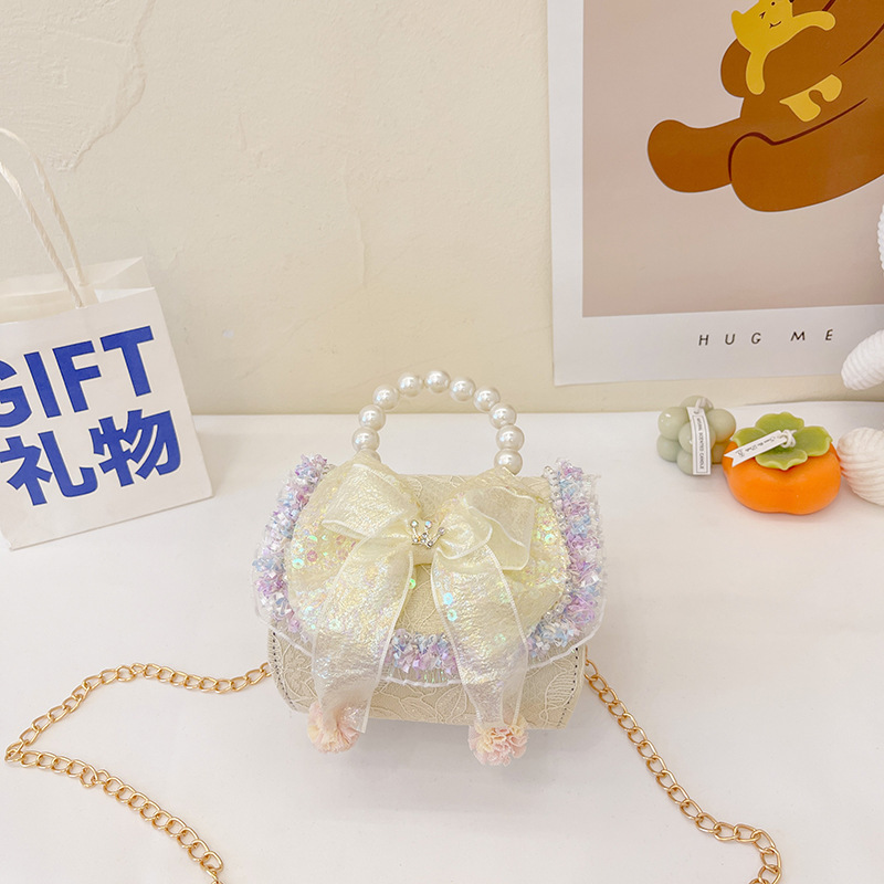 珍珠儿童手提包2022新个性小孩子蝴蝶结斜跨包时尚公主棉麻零钱包