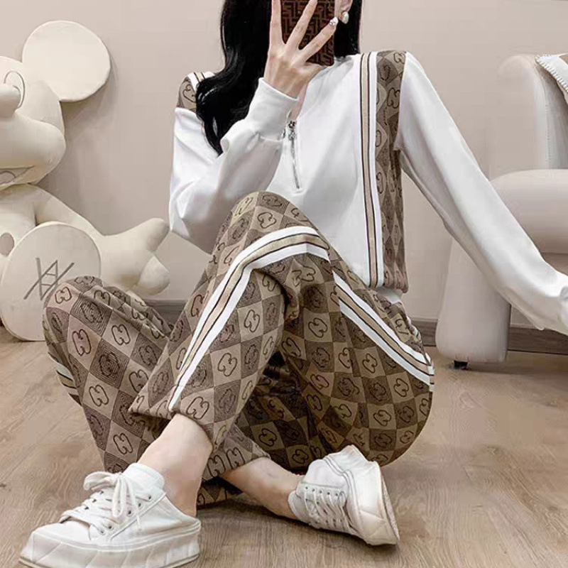 스포츠 세트 여성의 봄과 가을 2023 새로운 레저 패션 기질 시대-감소 유럽 상품 튀김 거리 니트 2 피스 세트 조수스토어 가기