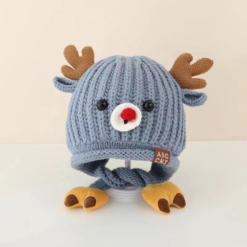 소년 소녀를위한 아기 모자 겨울 귀여운 새끼 기모 귀 보호 모자 가을과 겨울 두꺼운 따뜻한 울 모자