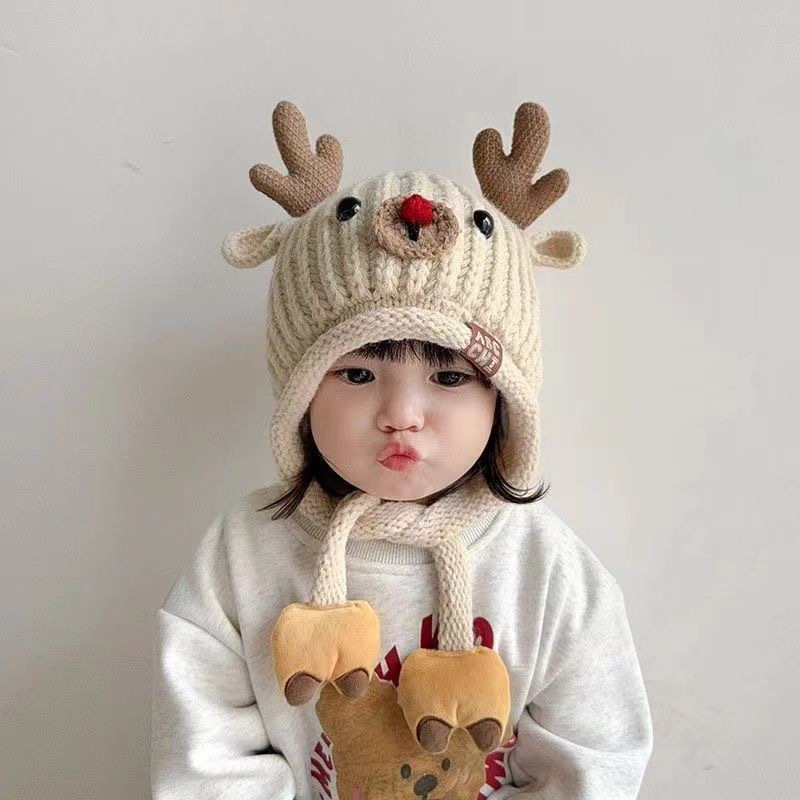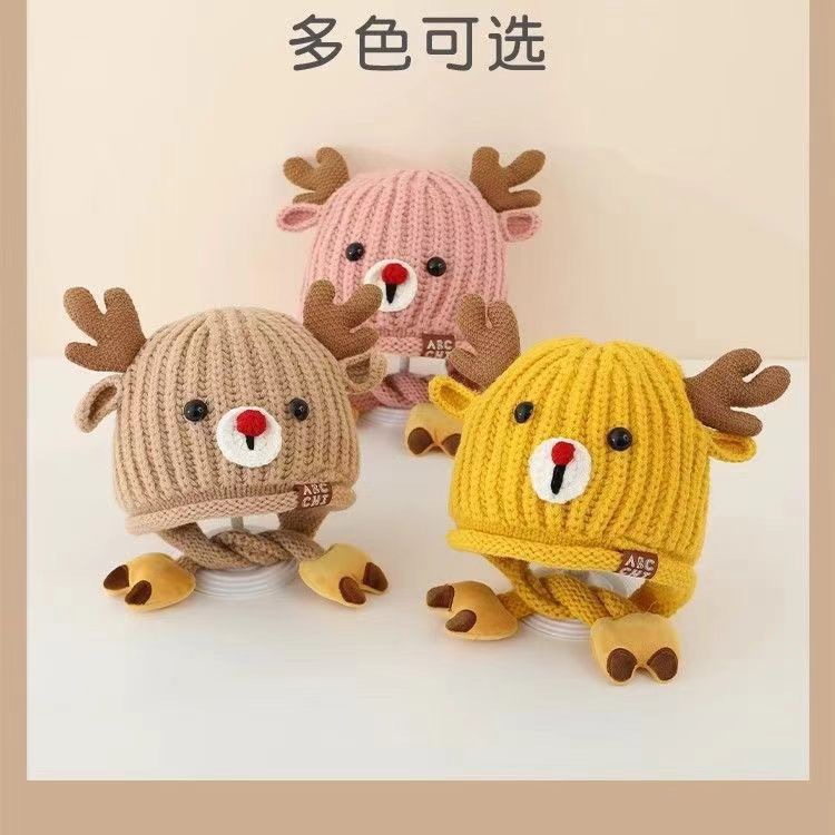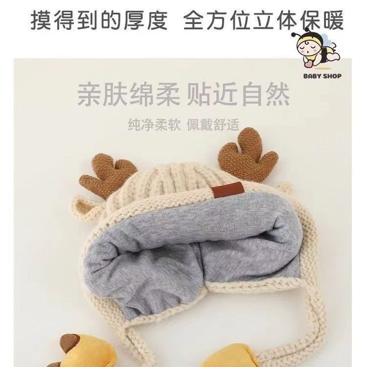소년 소녀를위한 아기 모자 겨울 귀여운 새끼 기모 귀 보호 모자 가을과 겨울 두꺼운 따뜻한 울 모자스토어 가기