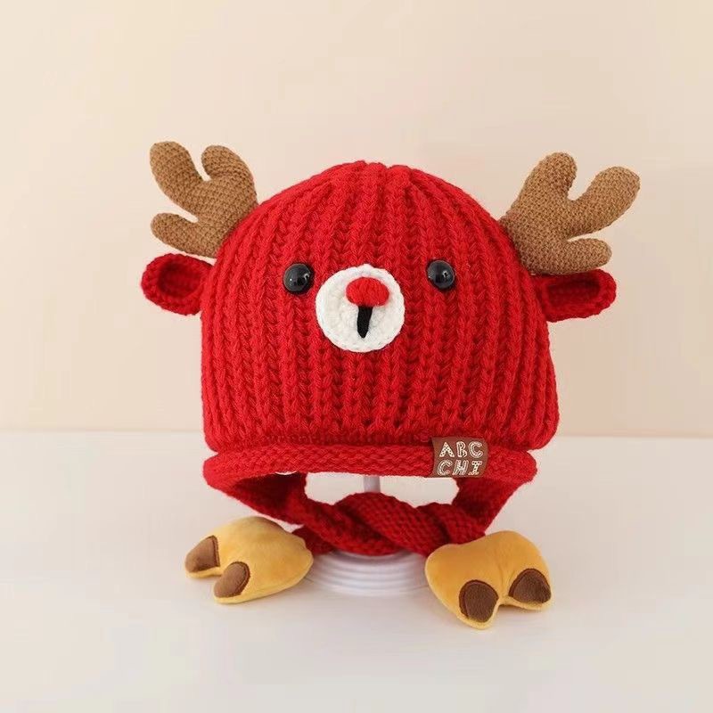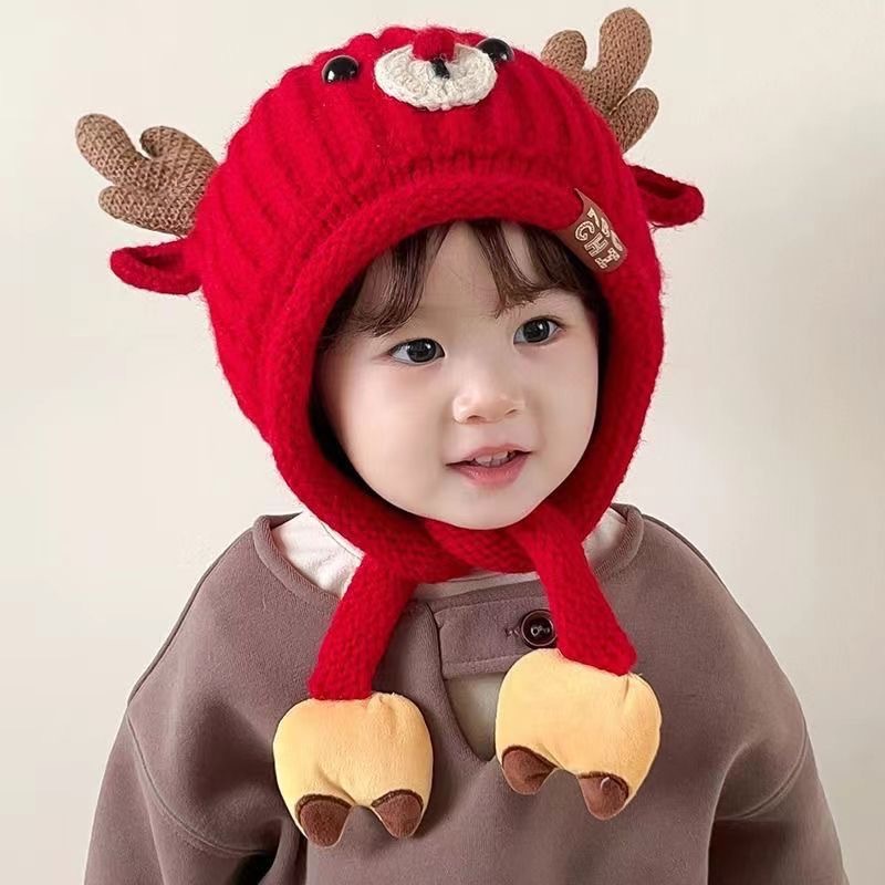• 더블 디어 스트랩 귀 보호 모자-레드