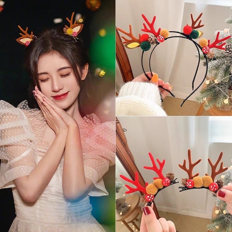 모리 크리스마스 앤틀러스 헤어 밴드 cos 크리스마스 이브 원피스 귀여운 올 매치 클립 크리스마스 장식 헤어핀 헤드웨어
