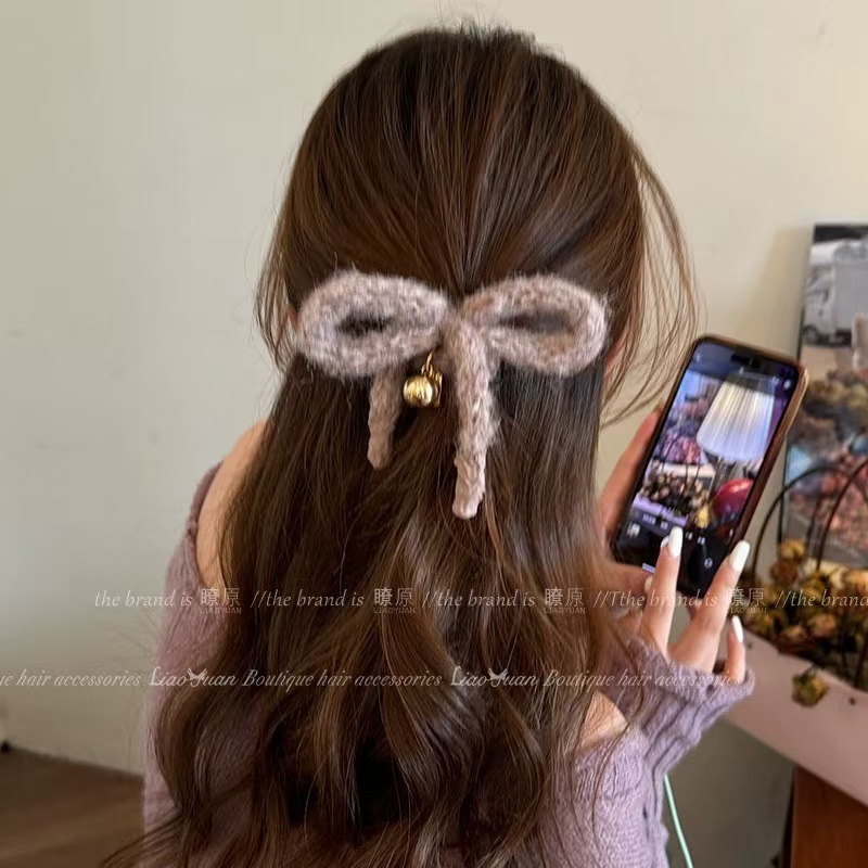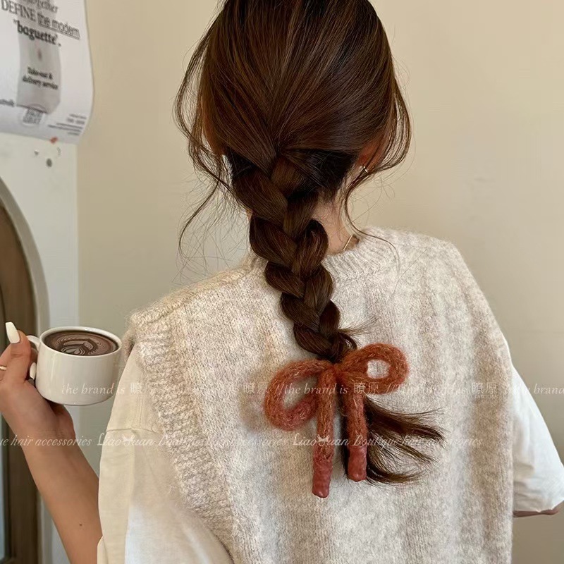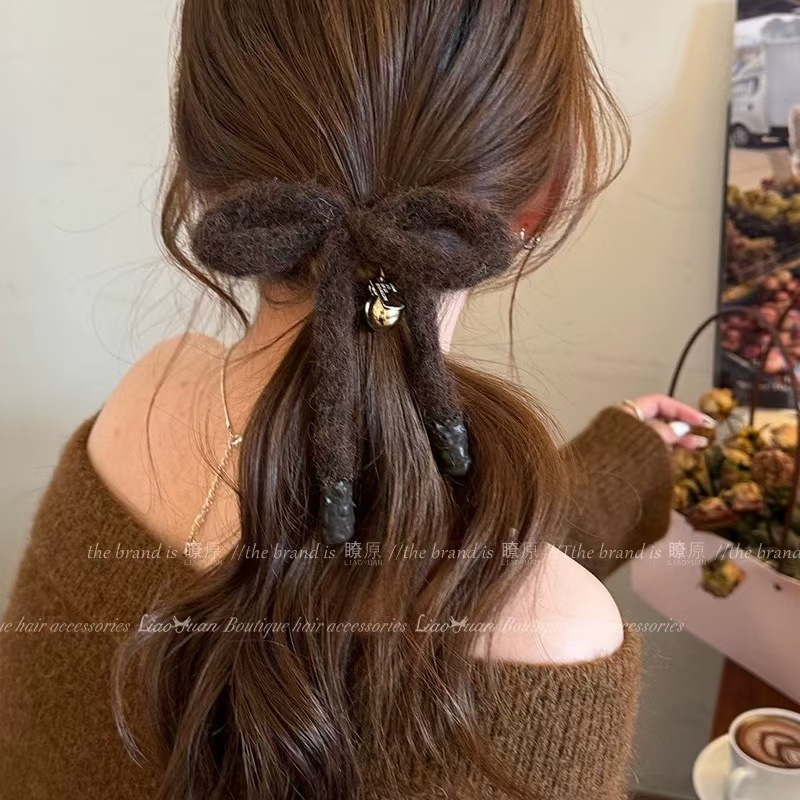 한국 귀여운 활 머리 장식 가을과 겨울 양모 머리 반지 간단한 머리 밧줄 여성의 새로운 하이 엔드 헤어 밴드 도매스토어 가기