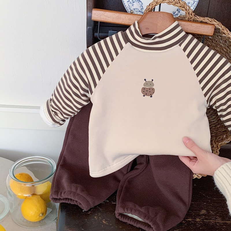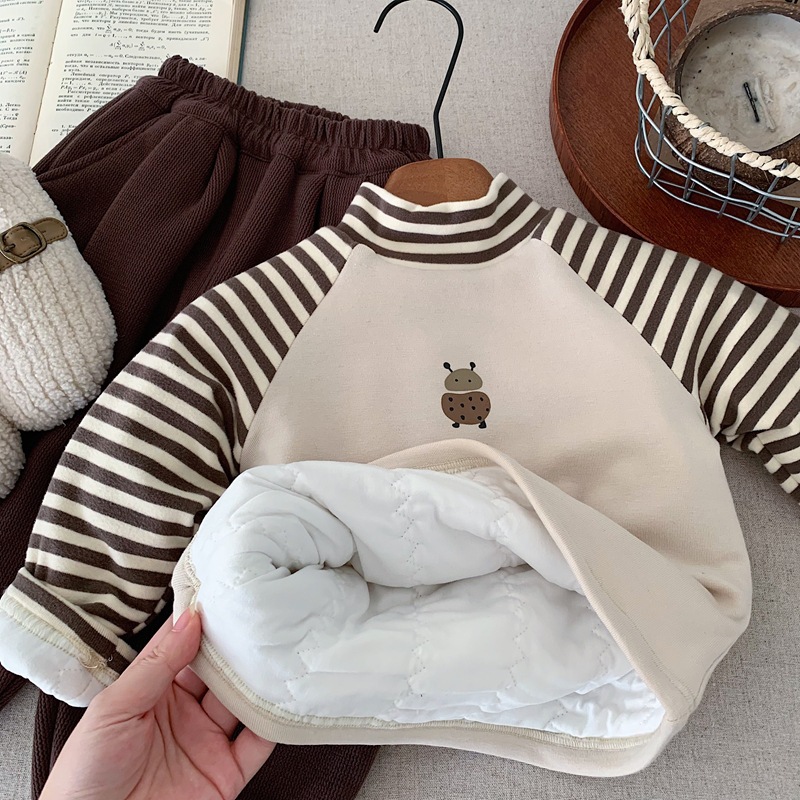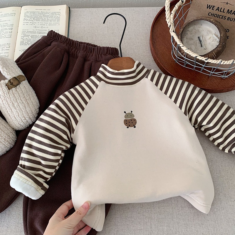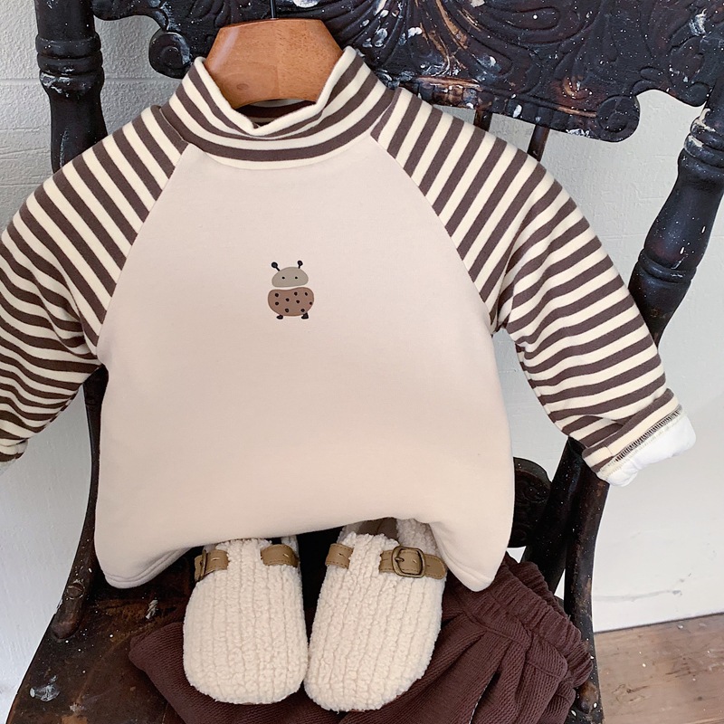 겨울 어린이 높은 칼라 따뜻한 베이스 셔츠 한국 스타일 소년과 소녀 두꺼운 실크면 긴 소매 만화 따뜻한 옷 유행스토어 가기